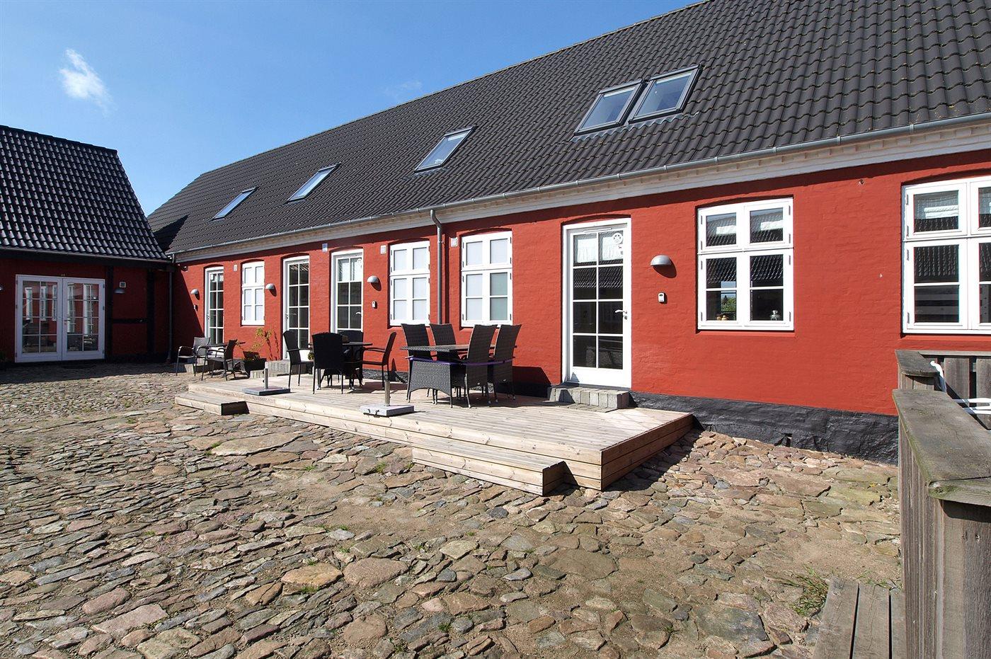 Indgang til lejligheden sker via en dejlig fælles, solrig gårdsplads og hver bolig har sin egen terrasse.