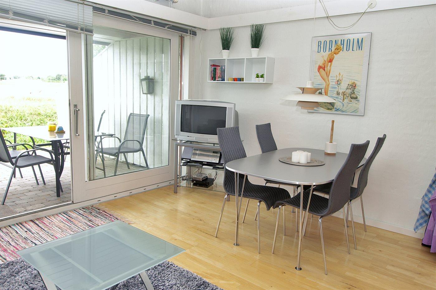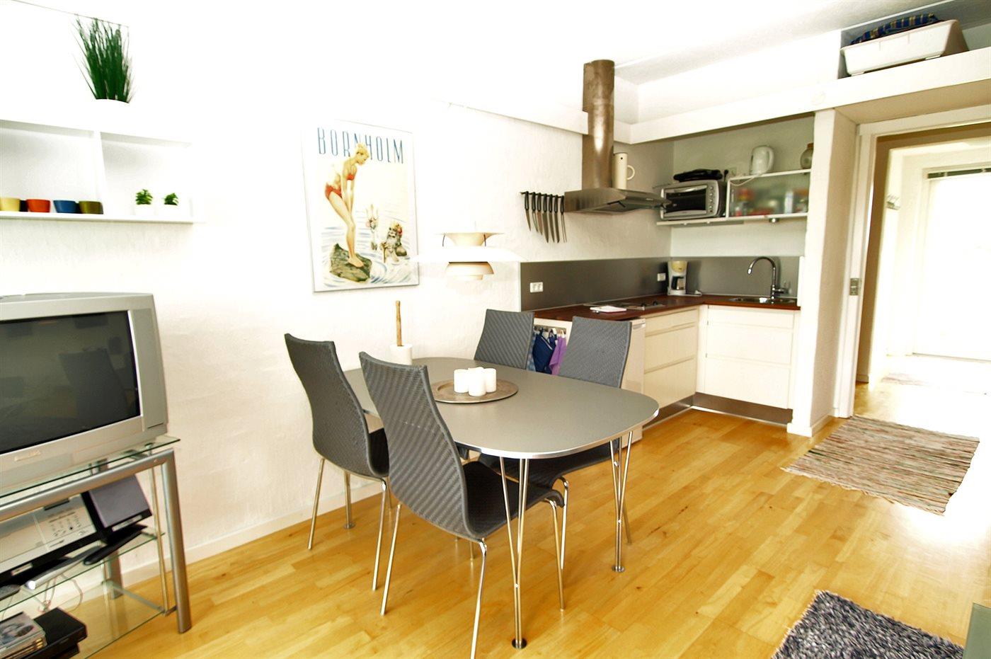 Denne pæne ferielejlighed finder I i en firlænget gård i udkanten af Aakirkeby - nær skov og Oplevelsescenteret NaturBornholm, som illustrerer Bornholms oprindelse for millioner af år siden. Lejlighedens åbne terrasse vender ud mod en fælles udendørs swimmingpool (16 x 10 x 0,7-1,8 m), som i perioden fra den 15/6 til 15/9 opvarmes vha. varmepumpe. Endvidere findes der et fællesareal med trampolin, sandkasse, gynger og fodboldmål. Bemærk, at I finder de 2 sovepladser på sovesofaen i opholdsstuen.