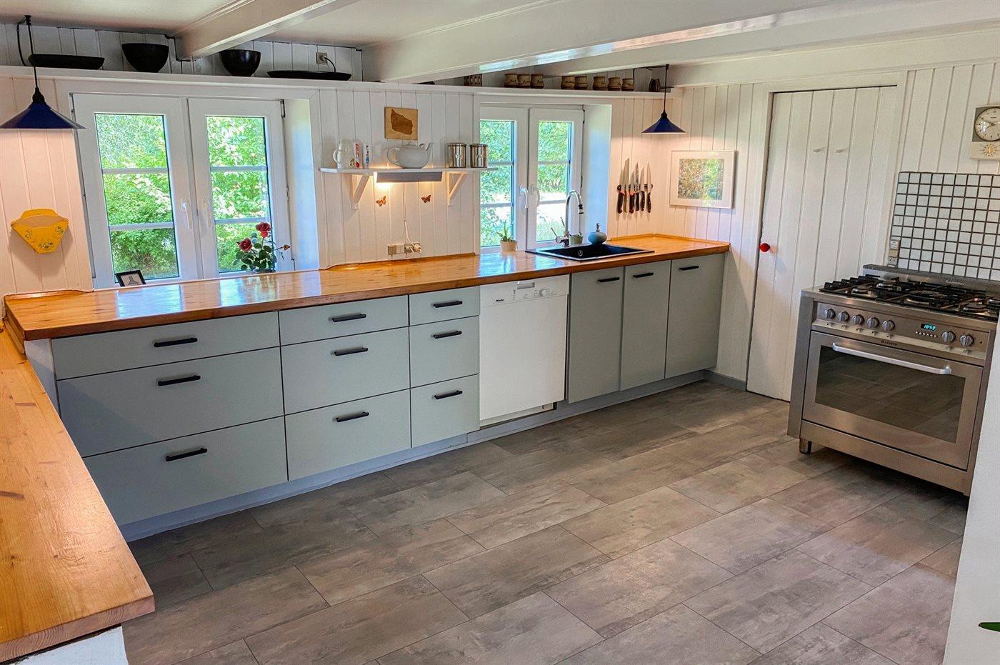 Den lille gårdsplads afgrænses af et hyggeligt anneks med mulighed for ophold i fred og ro - endda med soveværelse på 1. sal. Huset er meget hyggeligt og tidsvarende indrettet med en god smag, men også respekt for husets alder.