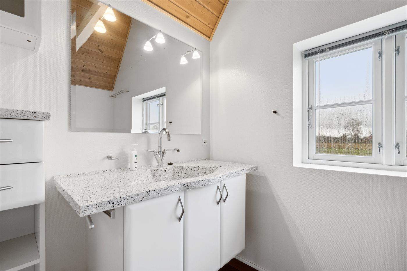 Der er 2 badeværelser med bruseniche og 2 toiletter. Der er gulvvarme på 1 badeværelse.