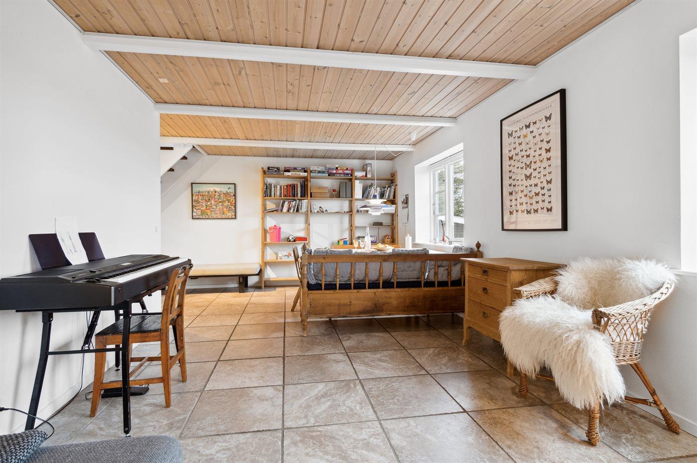 I husets mellemgang finder man en dobbelt sovesofa – velegnet til en lille lur midt på dagen eller en god sovemulighed til natten. Vær opmærksom på, at husets soveværelser er placeret, således man snildt kan fordele sig hensigtsmæssigt, hvis man er flere voksne par.