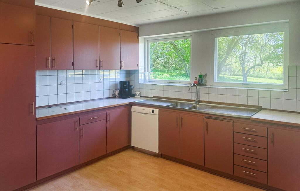 Der er fred, ro og feriestemning i vente på Bornholms sydkyst, hvor I finder dette feriehus. Her er der god plads til en større rejsegruppe, hvor I både kan samles, dele jer op i mindre grupper og trække jer tilbage til en rolig stund. Dæk op til den store fællesmiddag i stuen, hvor I kan nyde udsigten til de åbne marker udenfor. Senere kan I finde brætspil frem eller læne jer godt tilbage i de bløde møbler.