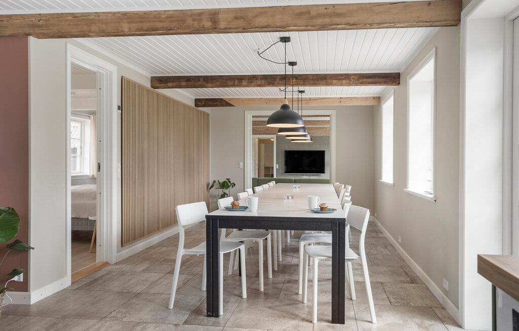 Dette meget rummelige hus byder jer velkommen med sit lyse og attraktive interiør og tilbyder alt, hvad I behøver for en afslappende ferie med hele familien, hvor både unge og gamle får valuta for pengene. Tilbring hyggelige timer i poolen og slap af i saunaen. Glæd jer til hyggelige aftener, når I vender tilbage fra dagens aktviteter, sæt jer godt til rette ved spisebordet, lad middagen problemfrit gå over i en spilleaften, tænd brændeovnen og snak længe i godt selskab.