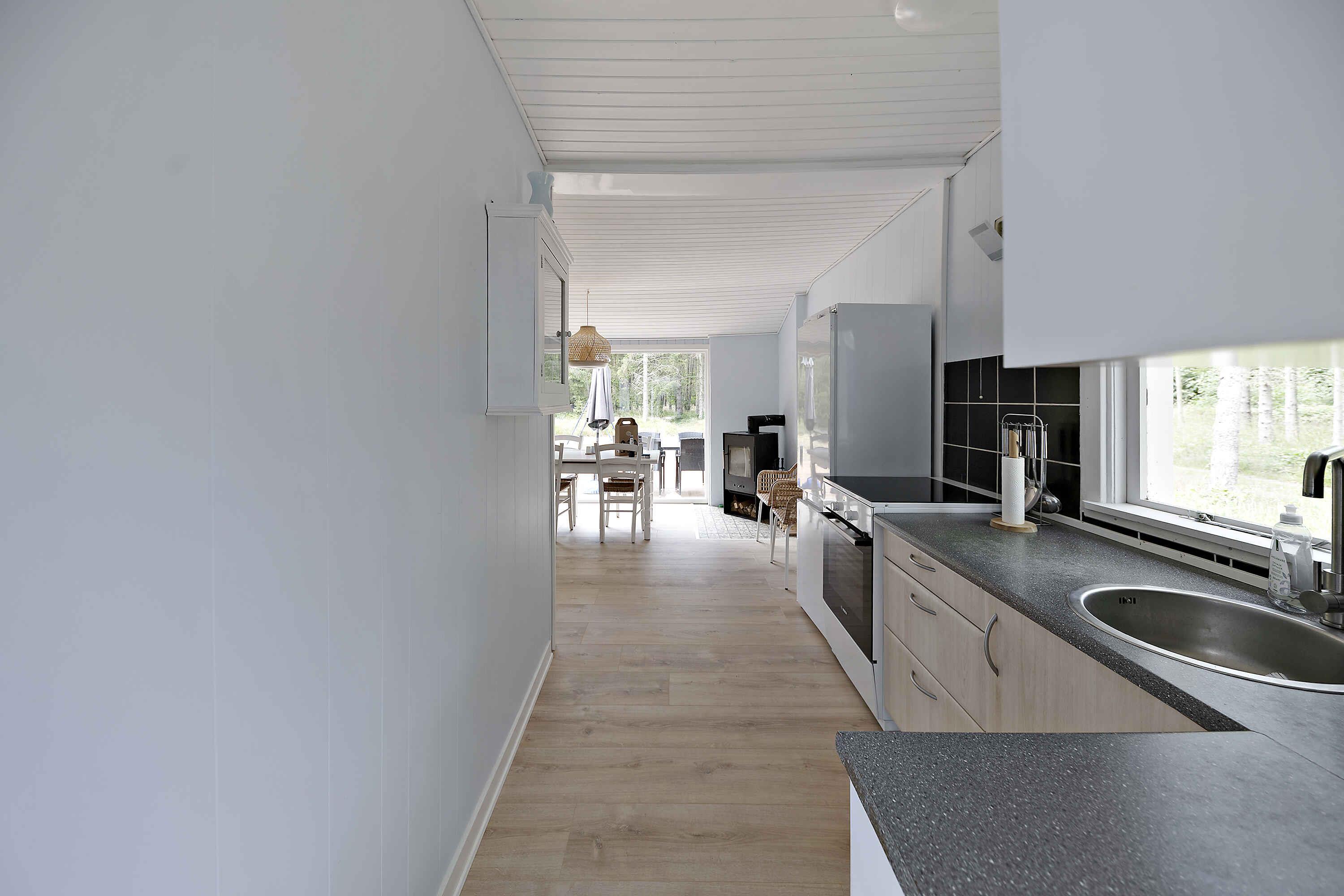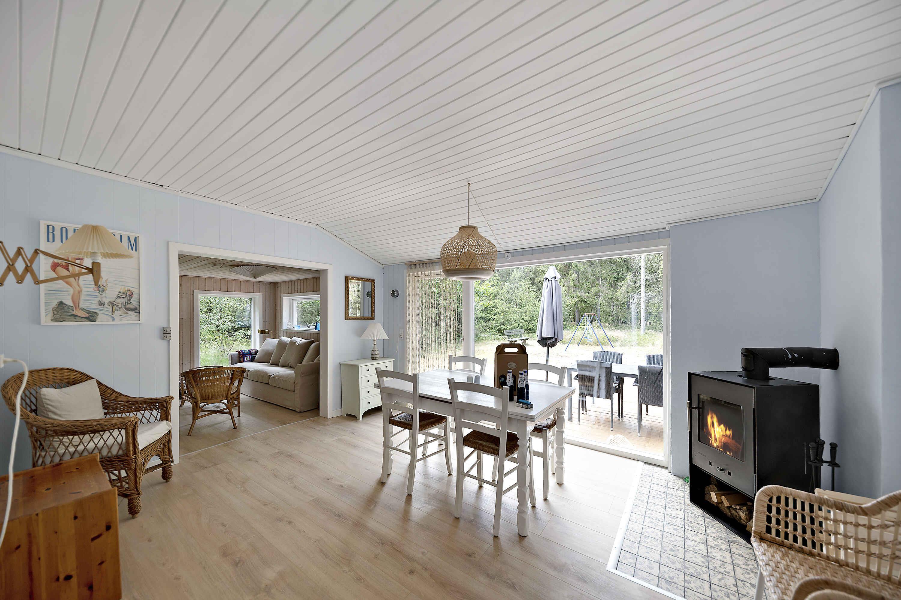 Velkommen til dette hyggelige sommerhus på Bornholm, der har gennemgået en omfattende renovering i foråret 2022 og vinteren 2023, så det fremstår nyt. Der er et hyggeligt soveværelse med dobbeltseng til de vokse og i børneværelse er der plads til to i en køjeseng. Derudover har sommerhuset to sammenhængende stuer, hvor den ene er en afslappet opholdsstue med sofa og et 55-tommers SmartTV. Den anden stue er en spisestue med direkte udgang til den nybyggede træterrasse. På terrassen er der havemøbler, solsenge, en udendørs pejs, gasgrill, kulgrill og et udekøkken, der tilsammen indbyder til lange hyggelige aftener. Badeværelset gennemgår er større renovation i vinteren 2024, så der kommer varme i gulvet samt en vaskesøjle. Som badeværelset er i dag, er det fuldt funktionelt med toilet, vask og bruser. Sommerhuset ligger på en smuk skovgrund på hele 2500 m2. Samtidigt er man blot 300 meter fra en fantastisk badestrand, som man ofte har mere eller mindre for sig selv. Bakkarøgeriet og Nexø Golfbane ligger kun 1,5 kilometer væk fra sommerhuset, handlemuligheder finder man i Pedersker Brugs kun 3 kilometer væk. Rengøring er inkl i prisen