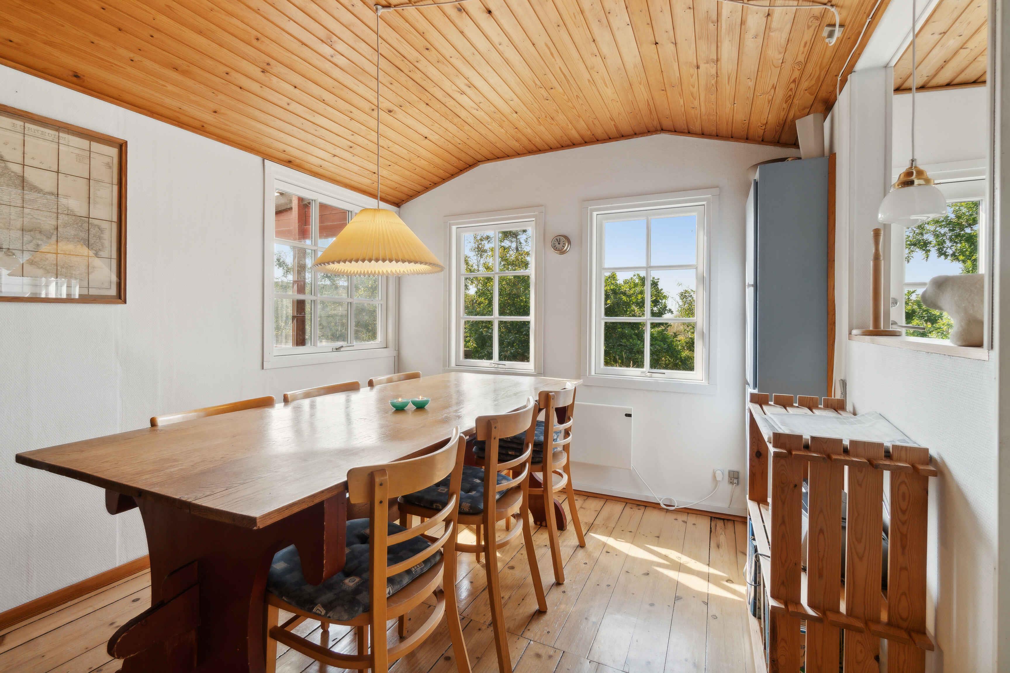 Dette idylliske sommerhus, som første gang åbnede sine døre i 1934, har bevaret sin charmerende æstetik gennem en omhyggelig modernisering i 2013. Huset er smukt placeret kun 50 meter fra en af områdets bedste badestrande, hvilket tilbyder en uovertruffen adgang til sol, sand og hav. Sommerhusets beliggenhed i Boderne, syd for Aakirkeby, et eftertragtet område på grund af sin naturlige skønhed og ro, forstærker blot dets appel som en perfekt feriedestination. Med sin tætte nærhed til havnen, kun 400 meter væk, er det let for gæsterne at gå ture langs kajen og nyde den lokale maritime kultur. Området tilbyder også fremragende muligheder for vandaktiviteter som sejlads og fiskeri, hvilket gør det til en ideel lokation for naturelskere og eventyrere. Indenfor byder sommerhuset på en hyggelig og indbydende atmosfære, med moderne bekvemmeligheder. Boligen omfatter et soveværelse med to enkeltsenge samt en yderligere dobbeltseng placeret i en charmerende alkove, der tilbyder en smule ekstra privatliv og er perfekt for par eller en lille familie. Opholdsområderne er indrettet til at skabe en følelse af hjemlig varme med masser af naturligt lys og udsigt til det omkringliggende landskab. Dette sommerhus er ikke blot en bolig, men en portal til afslapning og nydelse i hjertet af en af Danmarks mest maleriske regioner, hvilket gør det til det ideelle sted for alle, der søger en pause fra den travle hverdag.