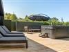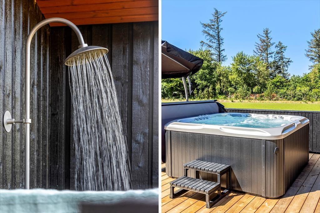 Når solen skinner, eller vinden er mild, rykker ferien helt naturligt udenfor – og her lever huset i den grad op til feriedrømmene. Den store terrasse strækker sig rundt om huset og byder både på åbne og overdækkede områder, så du altid kan finde en plads i solen – eller i skyggen. Om aftenen kan I tænde op i grillen og runde dagen af med et glas vin i udespaen, mens stjernerne langsomt toner frem på nattehimlen. Det varme, boblende vand og den friske luft skaber ren wellnessstemning, og måske er det netop her, du finder din nye yndlingsstund. Haven er stor og grøn – perfekt til boldspil, solbadning eller en afslappende lur på et tæppe. Trampolinen giver børnene timevis af sjov og leg, mens de voksne slapper af med en god bog eller en kop kaffe i liggestolen.