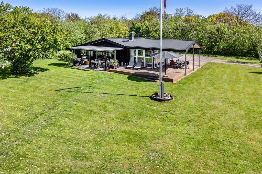 For enden af en lille vej i et grønt sommerhusområde ved Ålbæk Strand står dette fine feriehus klar til at byde jer velkommen.