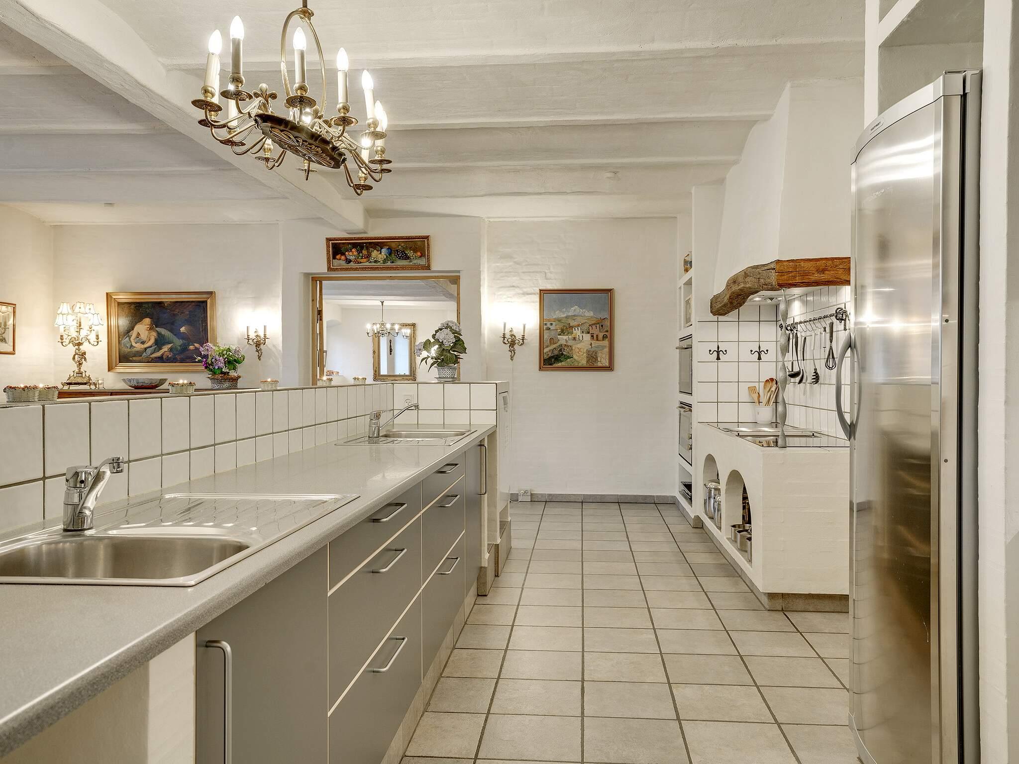 Derudover er der et stort veludstyret køkken med otte keramiske kogeplader, to varmluftsovne, kaffemaskiner, to opvaskemaskiner, mikroovn, samt køle/fryseskab. Der er mindst tre høje stole til de mindste.