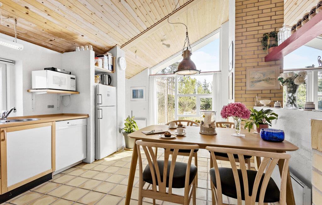 Velkommen til dette sommerhus i den skønne nordjyske natur, som giver jer rammerne for jeres næste velfortjente ferie. Trælofter og gult murværk giver huset en særlig charme, som bliver kombineret med den hyggelige indretning. Det store vinduesparti giver en skøn udsigt til klitterne, samtidig med et dejligt lysindfald. Brændeovnen i stuen ligger op til dyner i sofaen og en god film på tv’et. I det veludstyrede køkken kan I udfolde jeres madlavningstalenter, og servere lækker mad til hele familien