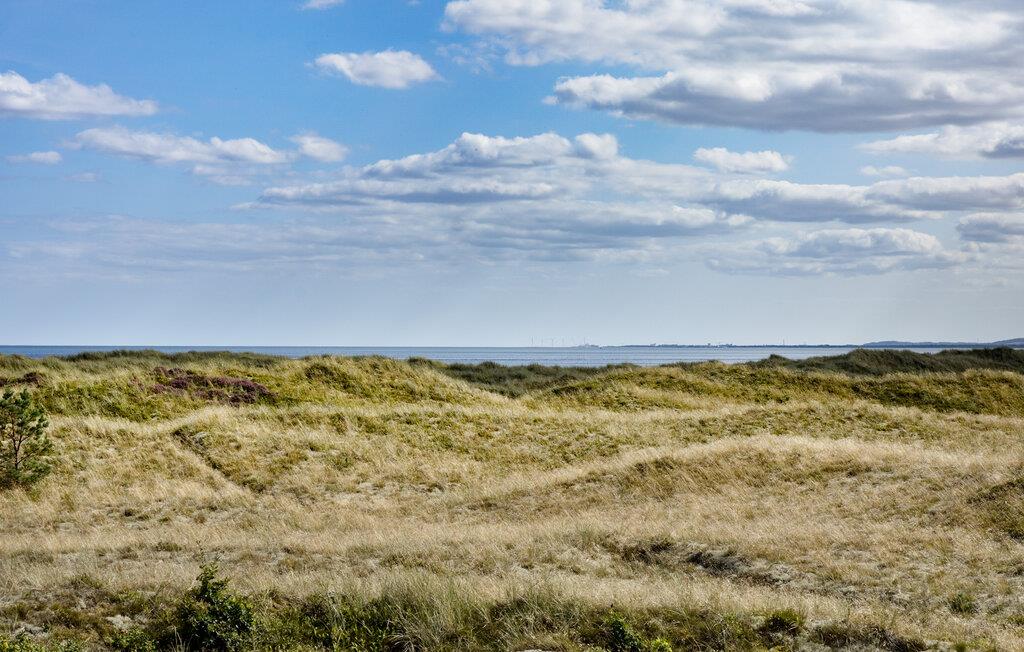 Charmerende feriehus i Ålbæk Strand med udsigt over klitter og nær stranden.
