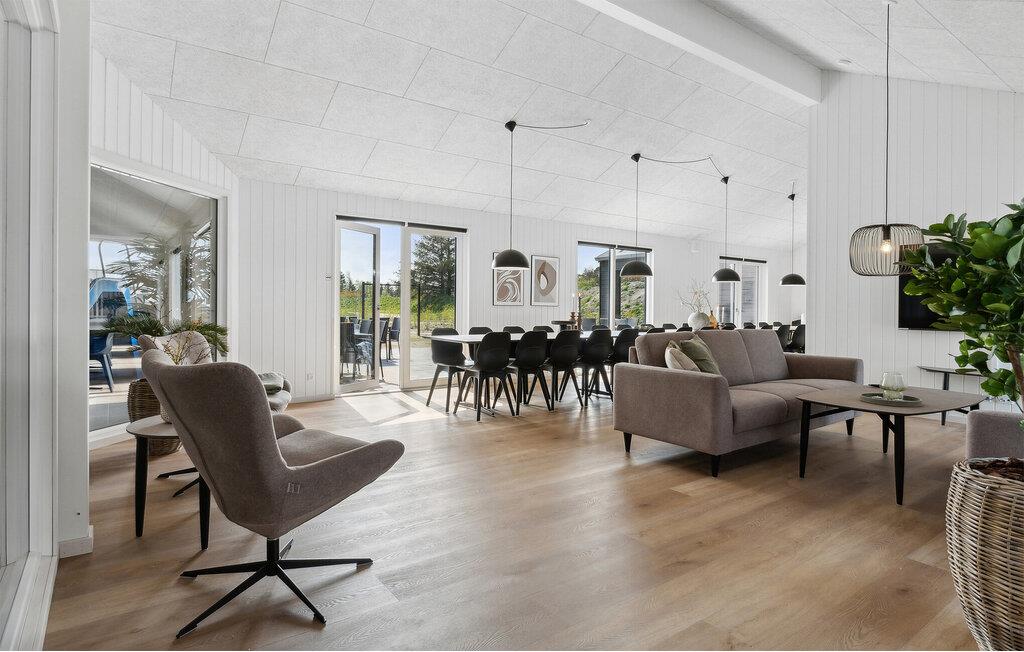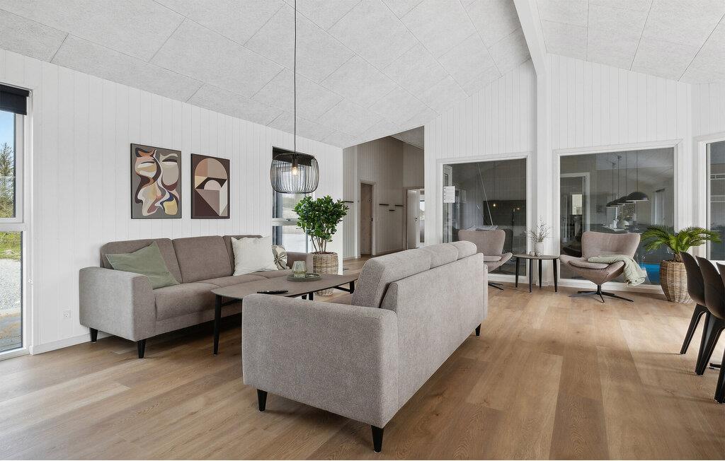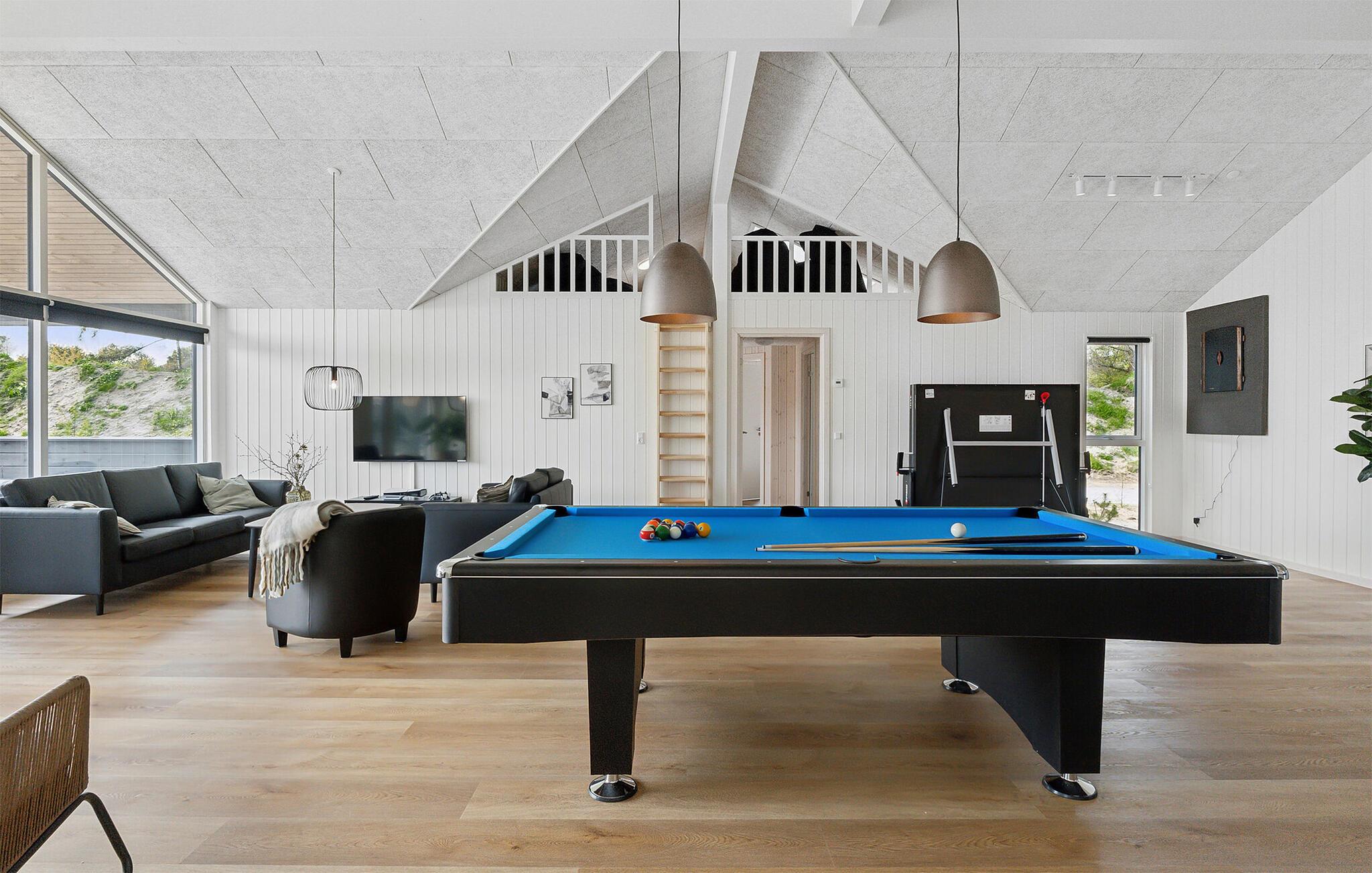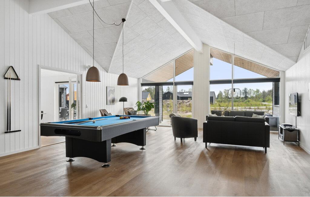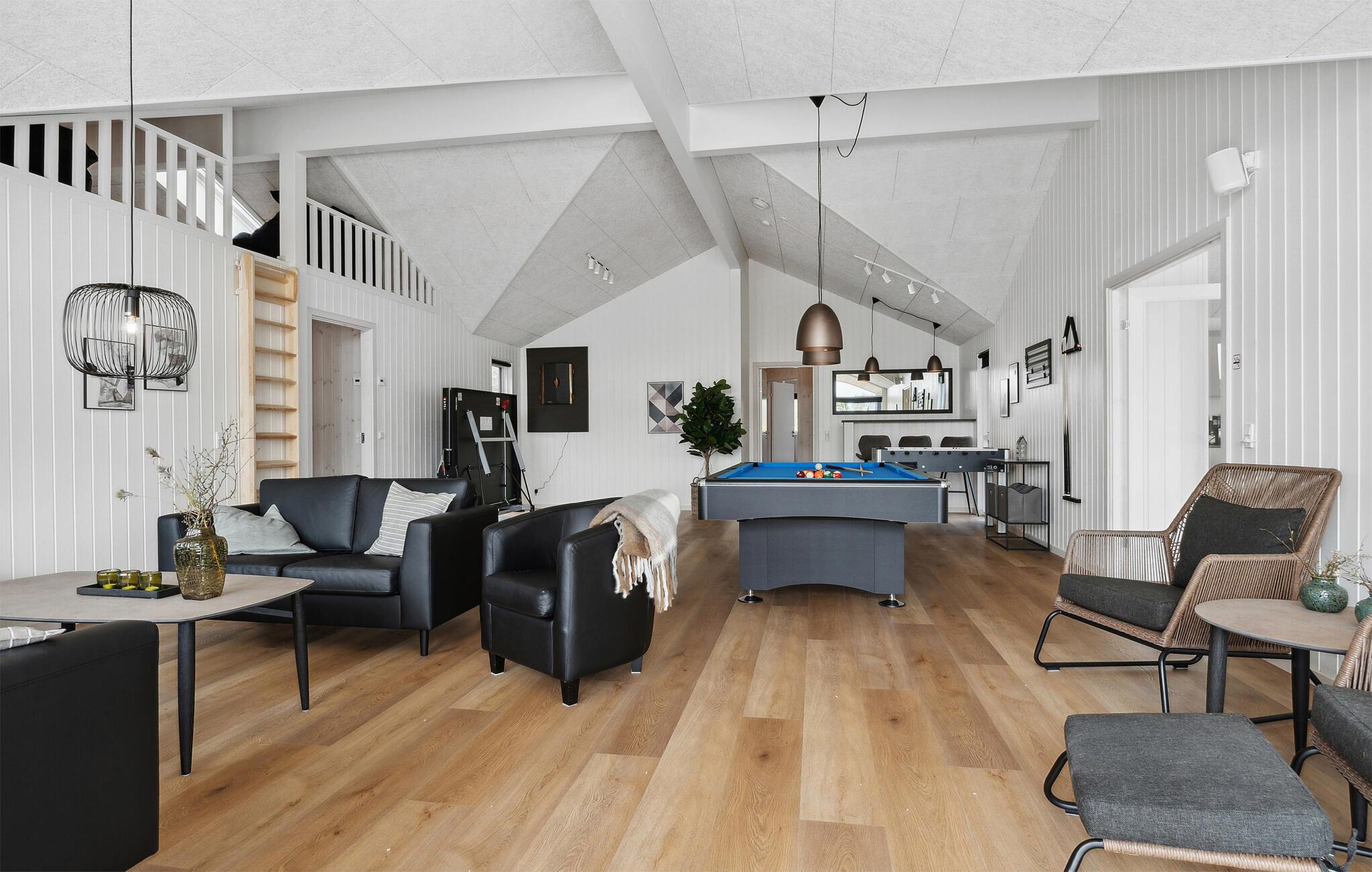 Står I og mangler en bolig til en fejring af den helt store mærkedag eller en ferie med hele familien på tværs af generationerne? Så er I kommet til det helt rette sted. Dette lækre, rummelige og moderne træhus har nemlig alt dét, I behøver, for et ophold, hvor ingen kommer til at mangle det mindste. Huset er virkelig flot indrettet og byder på masser af gode faciliteter, så I kan tilberede det helt store festmåltid, som kan serveres ved spisebordet med plads til alle. I løbet af dagen kan I, uanset vejret, lade børnene plaske rundt i den indendørs pool-afdeling, mens de voksne kan svede godt igennem i saunaen eller duellerer ved pool-bordet. Om aftenen kan I sætte jer godt til rette i sofaerne med brætspil eller måske en sjov familiequiz, inden I går til køjs i de behagelige soveværelser.