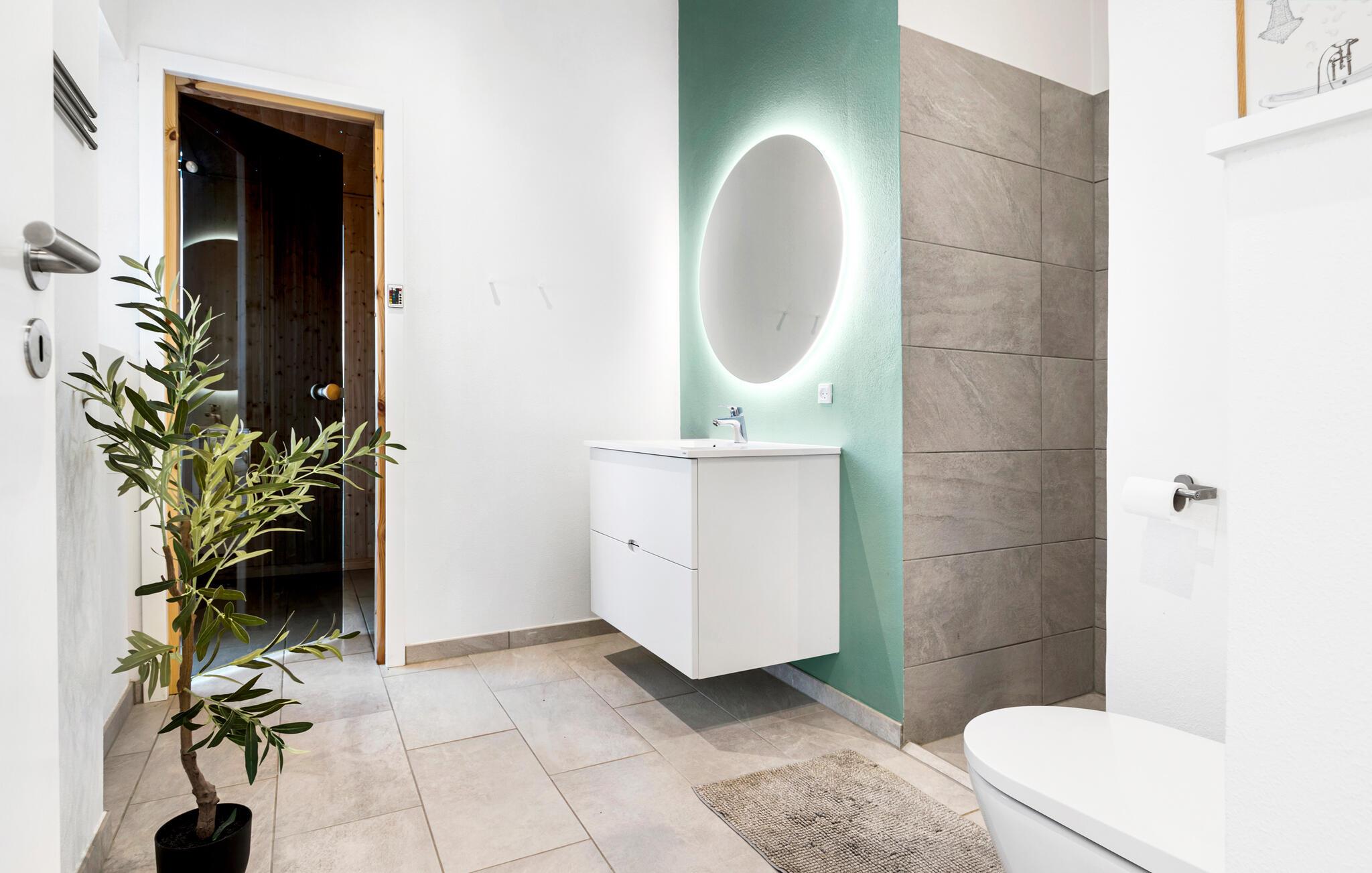 Badeværelse (nr. 1) - WC. Varmt og koldt vand. Bruser
