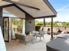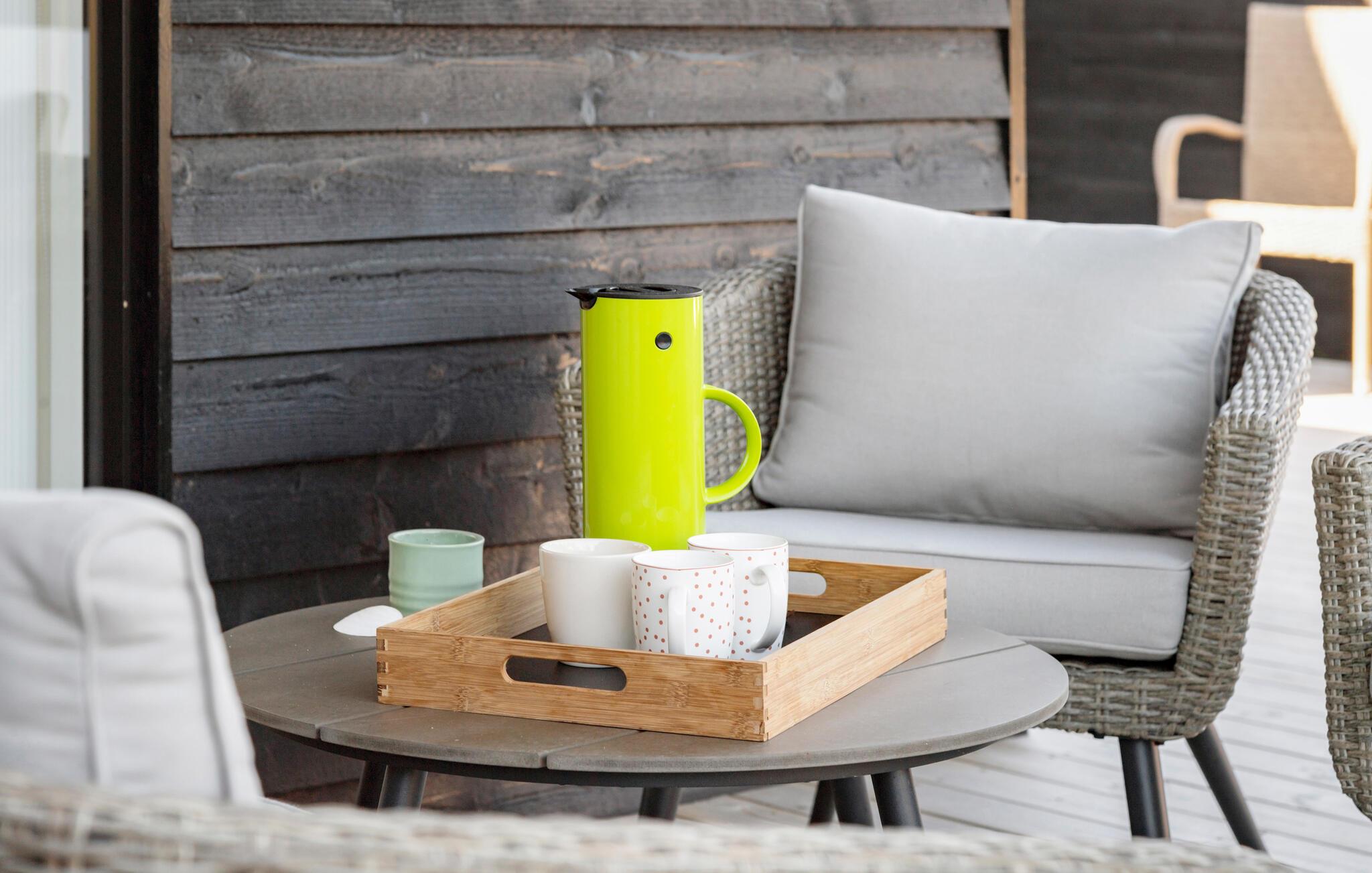 Huset ligger på en stor grund, der byder på god plads til både boldspil og andre sjove aktiviteter. Nyd den store terrasse, som er delvist overdækket, så I kan gå gavn af de lange sommeraftener uden duggen bliver generende. I kan tage en tur i spabadet, som står på terrassen, og enten nyde solen eller den smukke stjernehimmel. Bagefter kan I hoppe i saunaen og blive varmet godt igennem.