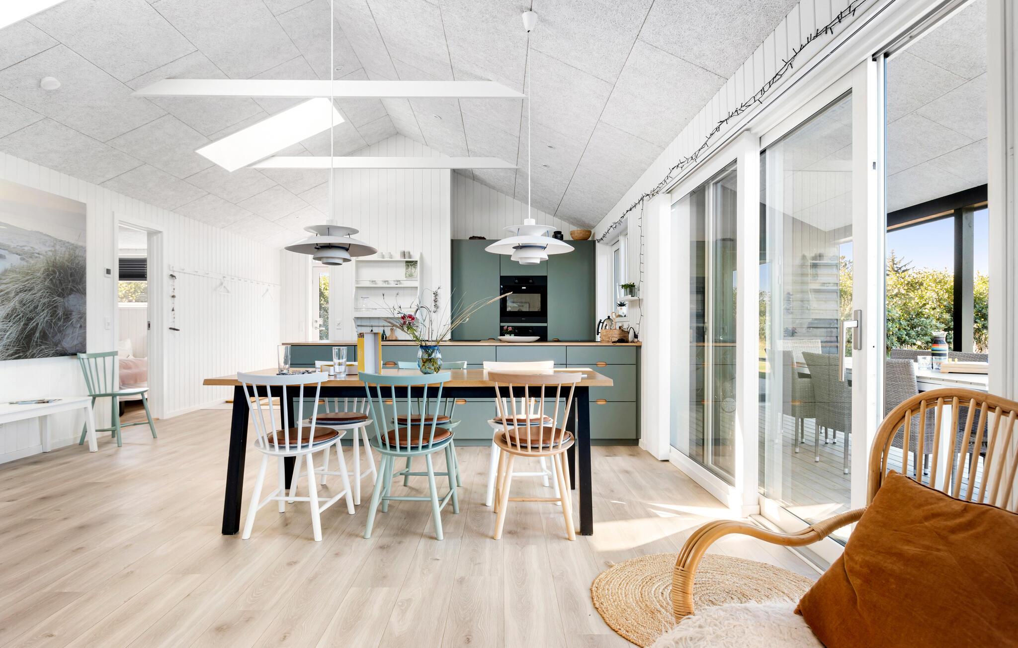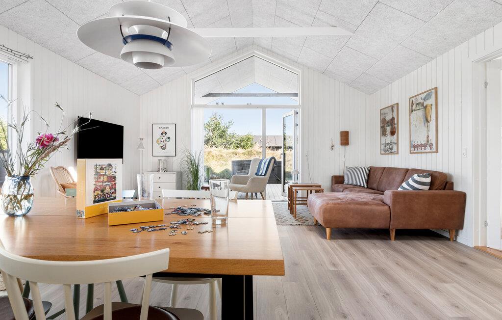 Dette hyggelige sommerhus ligger roligt for enden af en vej, tæt på stranden som er særlig børnevenlig. Derfor er dette hus oplagt til jeres næste ferie med hele familien, hvor I kan slappe af og skabe gode minder sammen i komfortable rammer. Start dagen med en lækker morgenmad enten indendørs eller ude på den lækre træterrasse. Læg en plan for, hvad I vil opleve de næste dage på jeres ferie. Skal batterierne lades op, kan I slænge jer i den bløde sofa og sætte en god film på, og hente snackskålene.