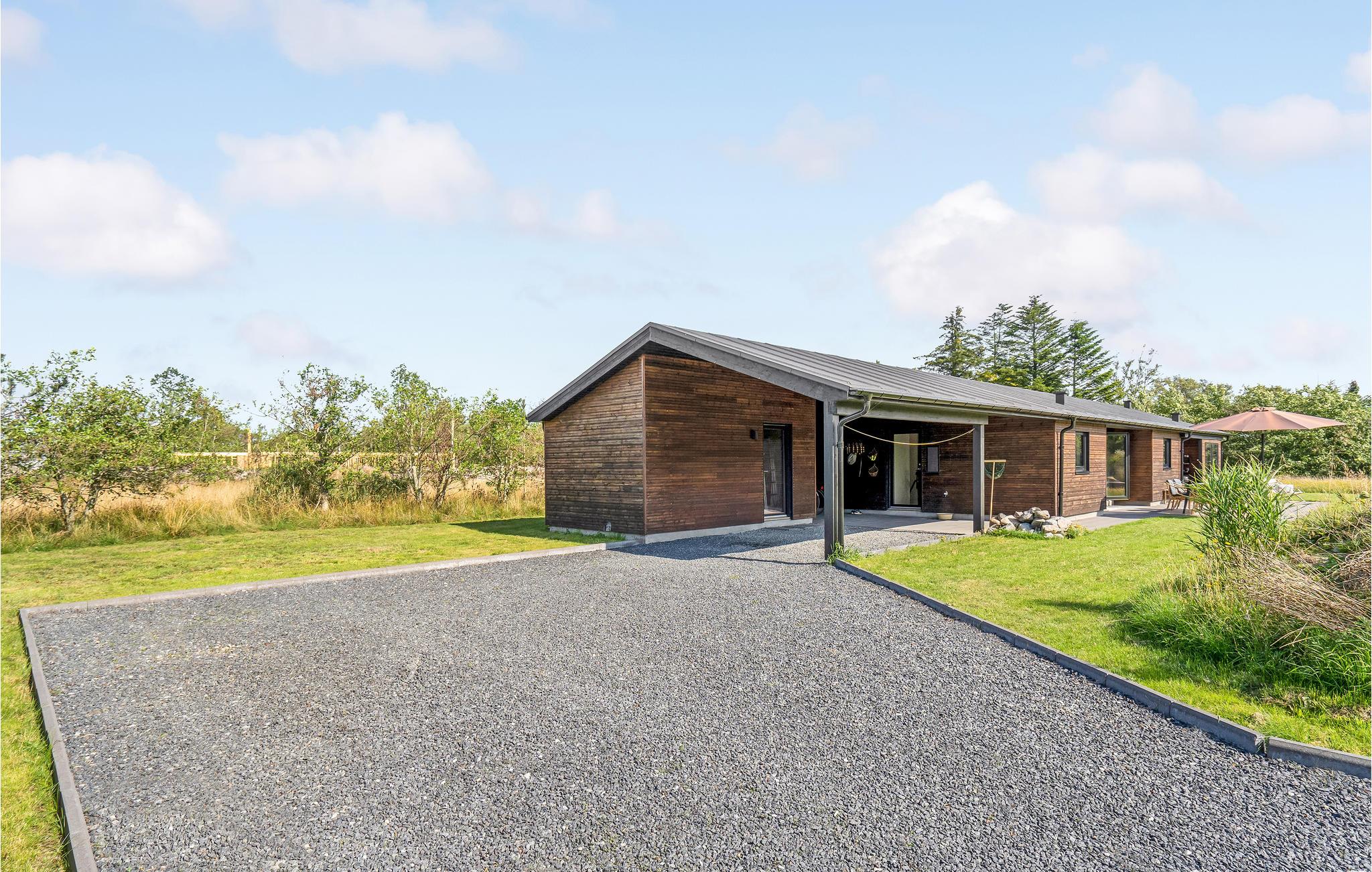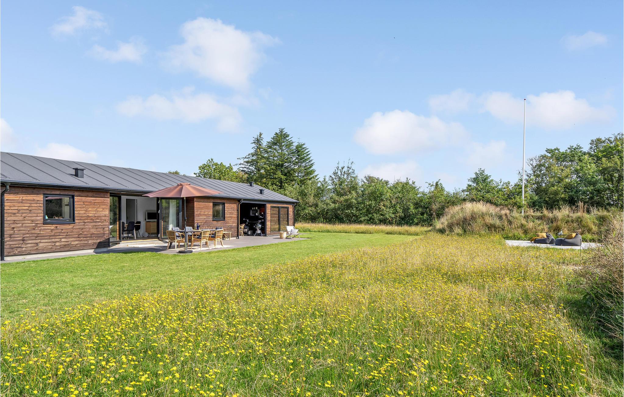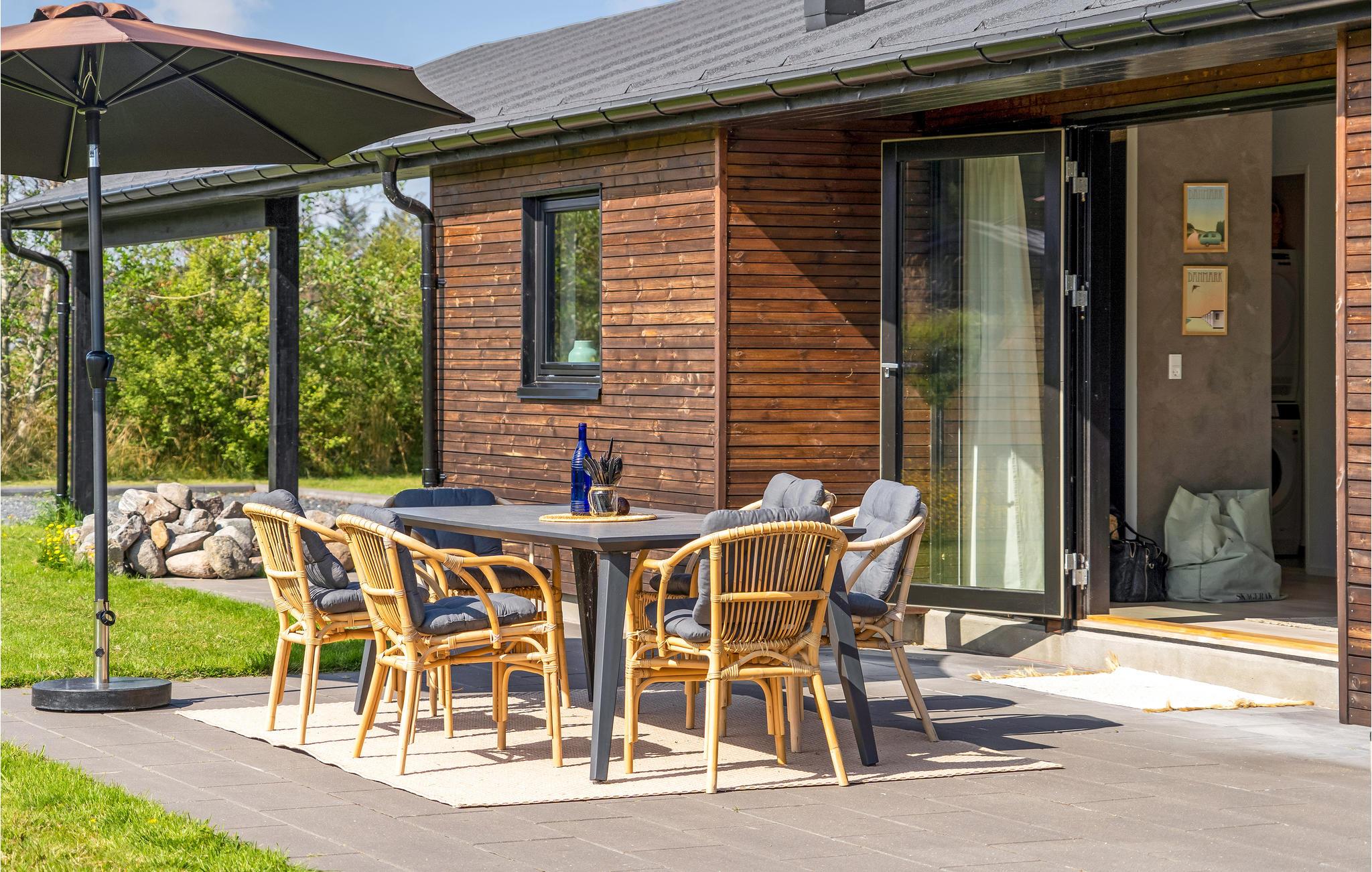 Moderne sommerhus nær havet i Ålbæk med terrasse og skandinavisk stil.