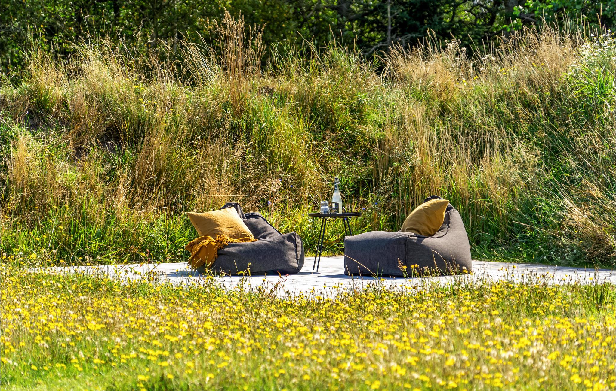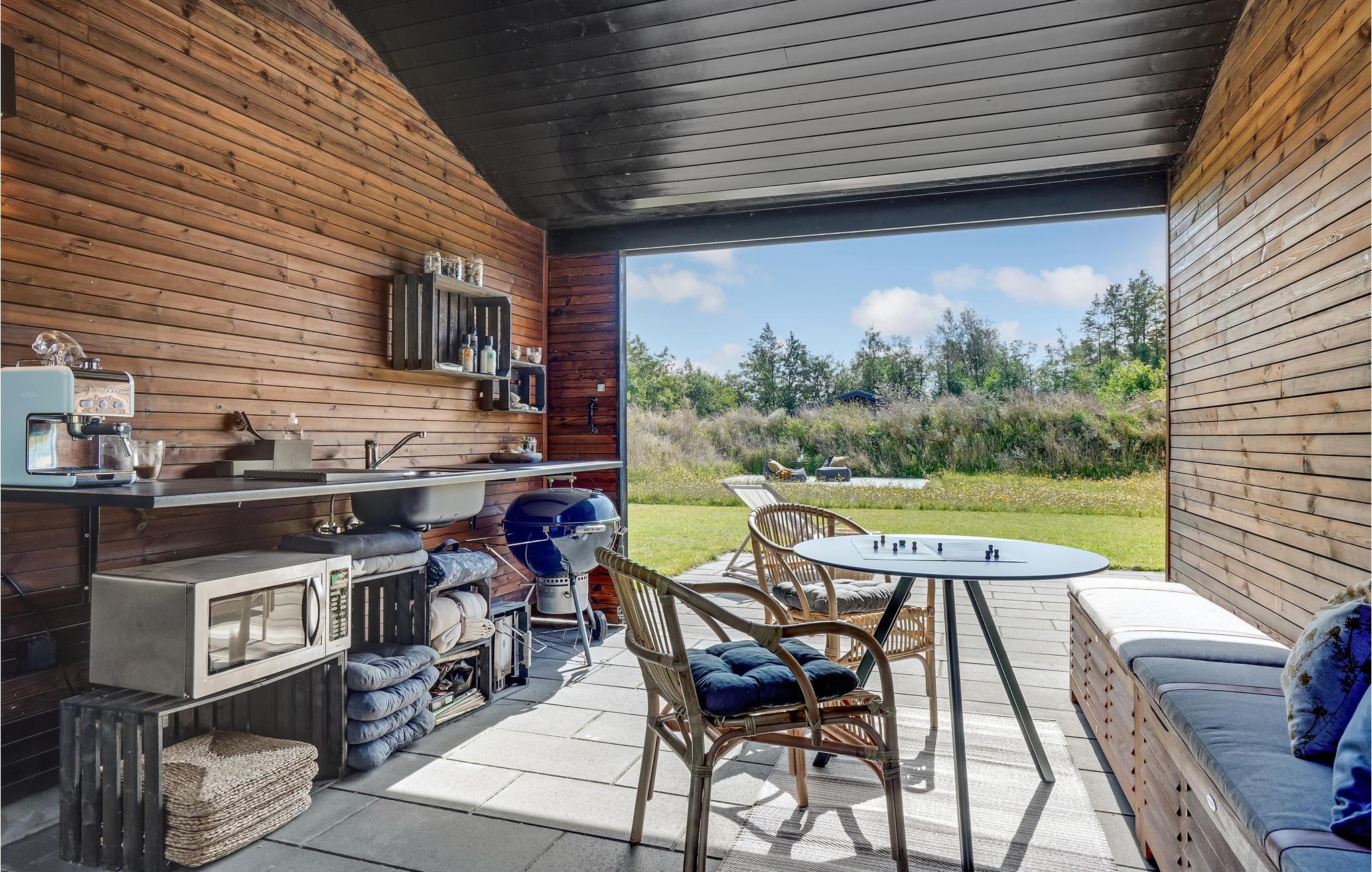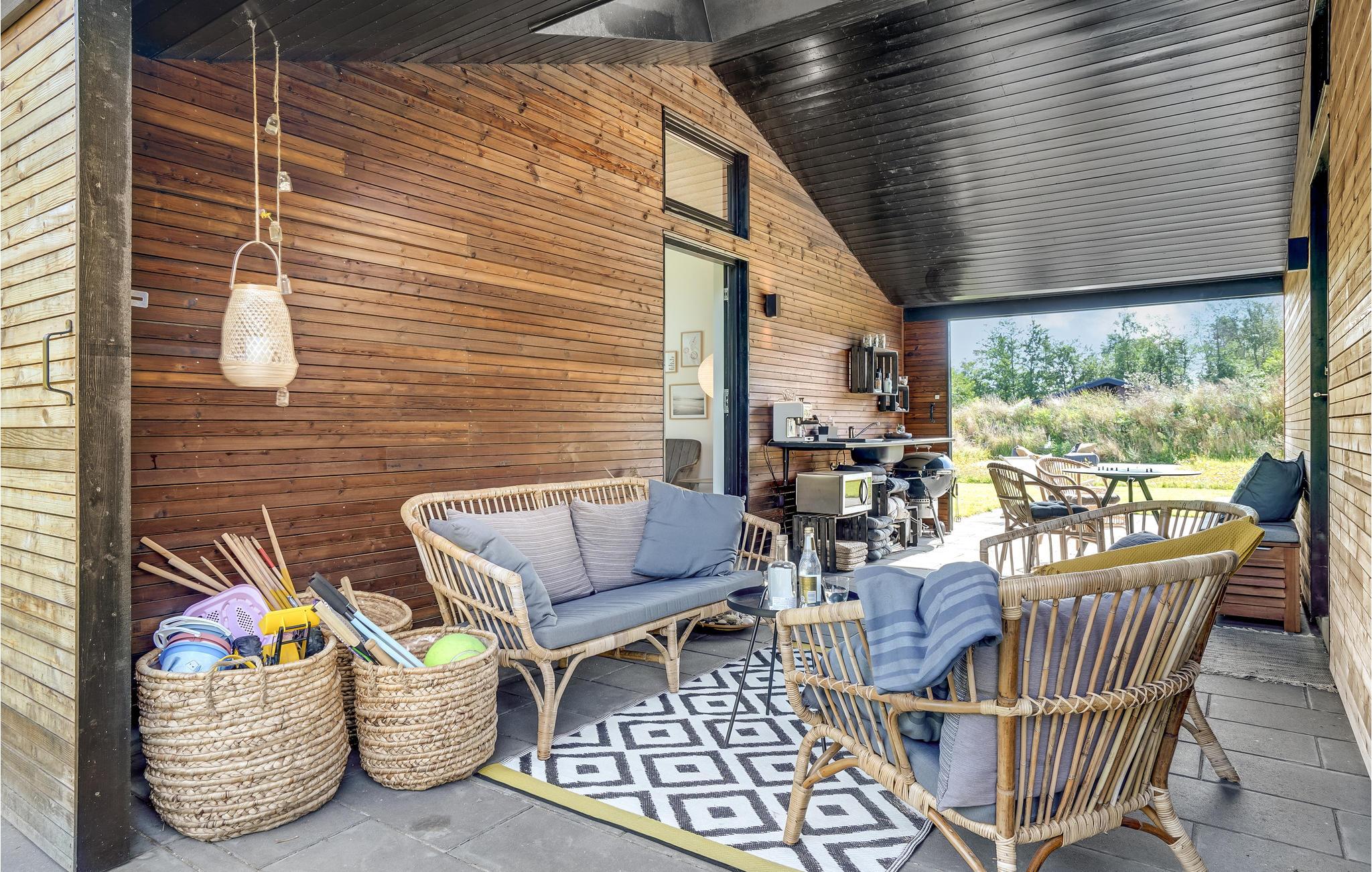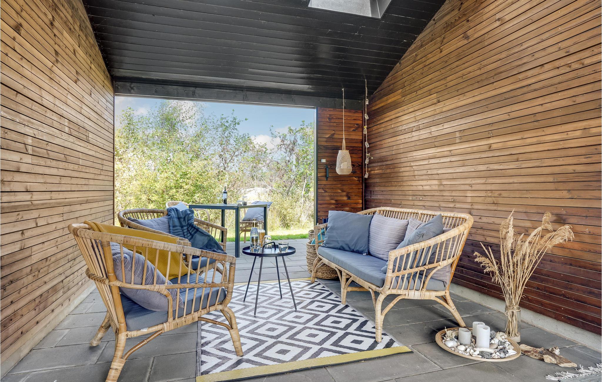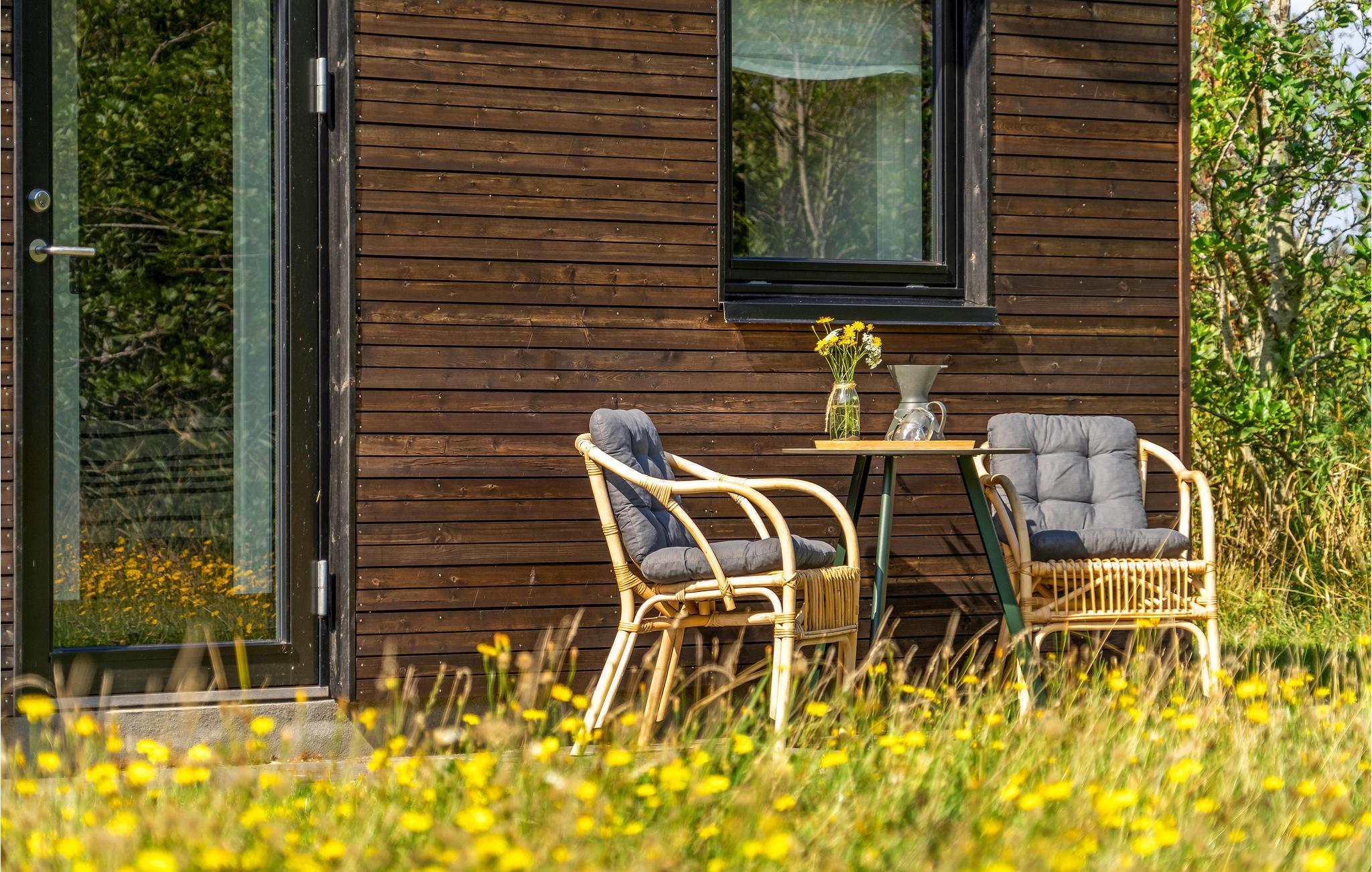 Find sammen omkring spisebordet og nyd udsigten til haven, mens I hygger jer med dagens måltider eller brætspil. Den åbne terrasse er et oplagt sted at sætte sig med en god bog, solbade eller dække op til en grillmiddag. Den overdækkede terrasse giver mulighed for at sidde udenfor i al slags vejr.