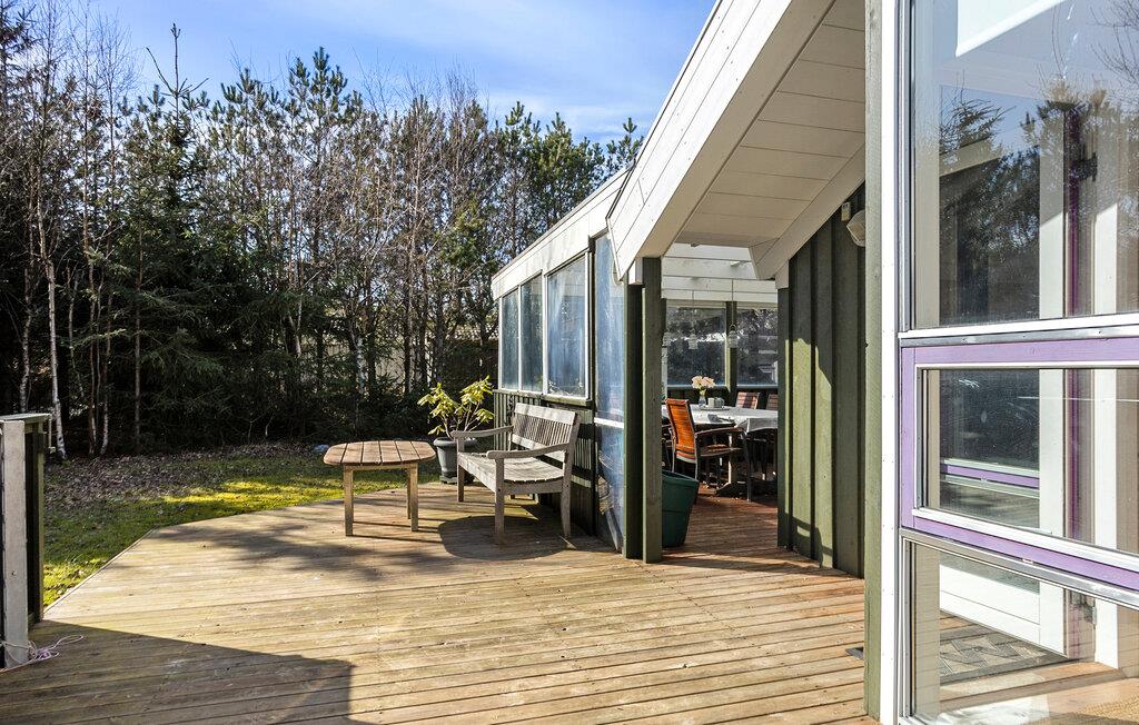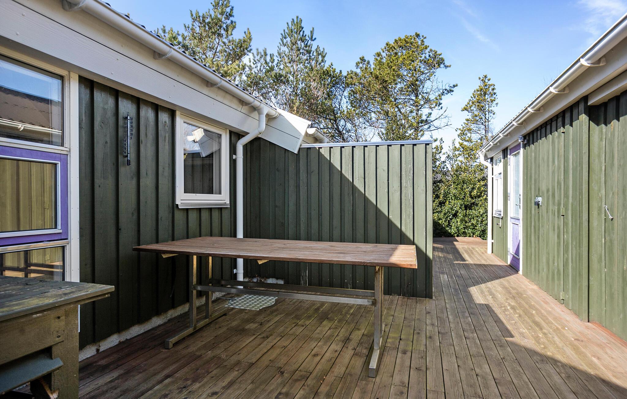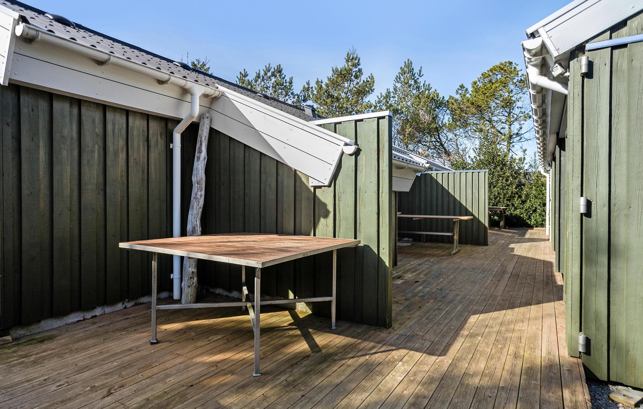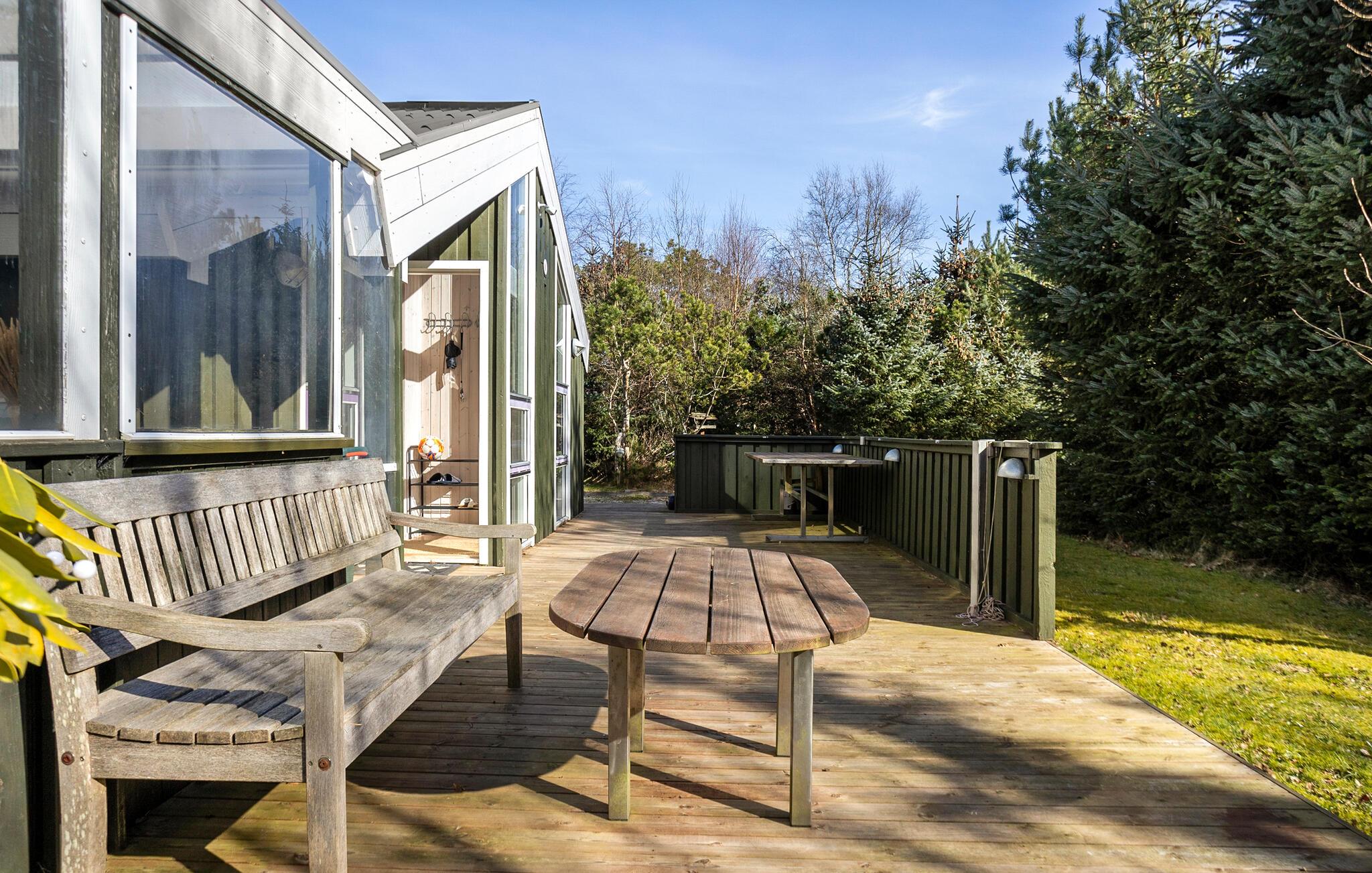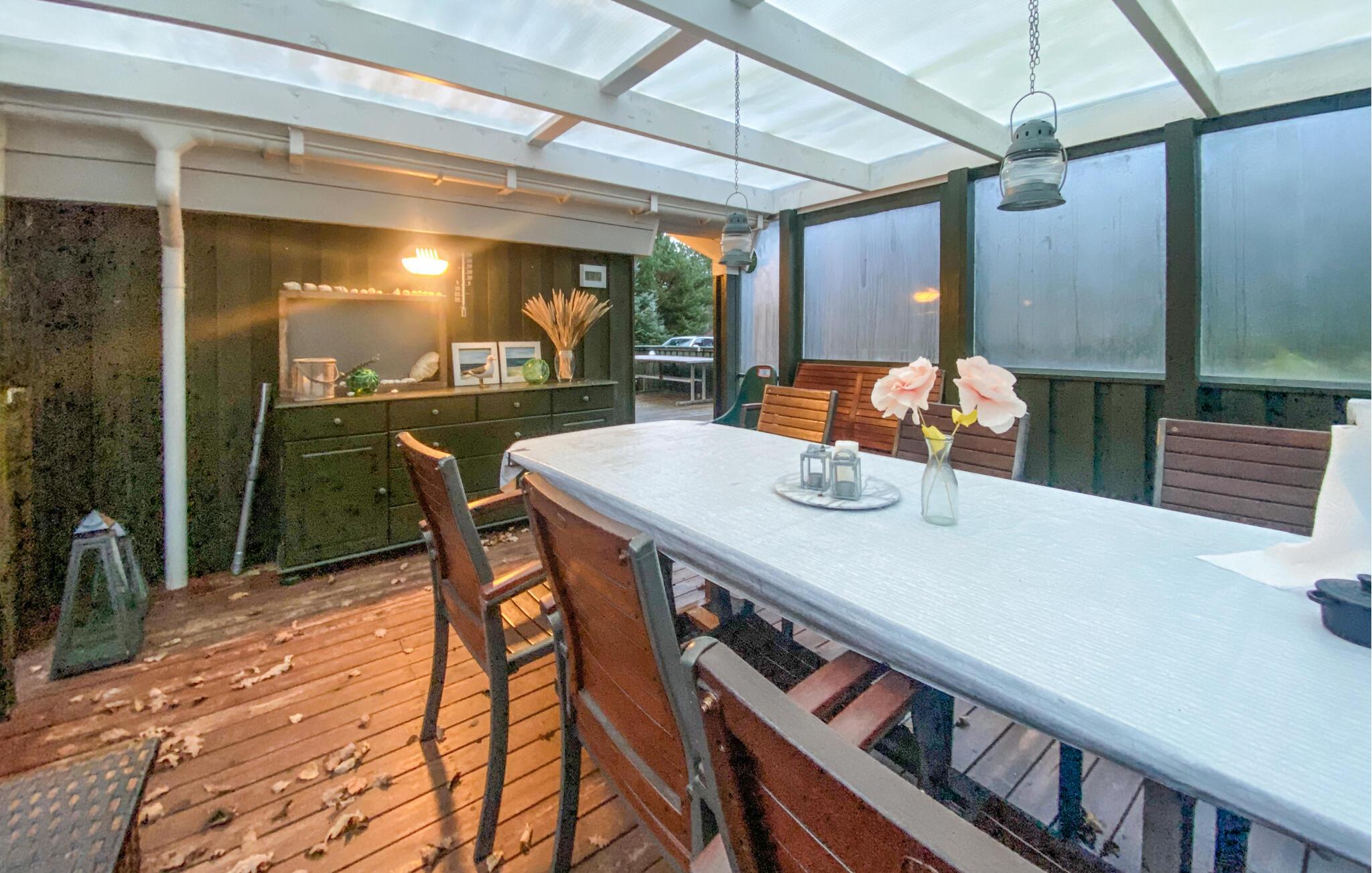 Udearealet er omgivet af træer, så haven er dejligt privat. Brug den store, overdækkede terrasse til hyggelige aftener eller nyd freden og roen. Snup et sjovt spil som petanque, kroket eller fodbold med hele familien.
