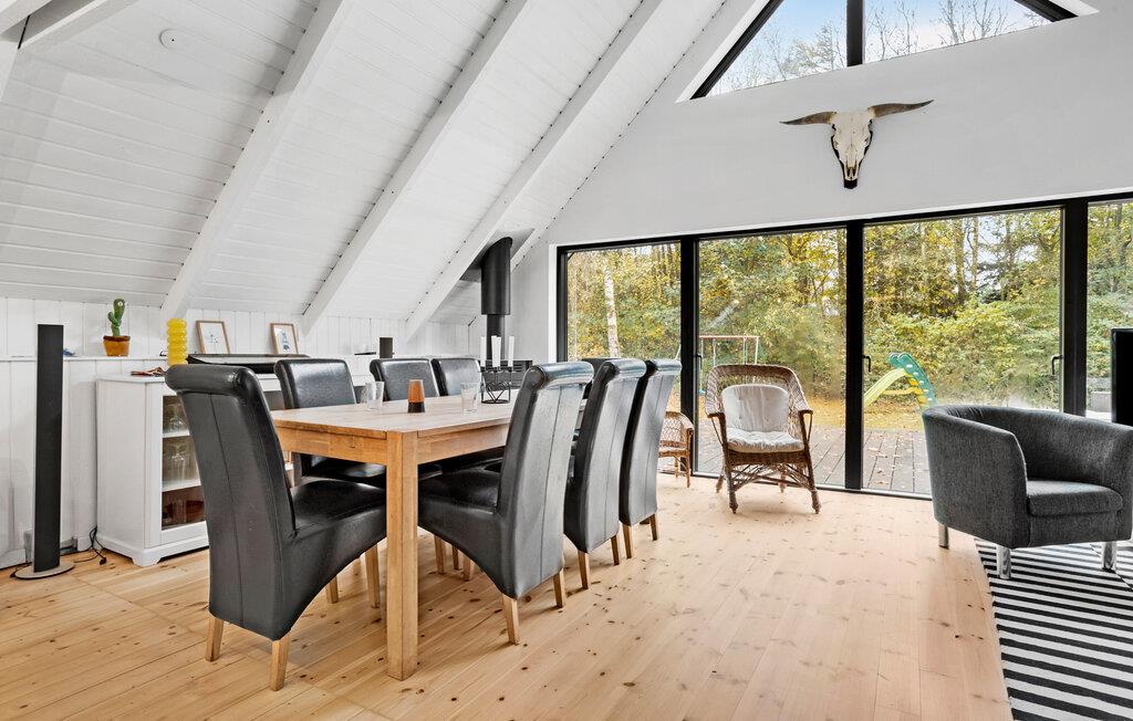 Jeres feriehus i Ålbækparken tilbyder jer den ideelle blanding af ro og afveksling. Start dagen med en hyggelig morgenmad ved det store, elegante spisebord. Når vejret tillader det, kan I nyde morgenmaden på terrassen, som er perfekt til afslappende timer i den friske luft. Sofahjørnet i stuen indbyder til afslapning, mens brændeovnen skaber en hyggelig atmosfære. Nyd fælles aftener med spil eller tag en pause med en god bog.