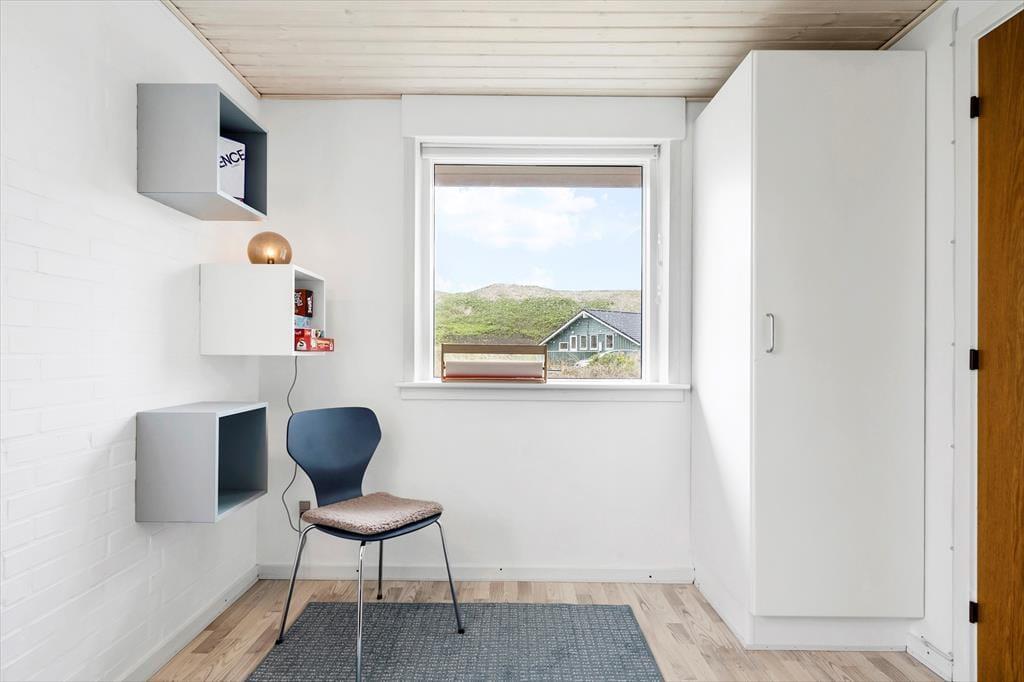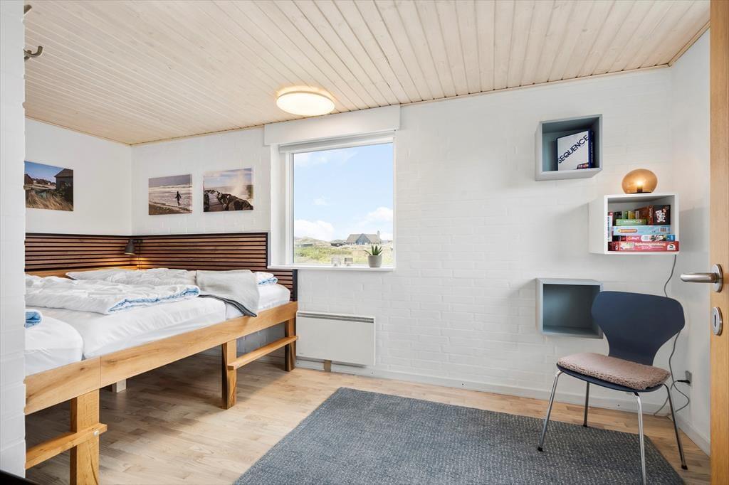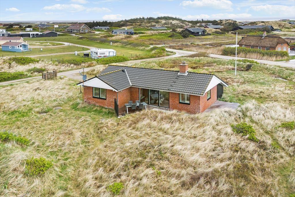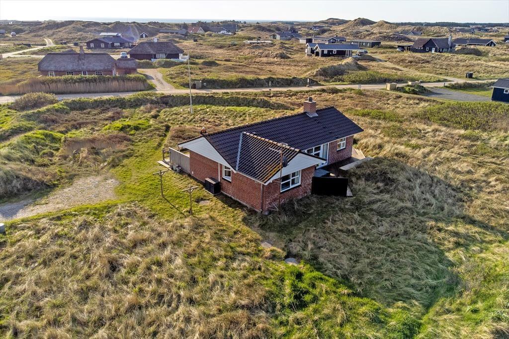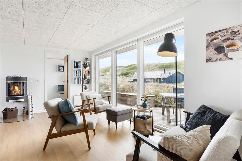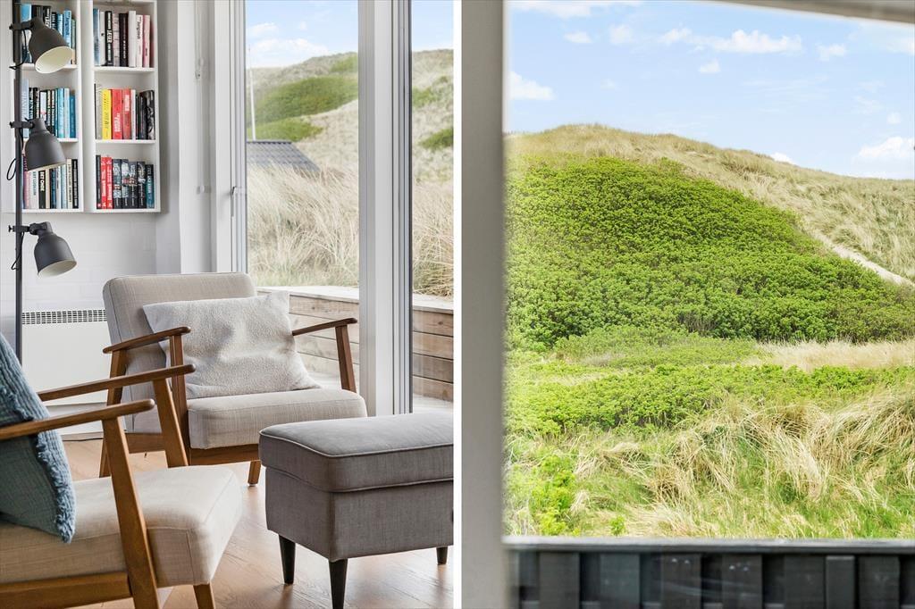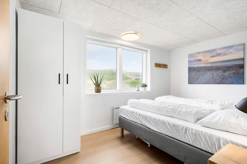 Efter en omfattende renovering i 2024 er sommerhuset blevet optimeret, så det nu er et endnu skønnere sted at holde ferie. Udsigten ligner heldigvis sig selv, og den kan du kigge ud på gennem et nyt, stort vinduesparti i stuen – tænk, hvor skønt at kunne sidde i en solstråle med frit udsyn til klitterne, mens du drikker kaffe og nyder varmen fra brændeovnen! Husets indretningsstil er i det hele taget både hyggelig og moderne, og der er lavet mange smarte løsninger, der passer perfekt til rummene: For eksempel er spisebordet integreret med det flotte turkisblå/grønne køkken, og en lang bænk giver jer masser af plads, når du og familien vil samles. På det ene soveværelse er sengen også specialbygget, så den går fra væg til væg. Hvis du har et barn, der gerne vil sove sammen med forældrene, er det for eksempel optimalt – og så er der endda plads til feriekufferten under sengen.
