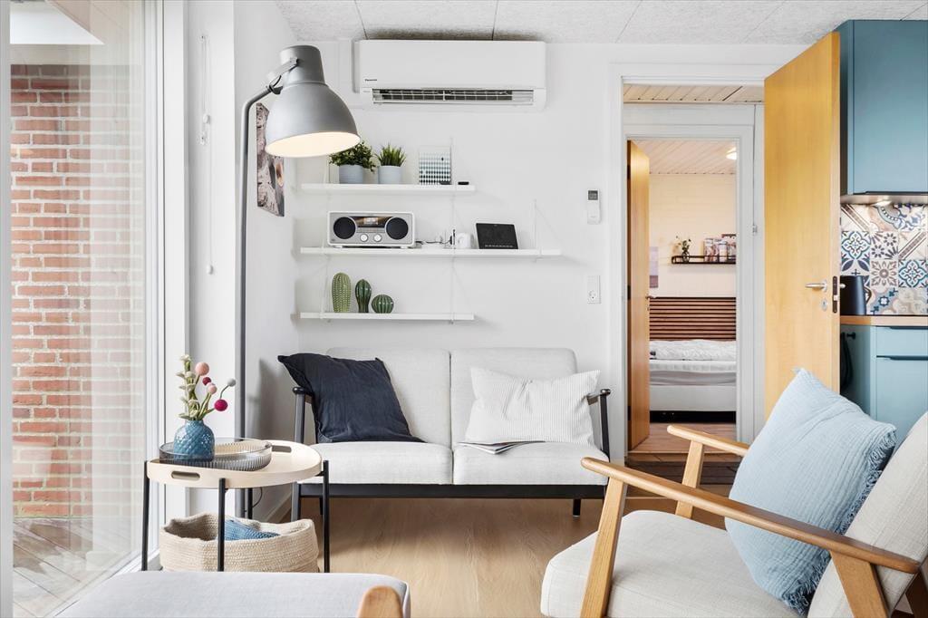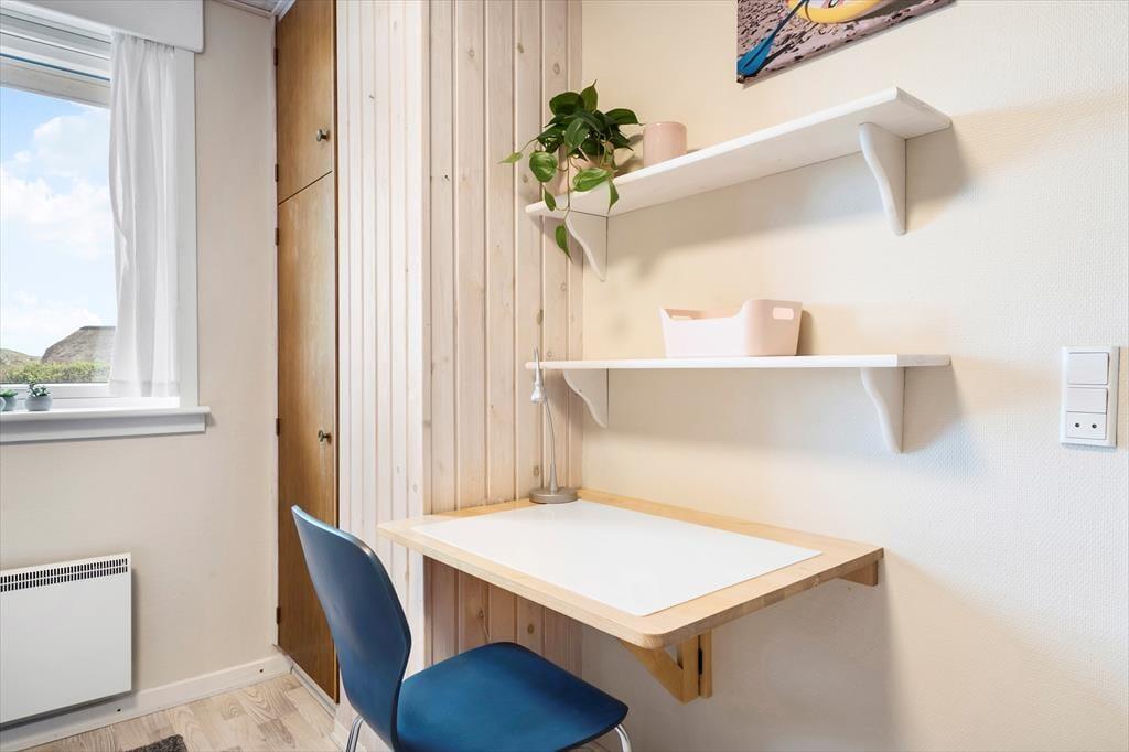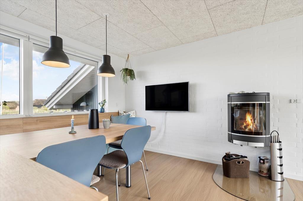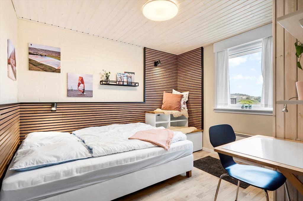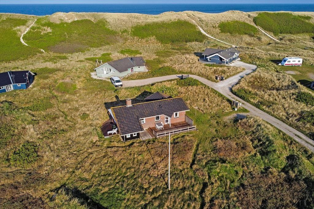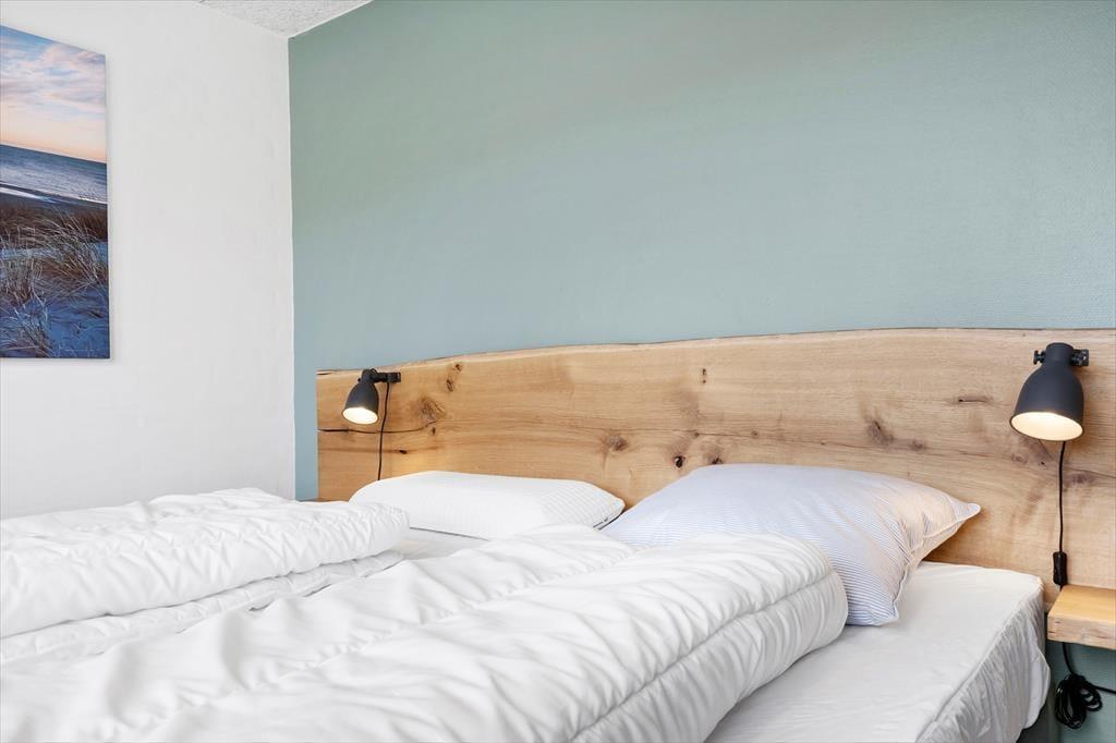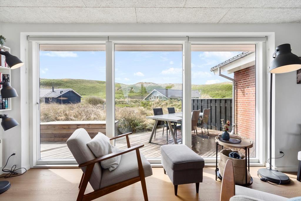 Efter en omfattende renovering i 2024 er sommerhuset blevet optimeret, så det nu er et endnu skønnere sted at holde ferie. Udsigten ligner heldigvis sig selv, og den kan du kigge ud på gennem et nyt, stort vinduesparti i stuen – tænk, hvor skønt at kunne sidde i en solstråle med frit udsyn til klitterne, mens du drikker kaffe og nyder varmen fra brændeovnen! Husets indretningsstil er i det hele taget både hyggelig og moderne, og der er lavet mange smarte løsninger, der passer perfekt til rummene: For eksempel er spisebordet integreret med det flotte turkisblå/grønne køkken, og en lang bænk giver jer masser af plads, når du og familien vil samles. På det ene soveværelse er sengen også specialbygget, så den går fra væg til væg. Hvis du har et barn, der gerne vil sove sammen med forældrene, er det for eksempel optimalt – og så er der endda plads til feriekufferten under sengen.