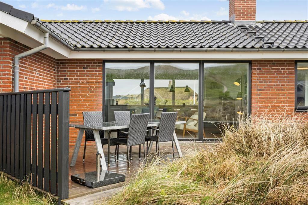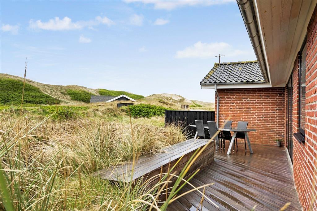 Omkring huset breder to dejlige terrasser sig, og de kan helt oplagt blive dine foretrukne opholdspladser, når solen skinner, og himlen over Aargab er klar og blå. Morgenkaffen kan du tage med ud på den østvendte terrasse. Her føles det godt at starte dagen i roligt tempo, mens resten af huset og det omkringliggende landskab langsomt vågner. Senere kan du flytte dig hen på den sydvestvendte terrasse, hvor du kan nyde livet og beundre udsigten over naturgrundens marehalm og videre ud over klitterne. En eller flere biler kan holde ved indkørslen – og hvis du kommer i elbil, er der for øvrigt mulighed for at lade den op.