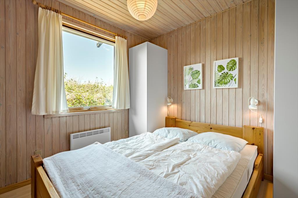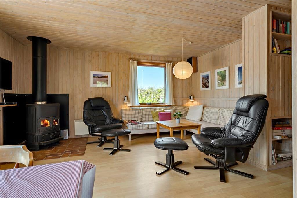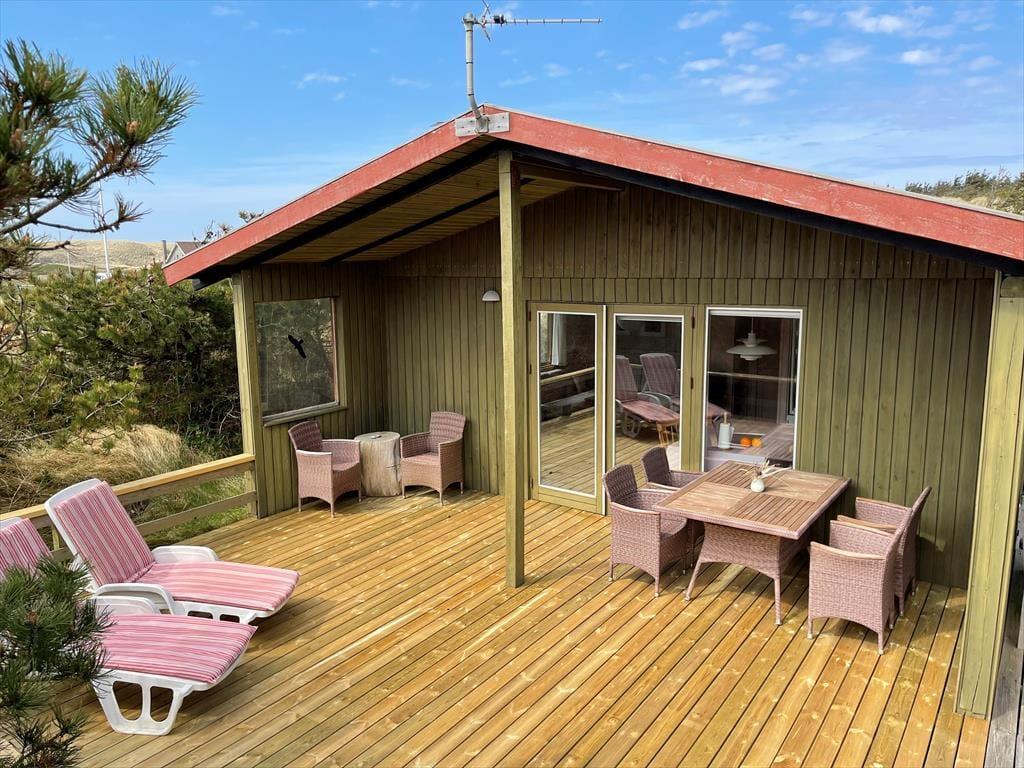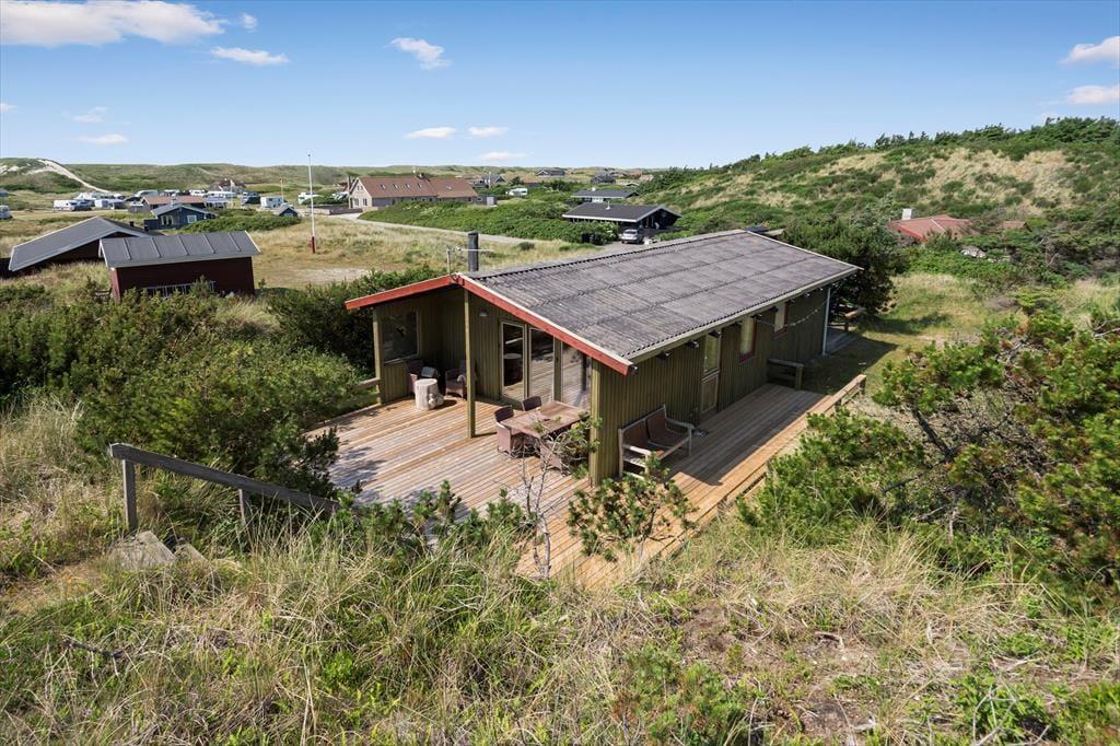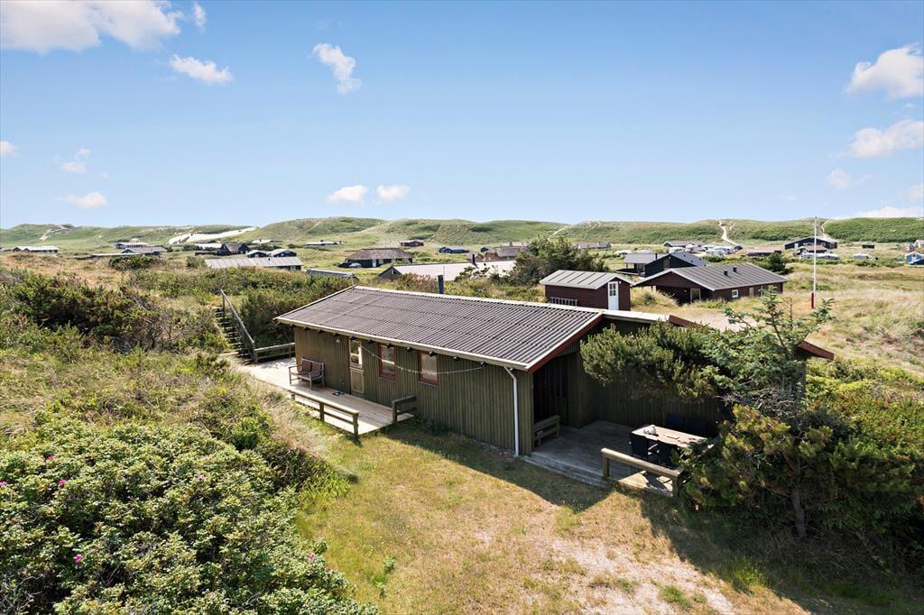 Dette attraktive sommerhus ligger blot 350 meter fra Vesterhavet, og her har I en skøn ramme om feriedagene i den smukke, vestjyske kystlandskab. Foruden masser af natur har I også nem adgang til Nordsø Campings subtropiske vandland.