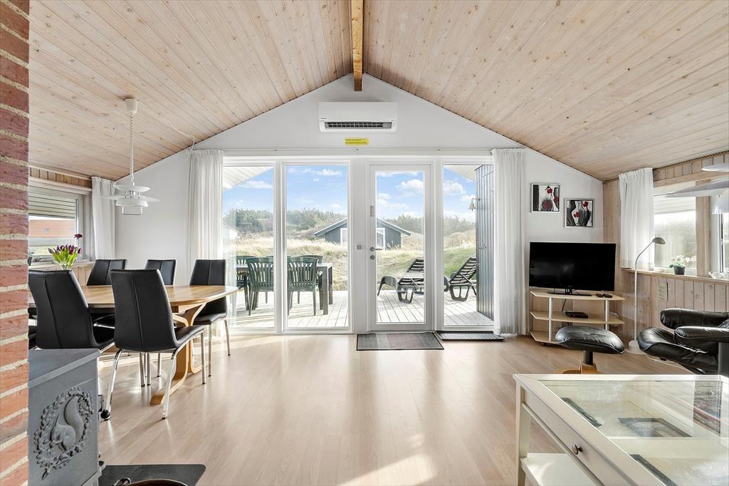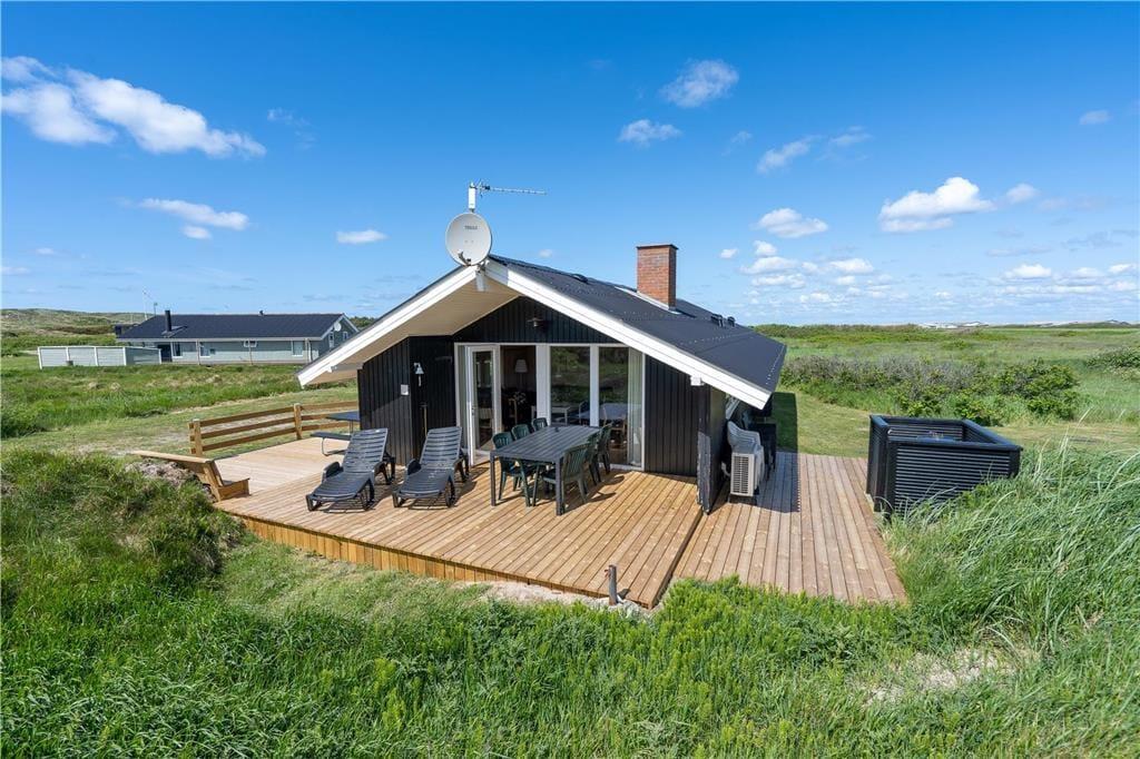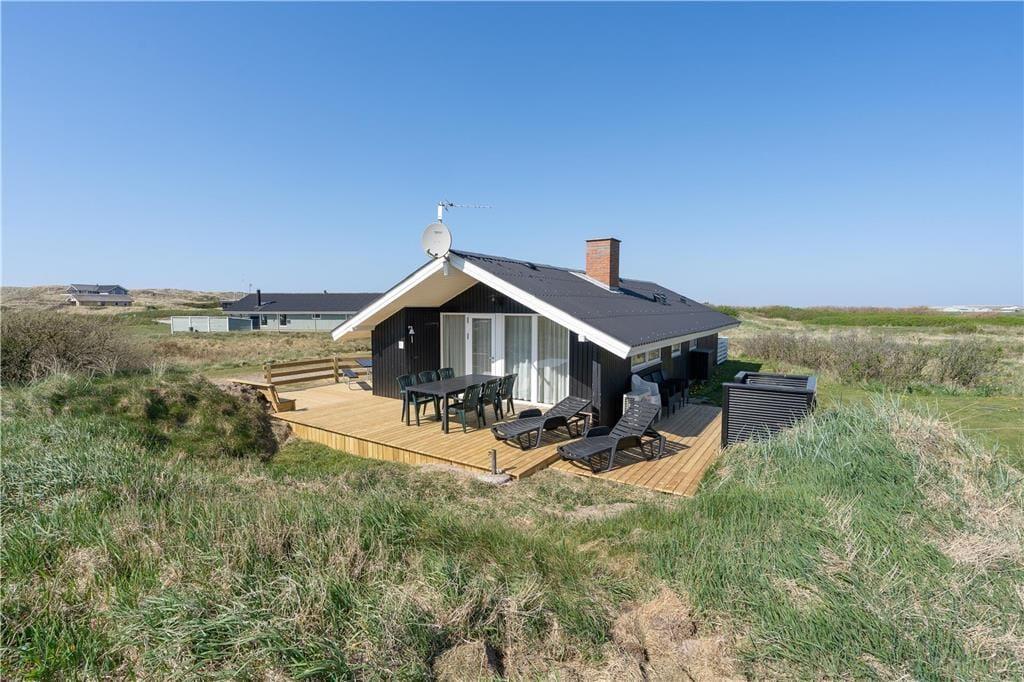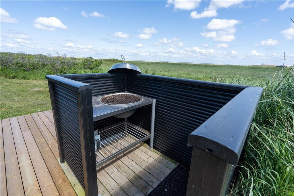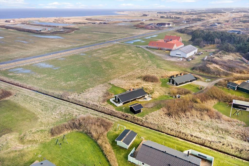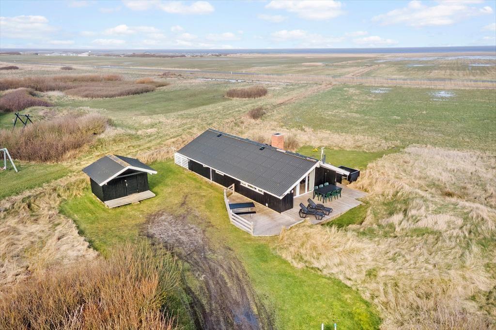 Fra stuen har I direkte adgang til et skønt terrassemiljø, hvor sommerens solrige dage kan nydes i solens varme skær, uanset om I vil bruge tiden i liggestolene eller nyde et lækkert måltid fra grillen med et køligt glas vin ved terrassebordet. Grunden ligger ud til grønne friarealer, og her er en langstrakt udsigt mod Ringkøbing Fjord.