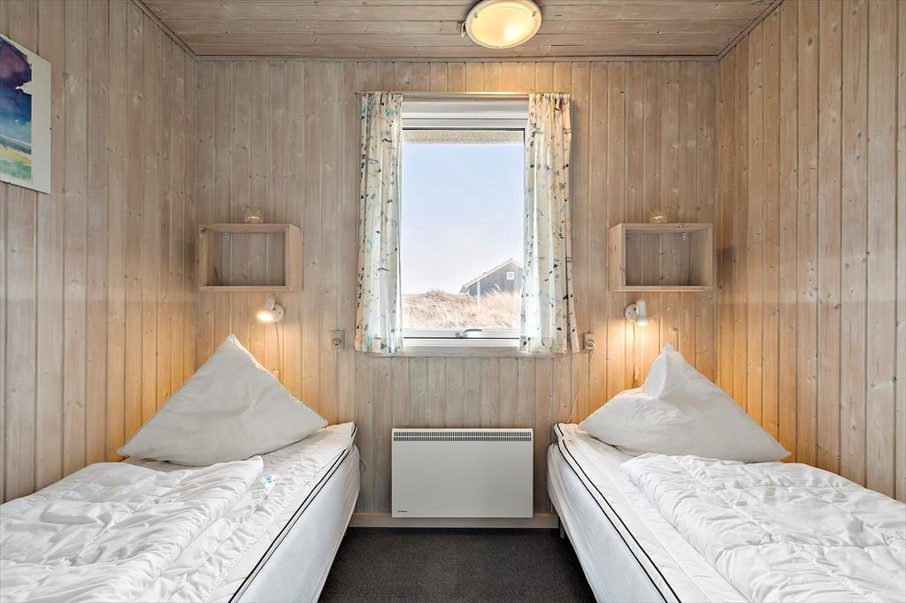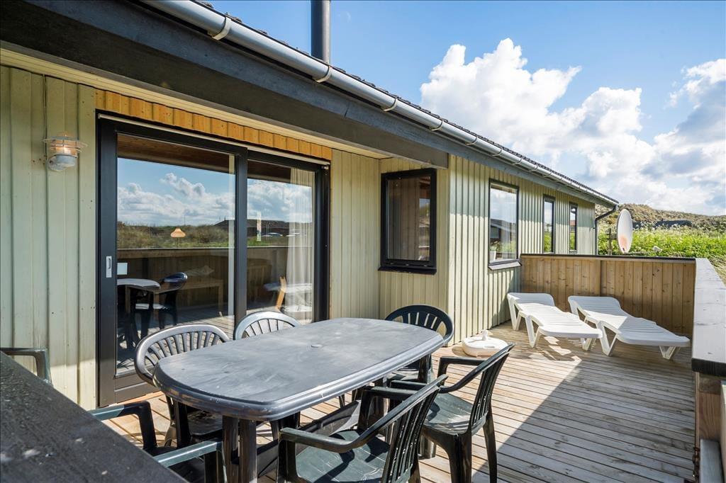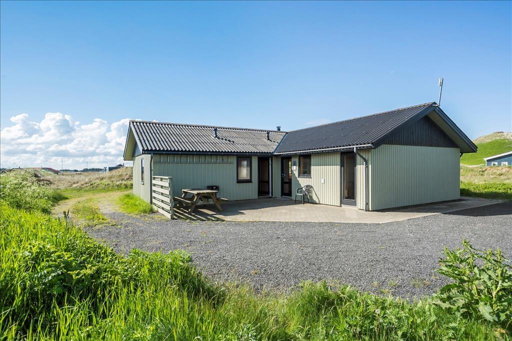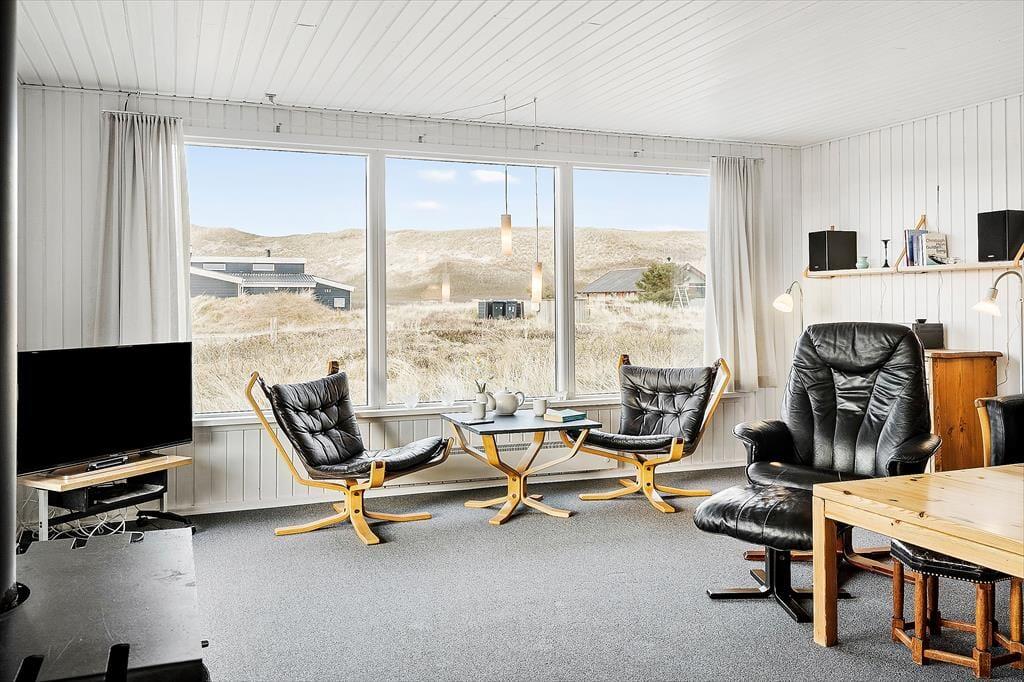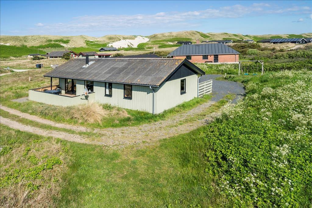 Dette rummelig sommerhus er med sengepladser til seks personer en oplagt ramme om feriedagene for den store børnefamilie eller flere vennepar, der vil holde ferie sammen. Sommerhuset ligger i tredje række til “havbjergene” ved Vesterhavet, og her er kun en kort gåtur til en frisk dukkert i bølgen blå.