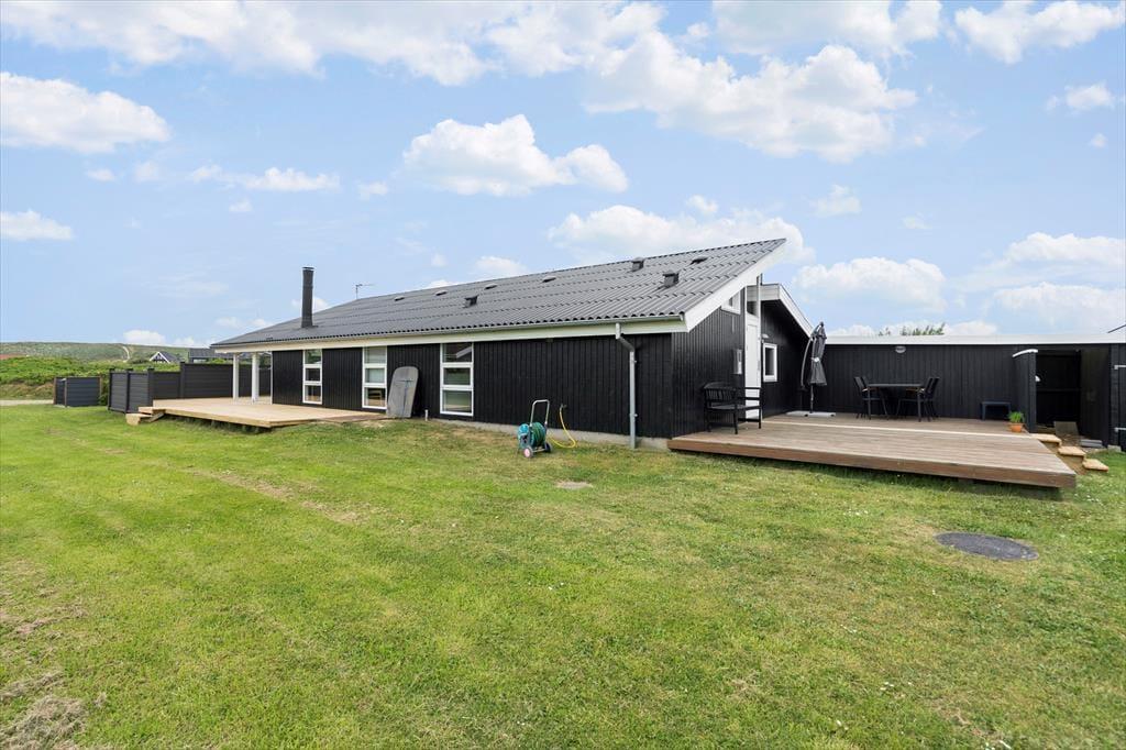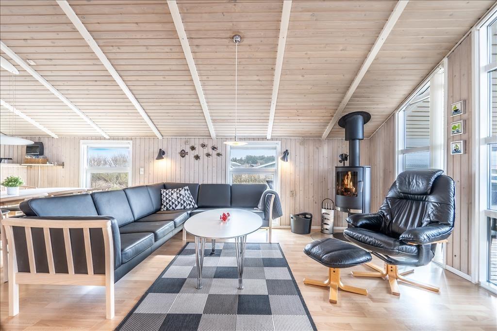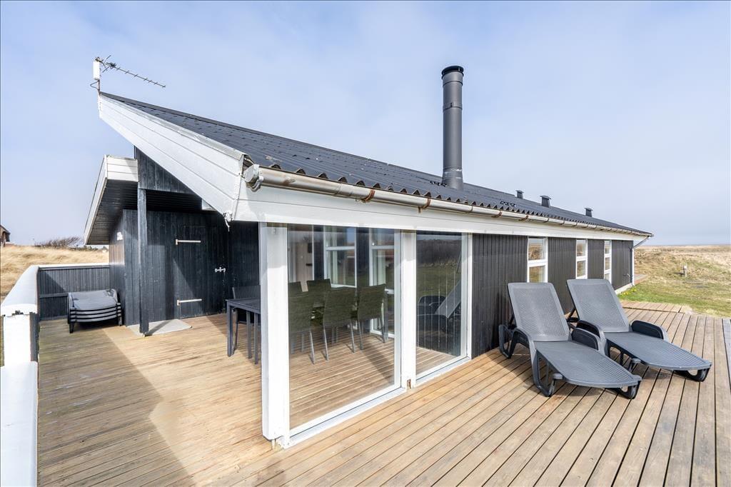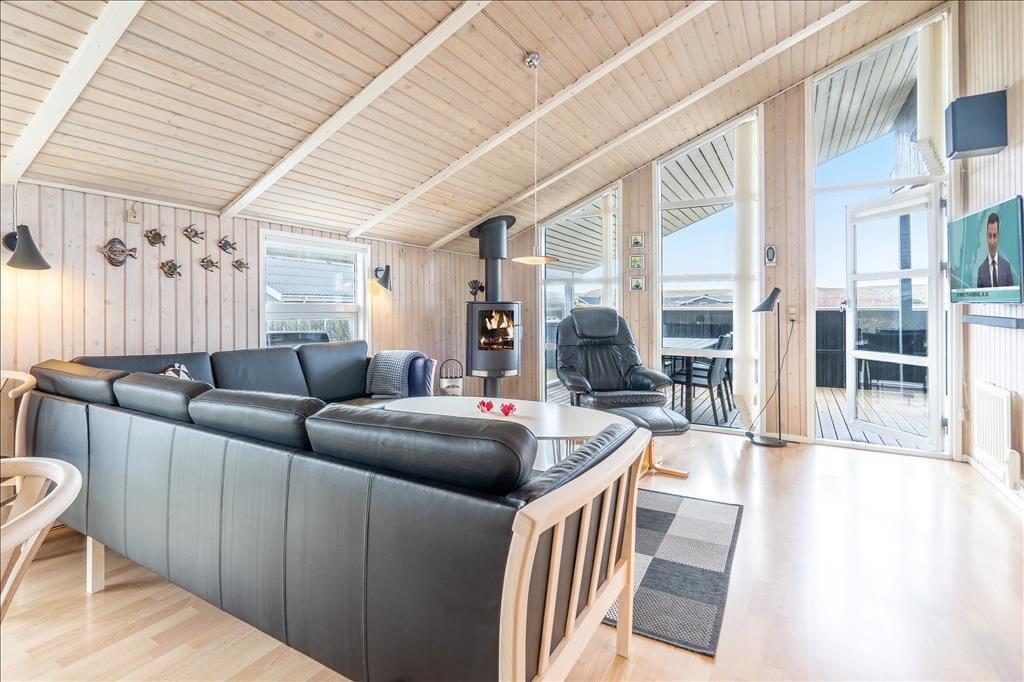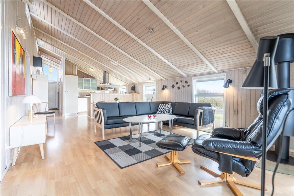Dette lækre sommerhus er stedet, hvis I leder efter en velindrettet feriebolig med plads til det store indryk. 4 soveværelser har I til rådighed til 6 personer, huset er lyst og luftigt, udenfor har I store, solvendte terrasser, og som prikken over i’et er her kig til Ringkøbing Fjord.