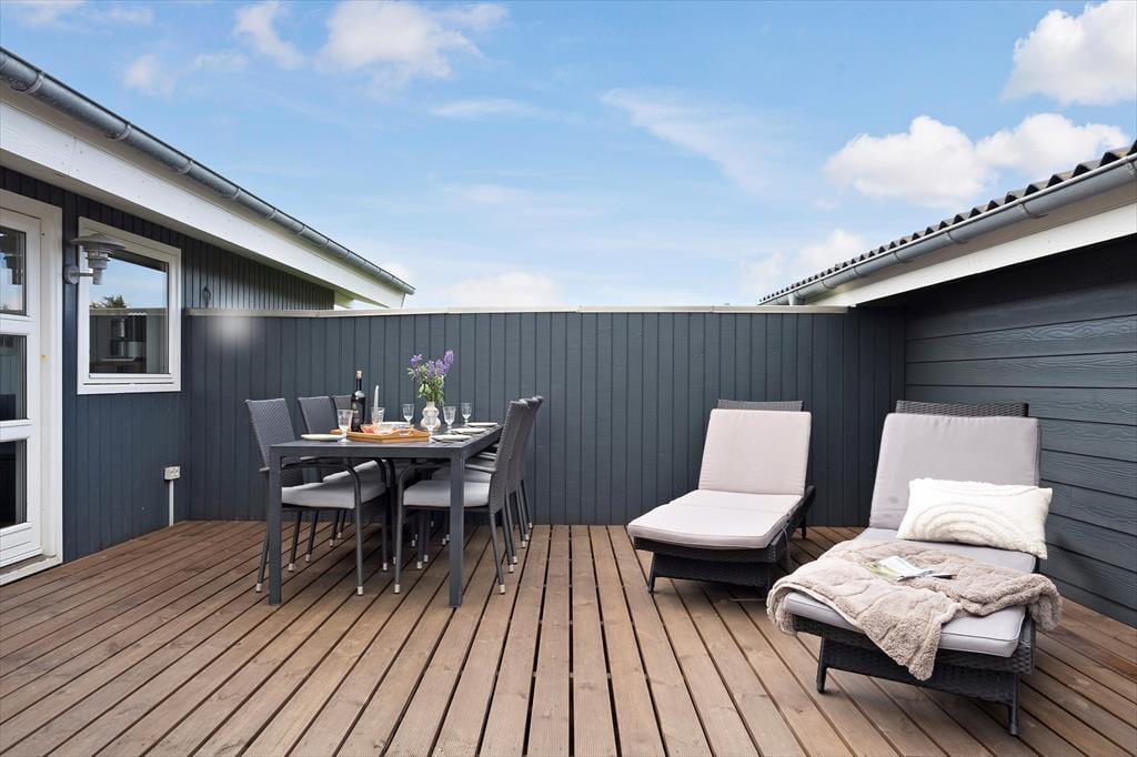 Skinner solen, kan I trække ud på den sydvendte terrasse, der har samme stemning som i en gårdhave, hvor I kan nyde solen i læ for vinden og helt ugeneret. Ligeledes er her en vestvendt terrasse, hvor I kan bruge aftenerne, mens solen synker mod horisonten.
