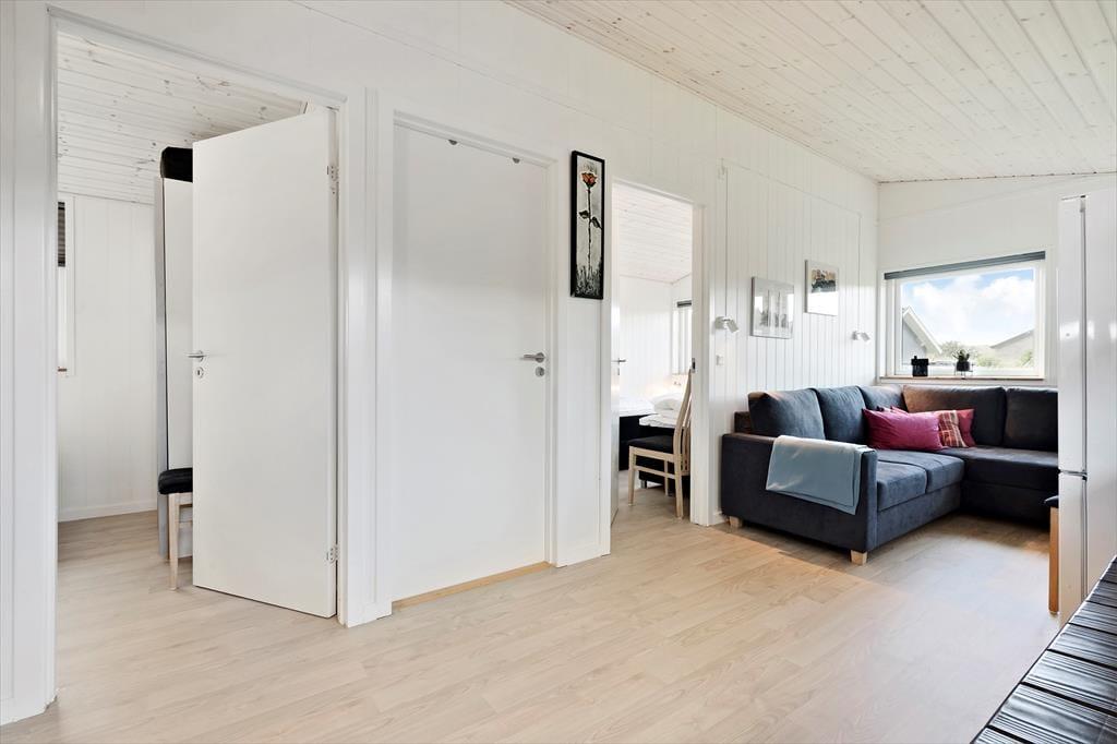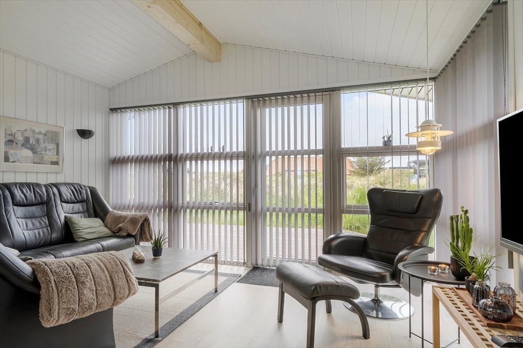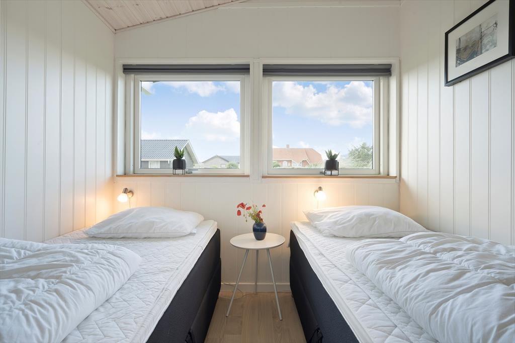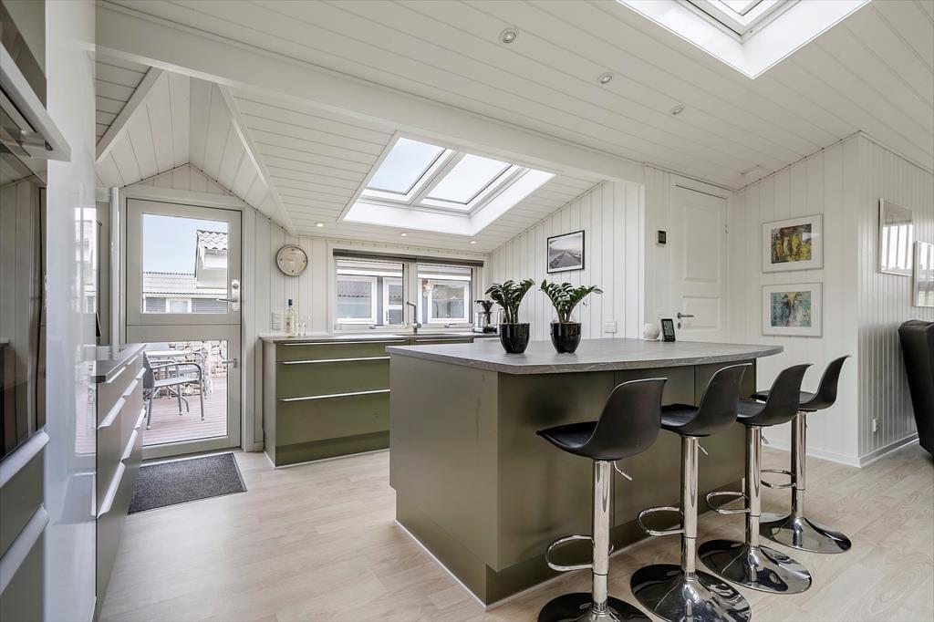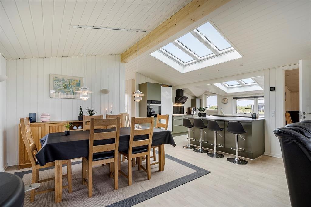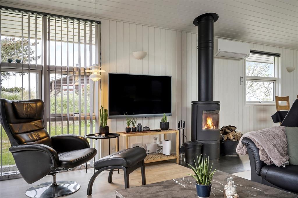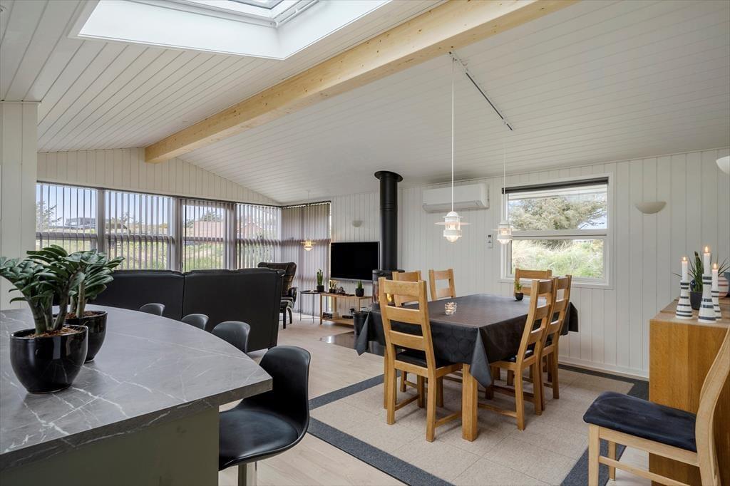 I får en lækker ramme om feriedagene, hvis I vælger dette sommerhus, der ligger i Aargab syd for Hvide Sande og har kig til Ringkøbing Fjord. Huset er opdelt i to separate sektioner, der begge har sengepladser til fire personer, så det er ideelt til to familier, som gerne vil holde ferie sammen, men alligevel have mulighed for også at være hver for sig.