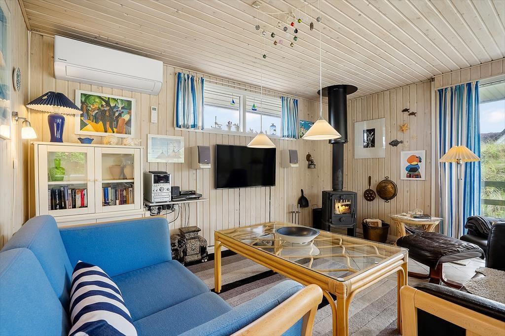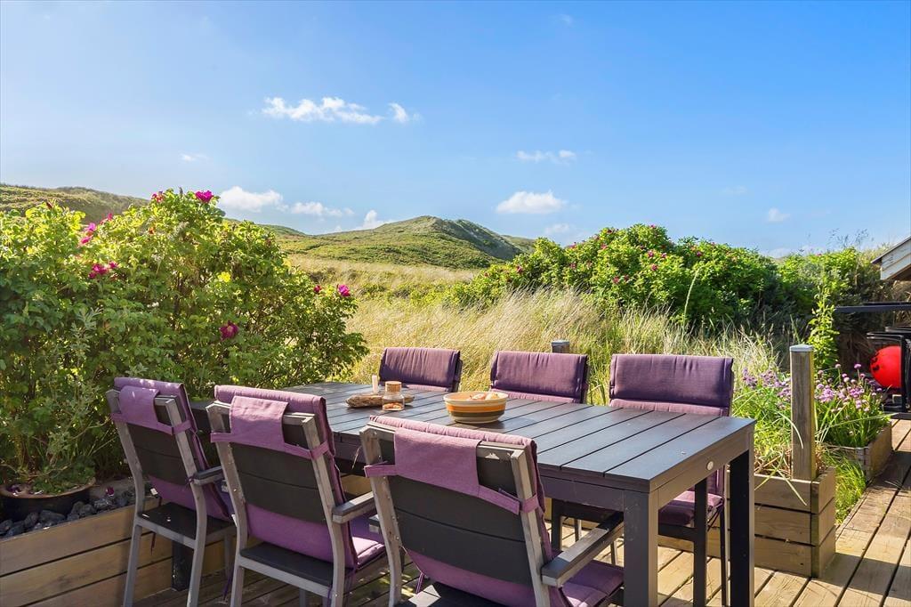 Oplevelsen af naturen er i højsædet i dette skønne sommerhus, der er omgivet af det uspolerede, vestjyske klitlandskab. Fra huset og terrasserne er panoramaudsigten til klitheden og “havbjergene” et smukt og idyllisk syn, og I har blot 150 meters gang over klitrækken til stranden og Vesterhavet.