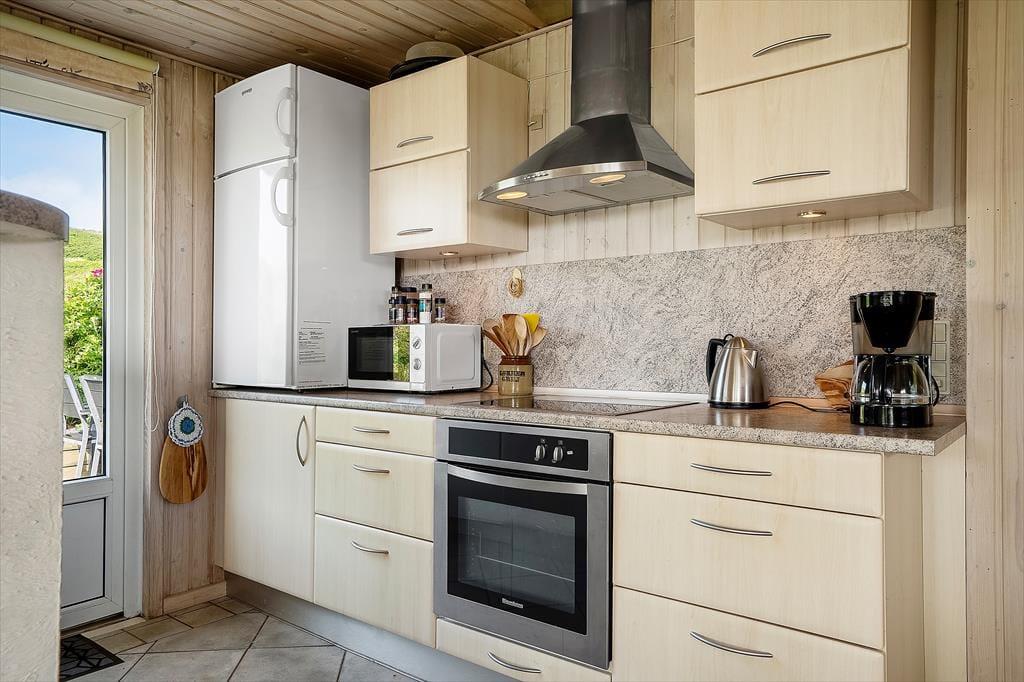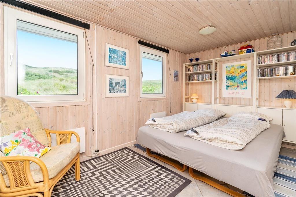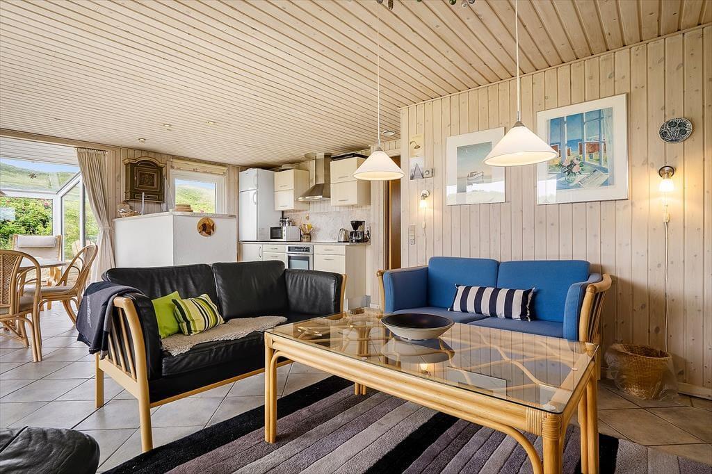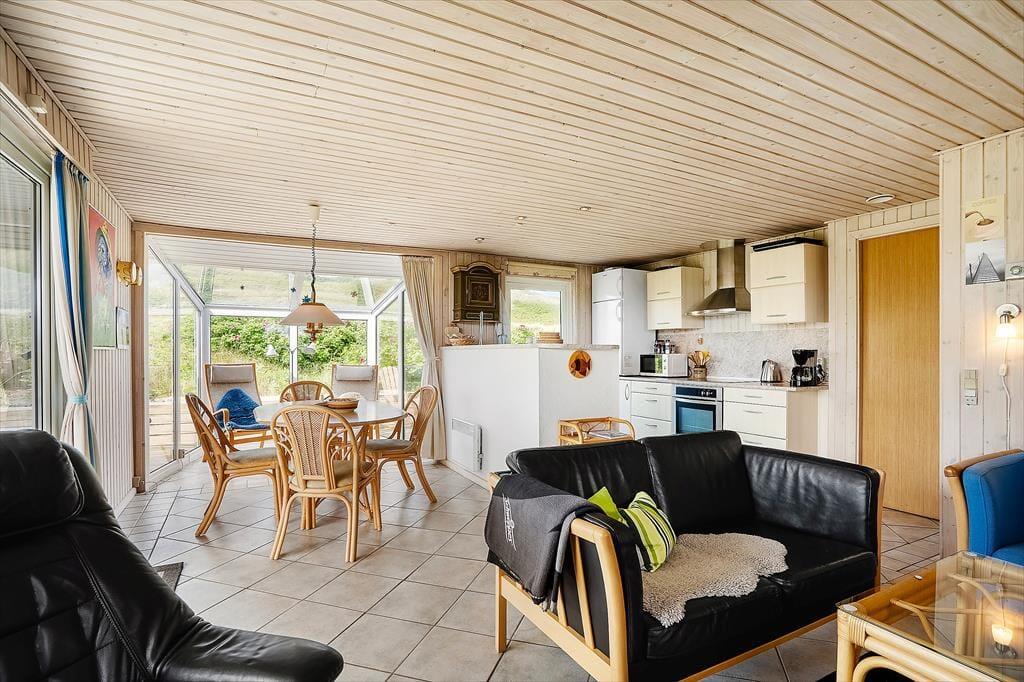 Huset er indrettet med to soveværelser, som giver sengepladser til fire personer. Badeværelset byder på bruseniche, og med en sauna får jeres feriedage masser af velvære. Huset fuldendes af et stort, åbent opholdsområde, hvor I har god plads til at være sammen om at lave mad i det velindrettede køkken og nyde de lækre retter omkring spisebordet. I kan også læne jer tilbage i sofaarrangementet og hygge med en god film eller den seneste krimiroman. Vil I lade jer betage af udsigten til omgivelsernes natur, er lænestolene i glaskarnappen stedet, uanset om I vil nyde synet af aftensolen, der synker ned bag klitterne, eller om I vil have stemning for alle pengene, når regnen trommer blidt på ruderne.