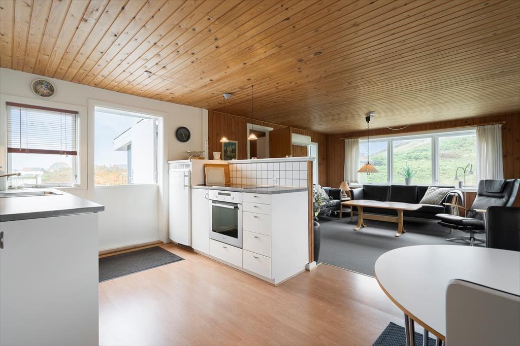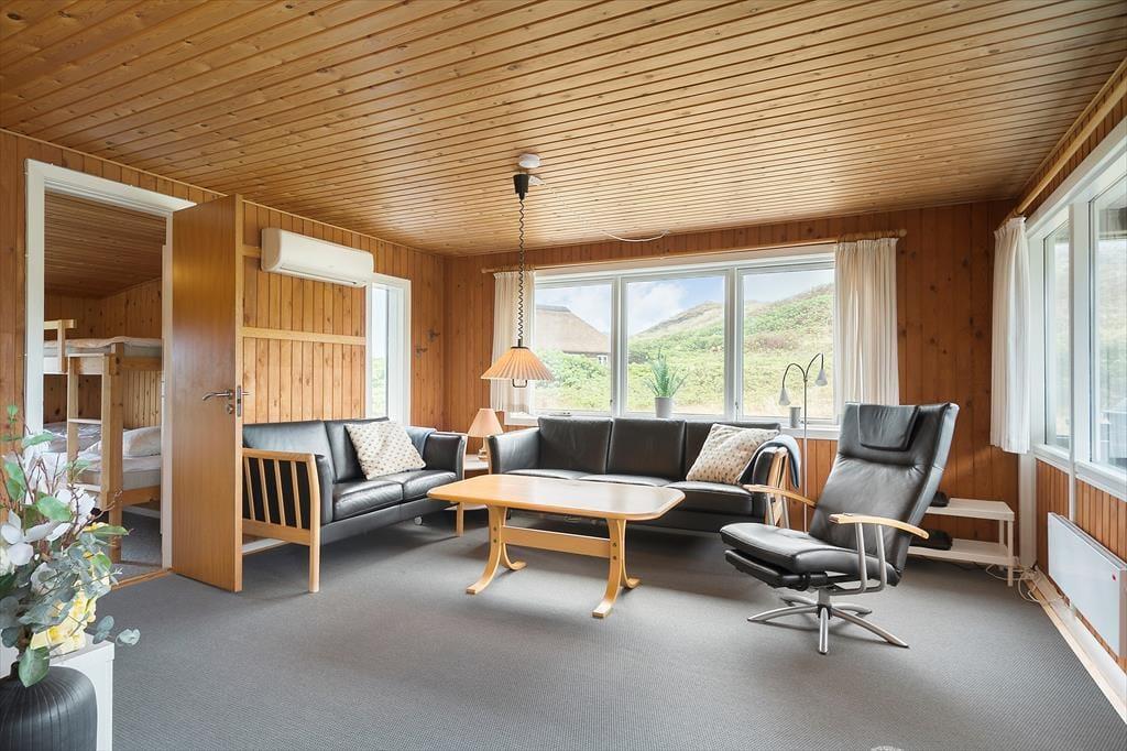 På grund af den attraktive beliggenheden behøver I egentlig ikke at bevæge jer udenfor for at nyde naturomgivelserne. Især i stuen er udsigten til klitterne helt betagende, så når I slapper af i sofaen eller laver mad i det åbne køkken, har I noget smukt at kigge ud på. Huset er bygget i 1964, men fremstår samtidig pænt og velordnet, for det er nemlig blevet renoveret med nyt køkken og nye møbler. Ud over opholdsrummet byder planløsningen på et velindrettet badeværelse med bruser, vaskemaskine og gulvvarme, og der er også to soveværelser at gøre godt med, så I fint kan være fem personer i huset.