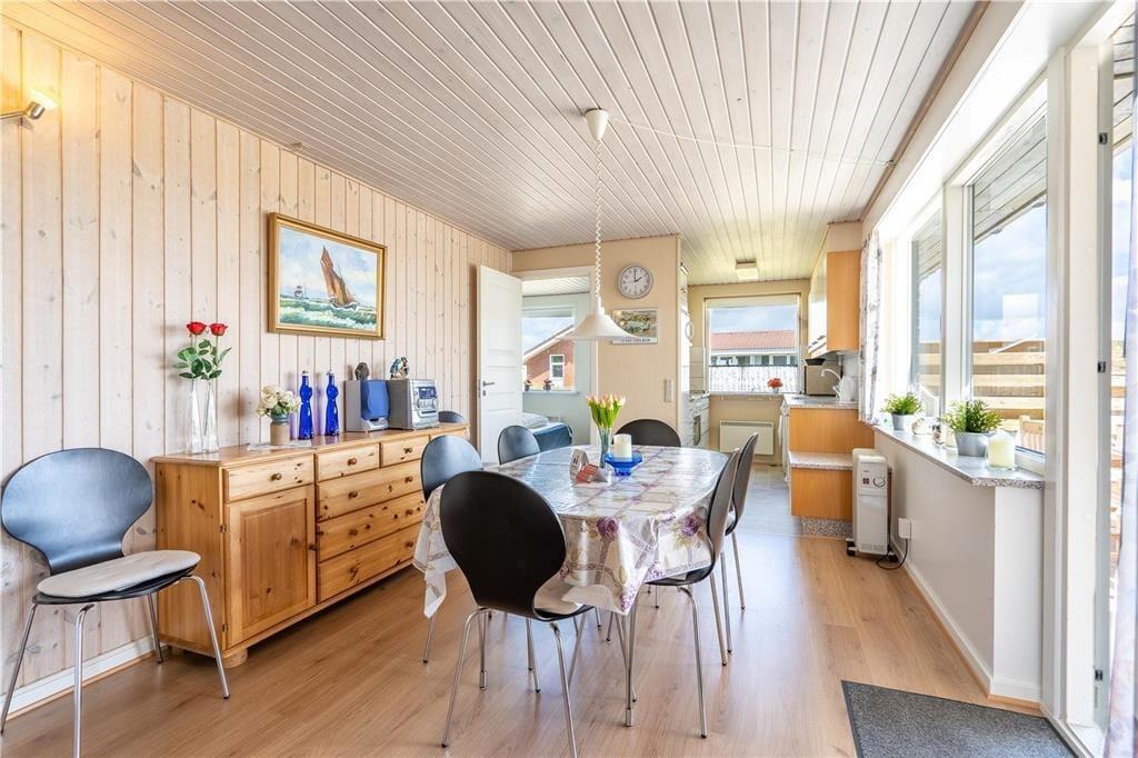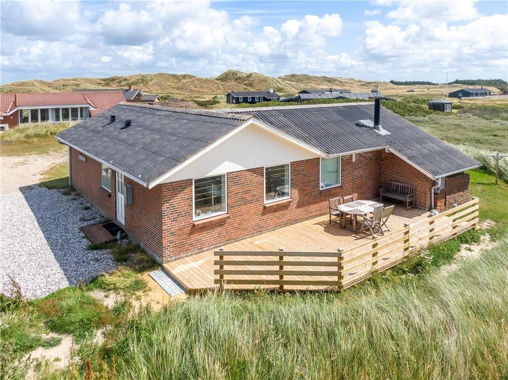Dette sommerhus er et match til børnefamilien, der er på udkig efter en funktionel og rummeligt indrettet feriebolig med plads til syv personer. Udelivet kan I nyde på store, solvendte terrasser, og med placeringen i Aargab midt mellem Ringkøbing Fjord og Vesterhavet har I masser af smuk, vestjysk natur omkring jer.