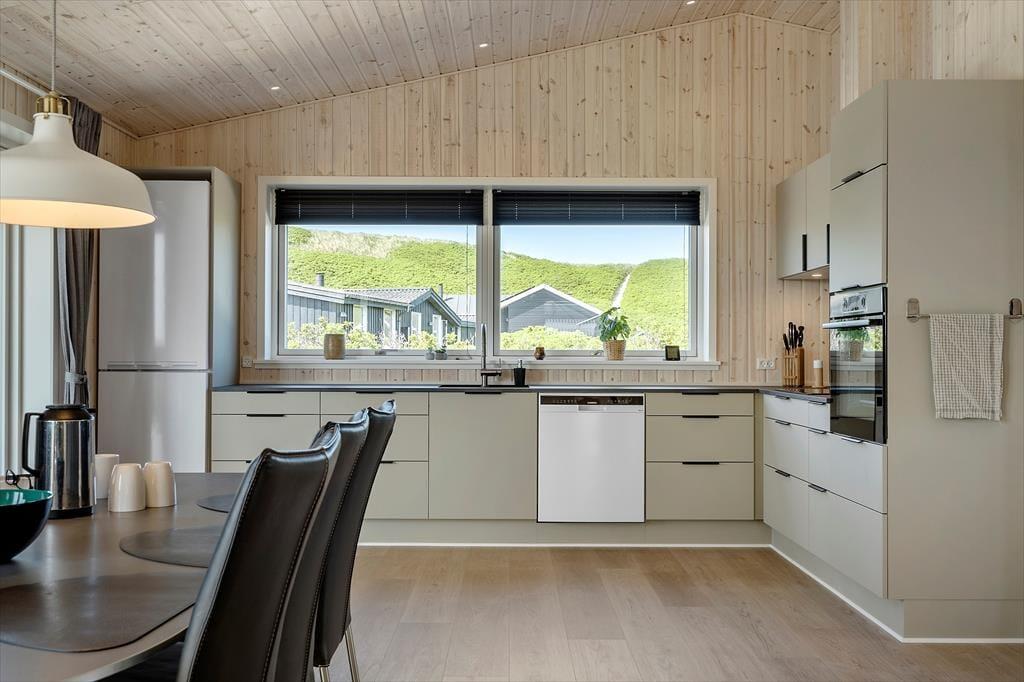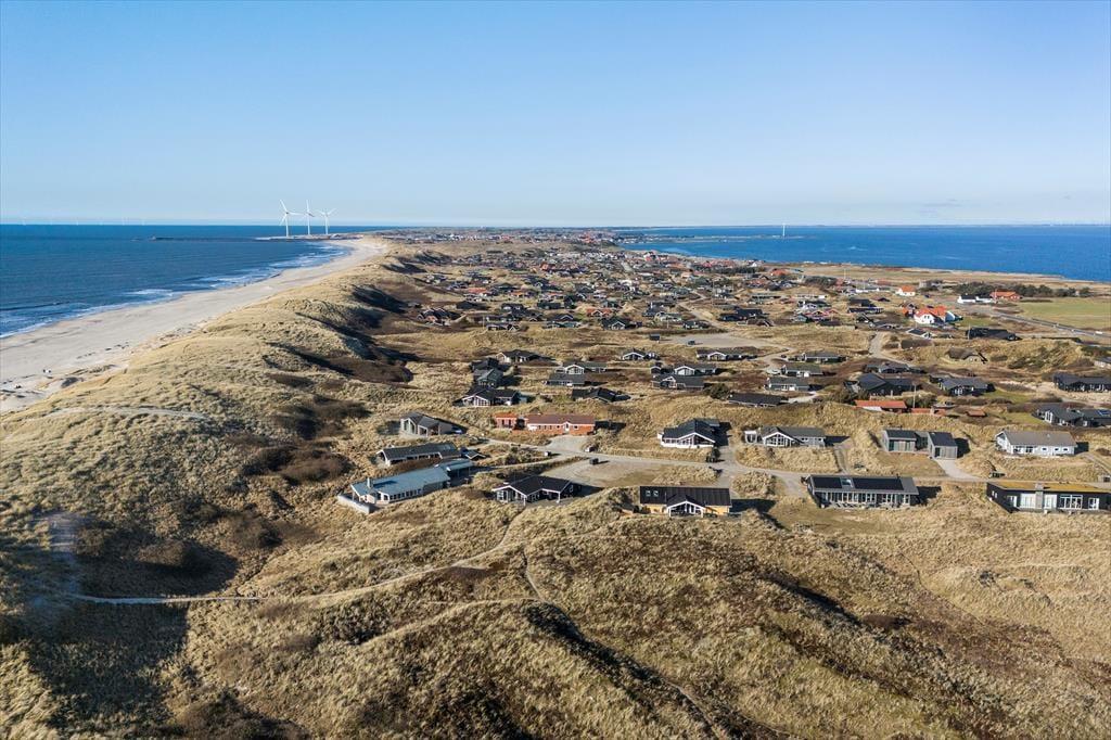 200 meter til stranden betyder, at I bare skal over klitrækken, før I står ved Vesterhavets blå bølger. Krydr sommerdagen med en frisk dukkert i det salte vand, eller nyd en frisk gåtur langs de brusende bølger, når naturen viser kræfter i ydersæsonerne. Feriehuset ligger i Aargab mellem Vesterhavet og Ringkøbing Fjord, og den kuperede, vestjyske klithede inviterer til lange gåture eller udflugter på cyklen. Familiens yngste har masser af plads og muligheder for at udforske omgivelserne, og det er oplagt at sætte en drage op fra en af områdets klitter. Har I surfgrej eller fiskestænger med, kan I nemt bruge dagene ved eller på vandet, for området har mange fiskesøer samt fiskepladser ved Afvandingsslusen i Hvide Sande, og der er surfspots ved både fjord og hav. I Hvide Sande fem minutters kørsel fra adressen summer gaderne af liv mellem de mange butikker og gode spisesteder, og her finder I også flere gode supermarkeder.