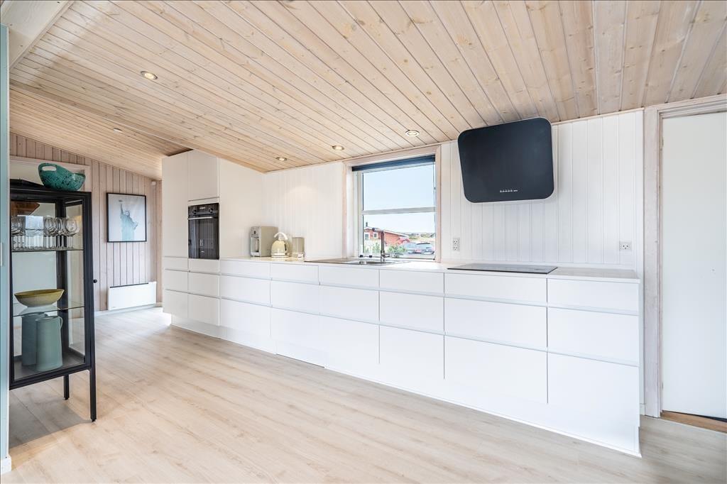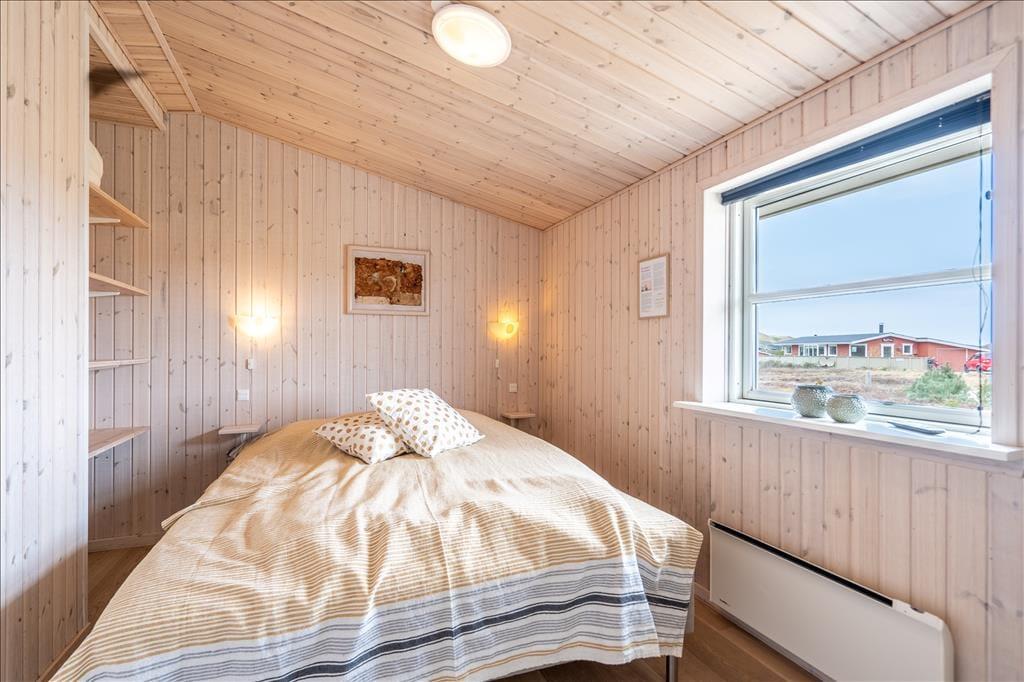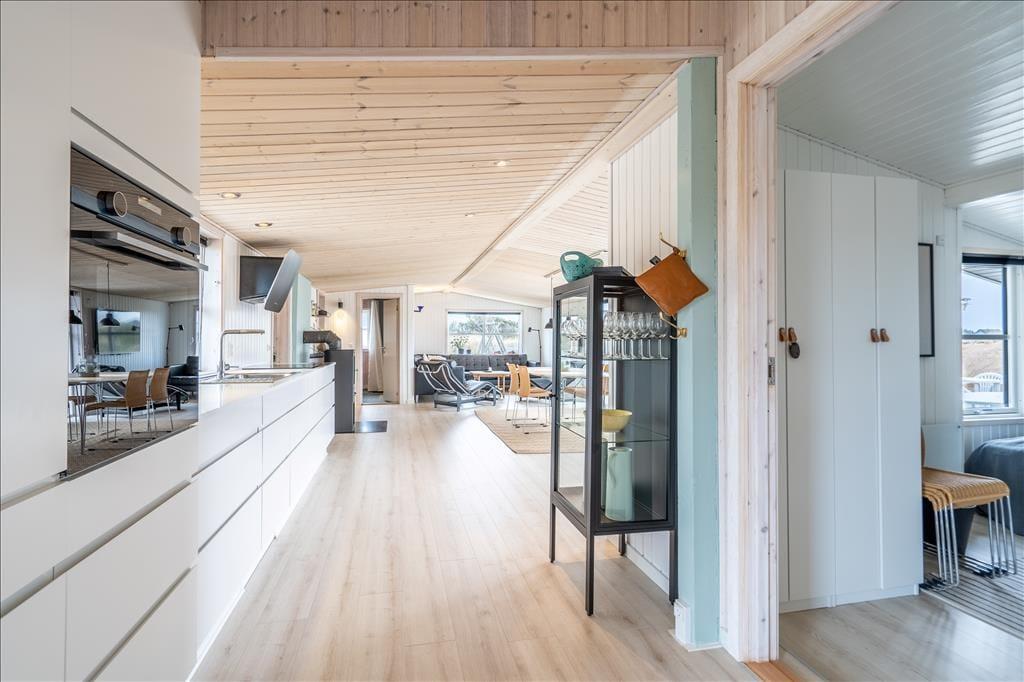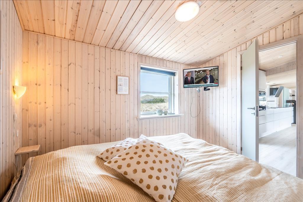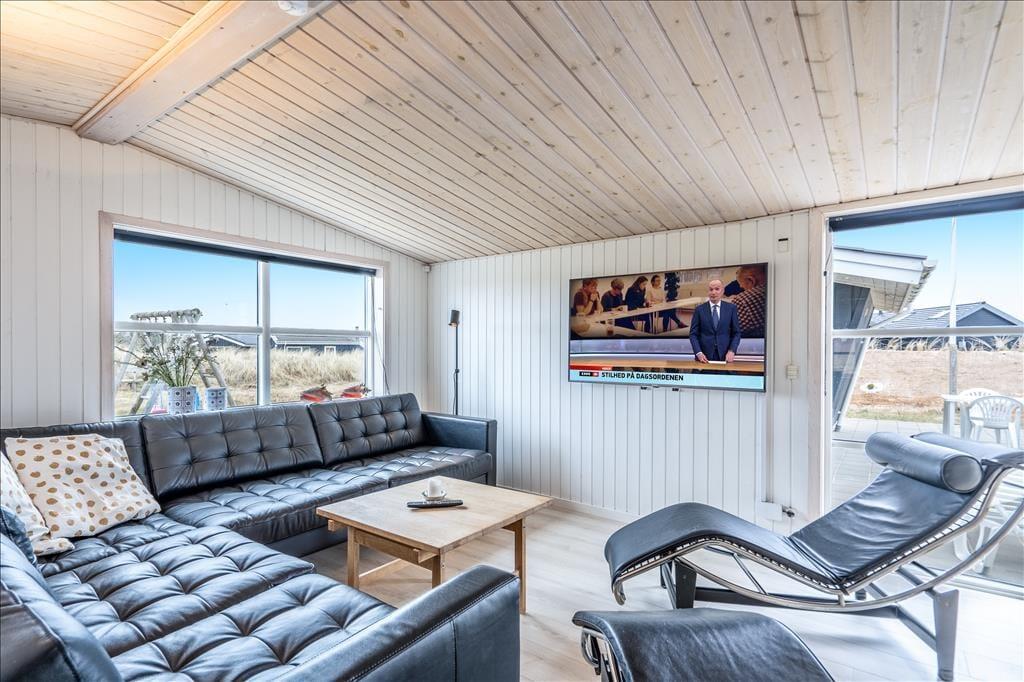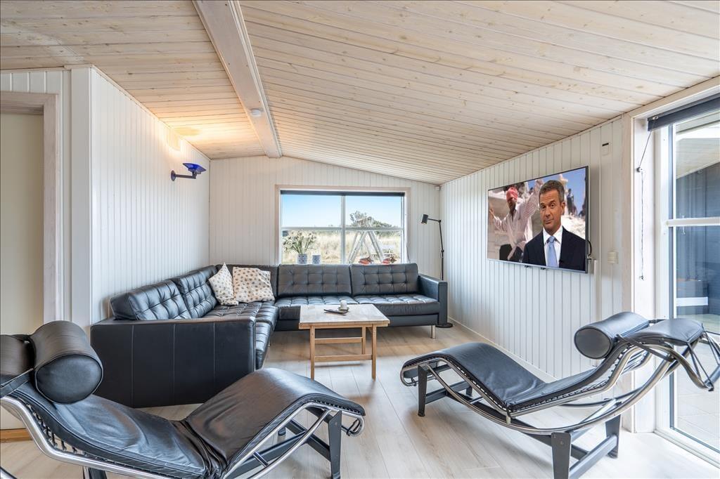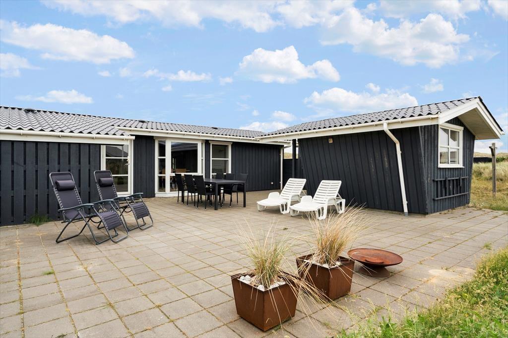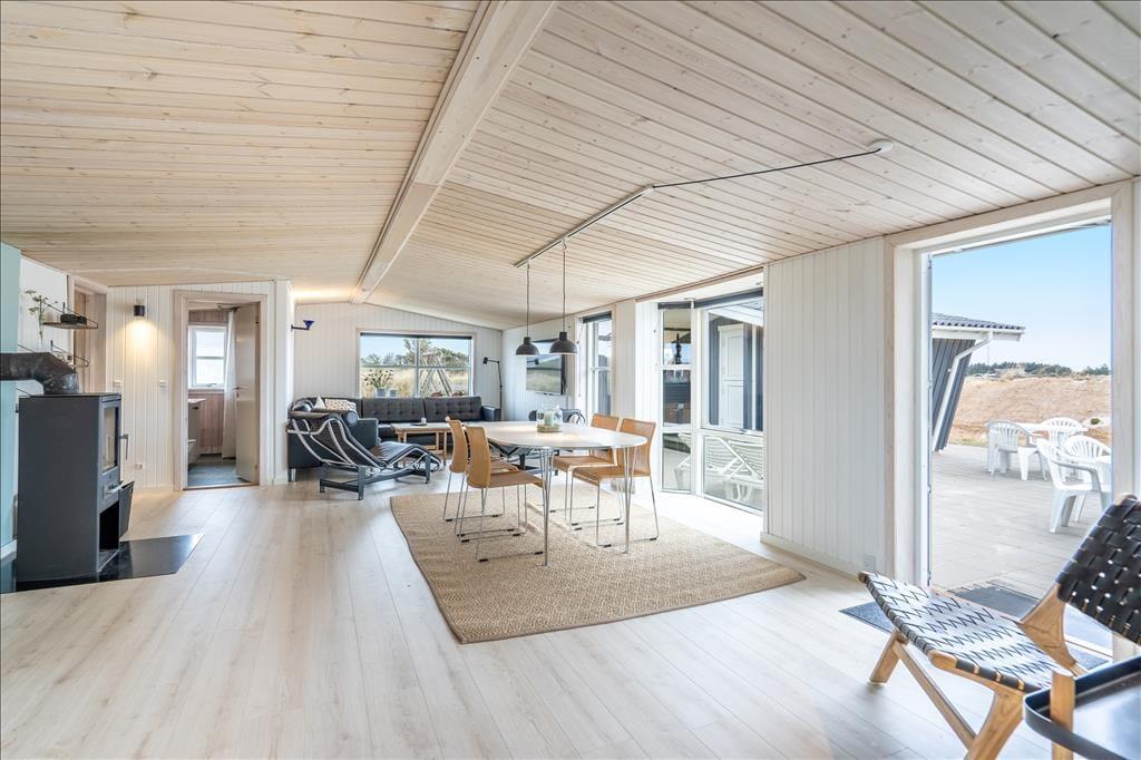 Dette rummelige sommerhus er lyst og velindrettet, og med sengepladser til otte personer kan I holde ferie flere familier sammen. Store terrasser giver mulighed for at nyde sommerdagene i fulde drag med udsigt til fredede klitarealer, og med blot 300 meter til Vesterhavet kan I let bade og gå lange ture ved vandet.