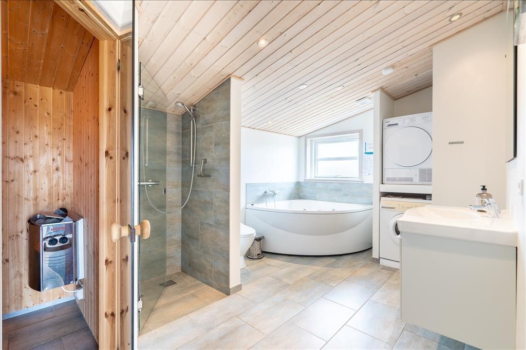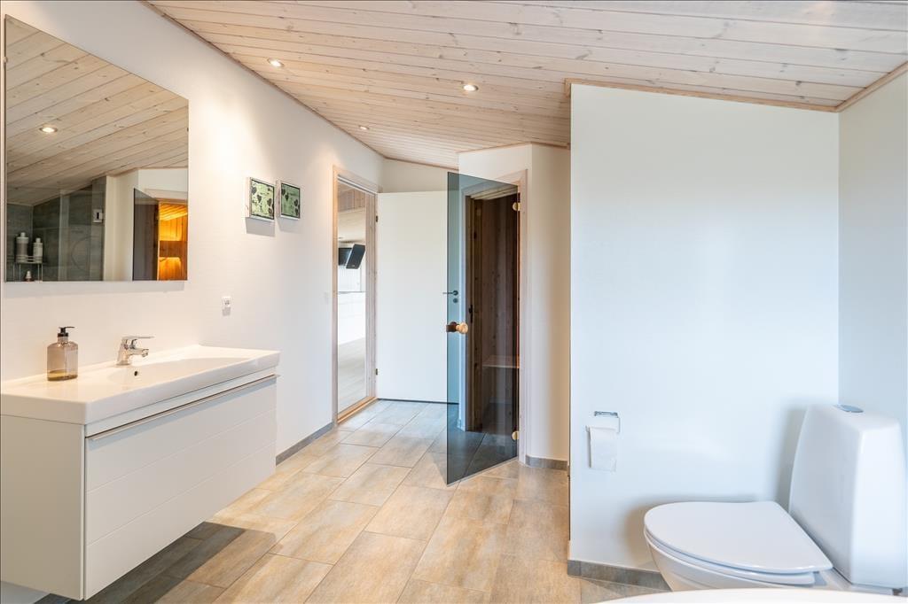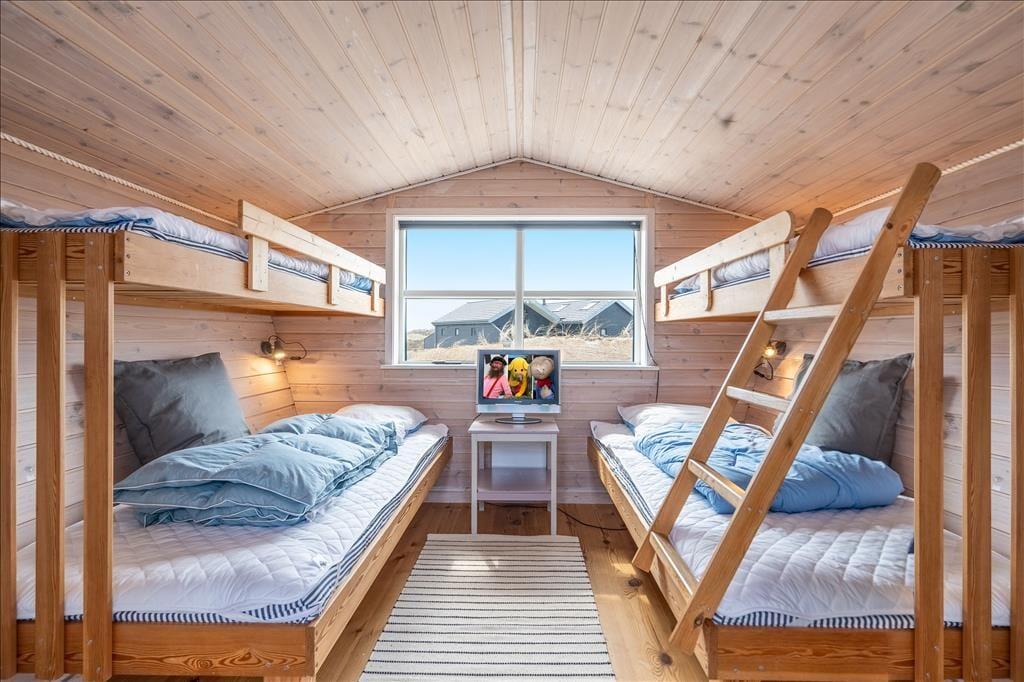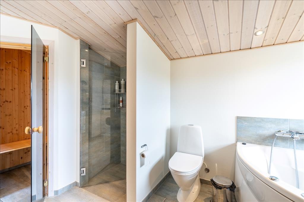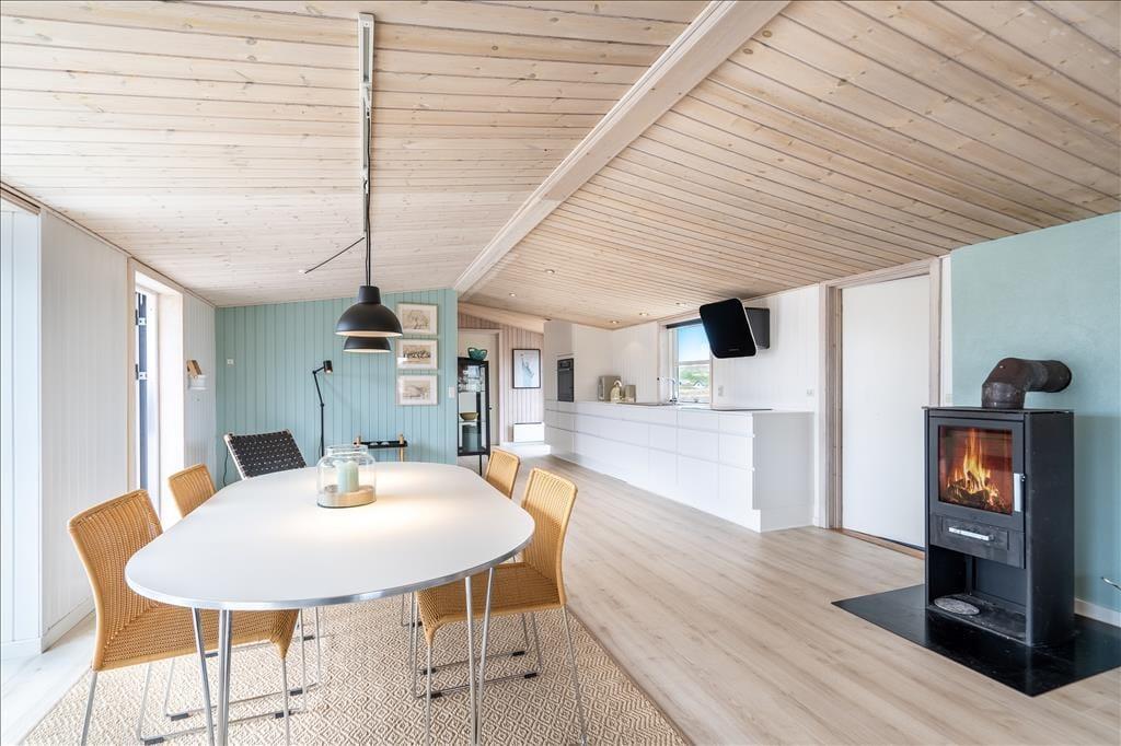 Det velindrettede feriehus byder på en hyggelig atmosfære, som især opleves i det åbne opholdsområde, hvor køkkenet og stuen glider i ét. Her kan I tænde op i brændeovnen og samles omkring spisebordet til lækre måltider eller hyggelige brætspil, mens sofaafsnittet er det ideelle sted at hygge med en god film eller en bog. Køkkenet giver plads til at være sammen om madlavningen, og her samt i stuen giver talrige vinduespartier et behageligt lysindfald og udsigt til naturen. Huset rummer tre soveværelser, hvoraf det ene har eget badeværelse. De to andre værelser deles om feriehusets andet badeværelse, der er indrettet med bruseniche og byder på høj wellness-faktor med både spabad og sauna. Med til huset hører også et anneks med to sengepladser, som bringer det samlede antal op på otte.