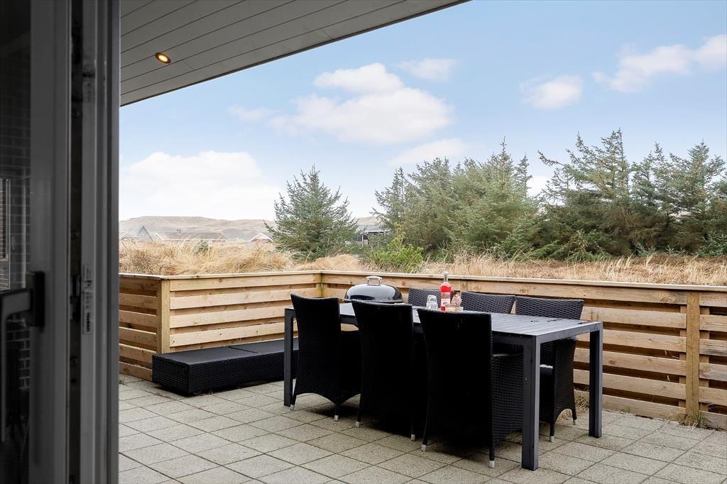 Fra stuen har I adgang til den lækre terrasse, der breder sig mod syd og vest. En mindre del af vestterrassen er overdækket, og der er også et overdækket areal mod øst, så det er nemt at finde en god opholdsplads dagen lang. Lystfiskere kan glæde sig over den udendørs fiskerenseplads, og hvis I har hund med på ferie, vil den trives i de naturskønne, fredelige omgivelser.