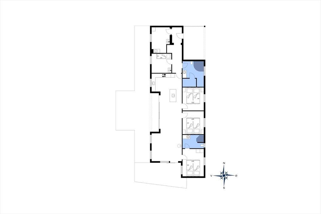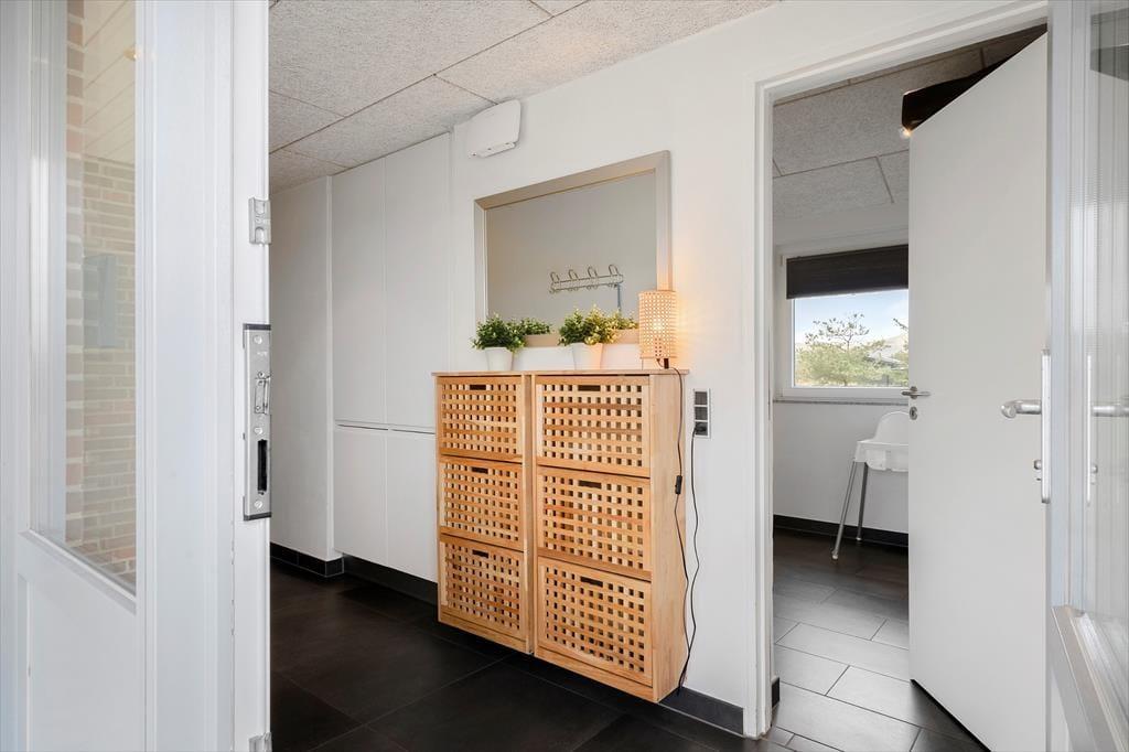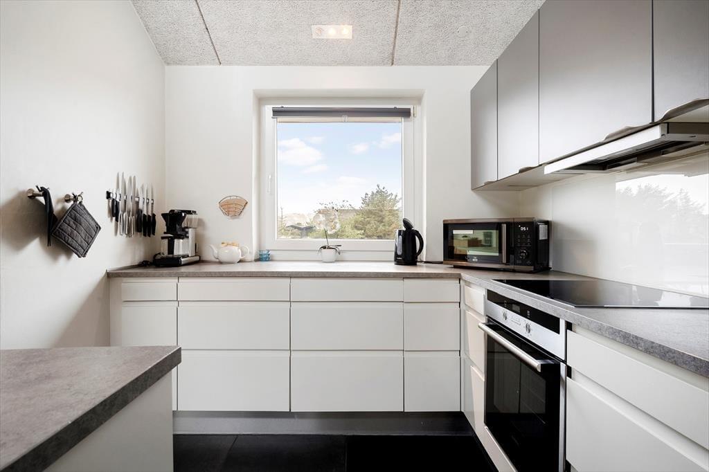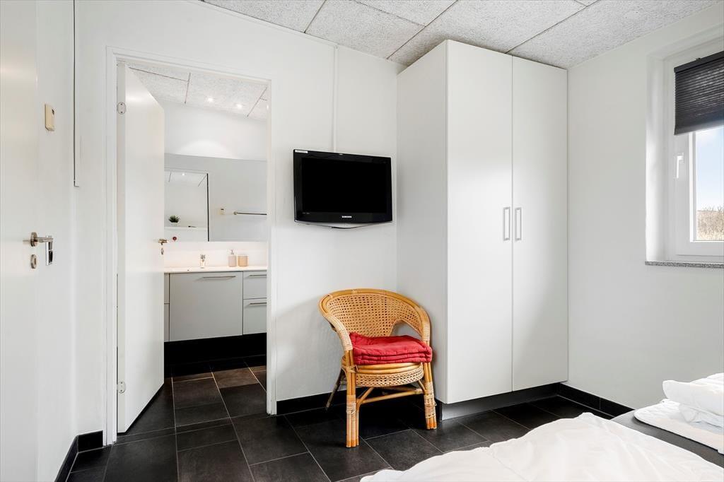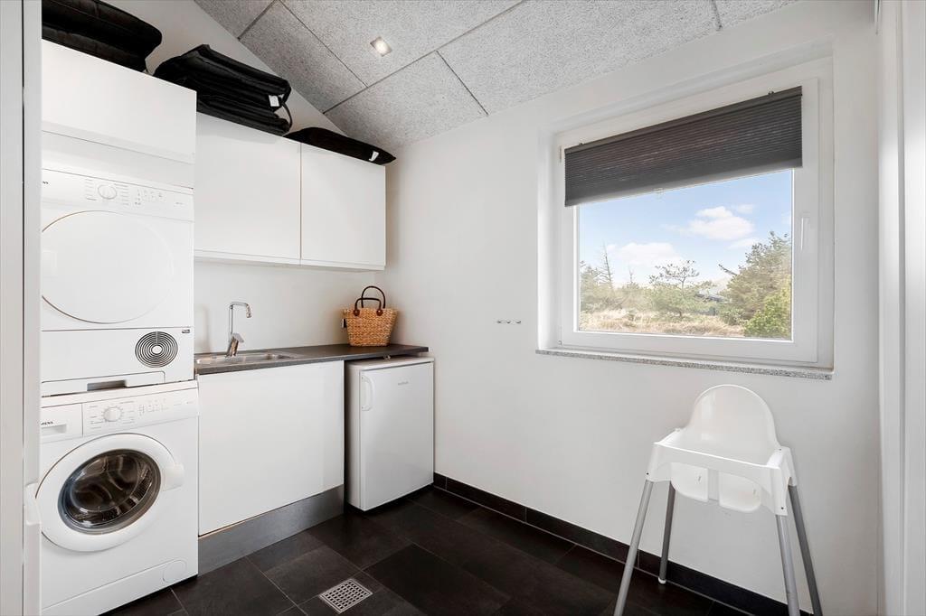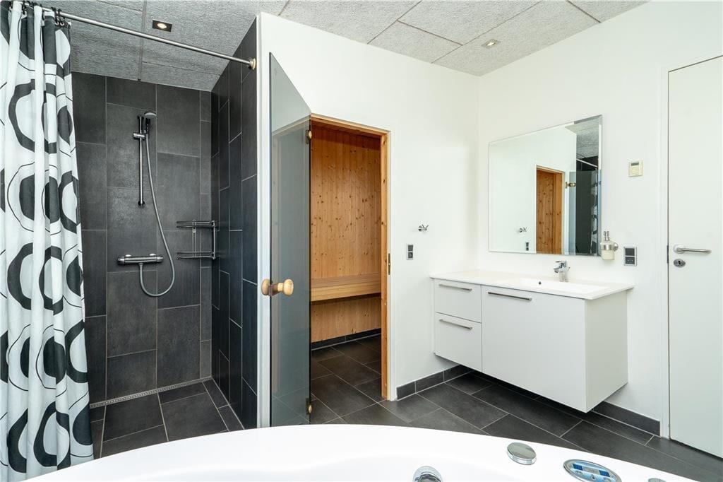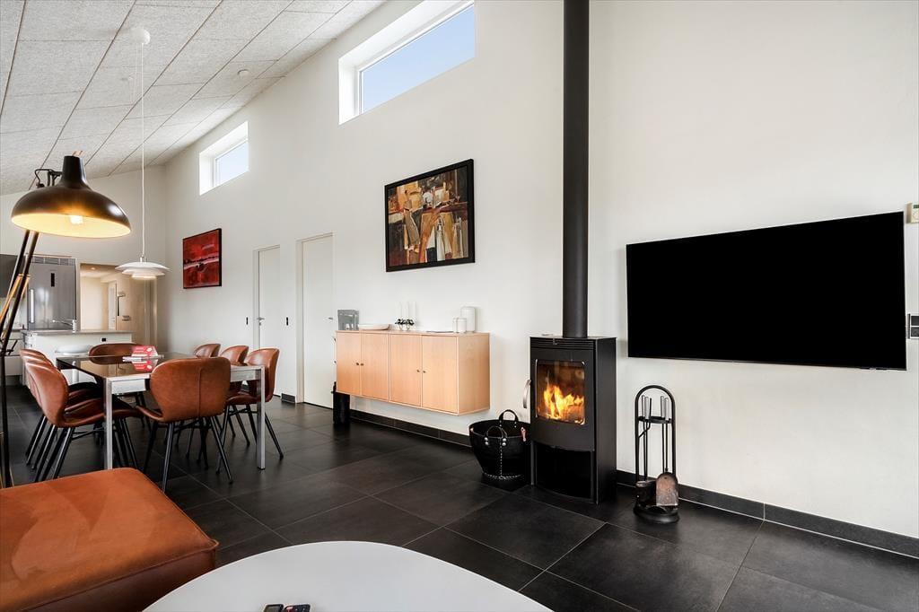Sommerhusets spændende arkitektur viser straks, at der ikke er tale om et almindeligt typehus. På tilsvarende vis kan den gode kvalitet og det høje komfort niveau tydeligt mærkes inden døre. Rummene har en flot loftshøjde og en lys atmosfære, og der er gulvvarme overalt under de mørke klinker. På det største af husets to badeværelser bliver I forkælet med spabad og sauna, og de fire soveværelser er udstyret med gode senge. Tre af soveværelserne har desuden tv med Chromecast, mens det fjerde har trappe op til en hems med madras og spillekonsol – det er en perfekt hyggekrog for de større børn eller teenageren, der trænger til en stund for sig selv. Det store opholdsrum er et skønt sted at samles, når der skal laves mad i det lækre, åbne køkken, eller når I vil hygge jer omkring spisebordet eller i sofaafdelingen nær brændeovnen. Her i opholdsrummet er der også Smart-tv – men måske trænger I ikke til ekstra underholdning, når den smukke naturomgivelser venter lige udenfor vinduet. På det praktiske plan er der vaskefaciliteter i bryggerset, der også byder på en 100 liters fryser, som især lystfiskerne vil værdsætte.