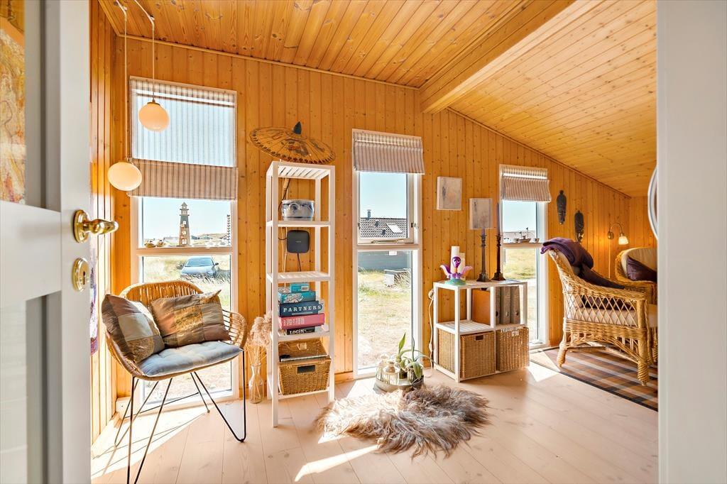 Von Ihrem Grundstück aus gelangen Sie über einen Pfad weiter in die Dünen. Somit spricht nichts gegen einen kleinen Spaziergang durch die herrliche Natur ringsum. Falls Ihnen der Sinn eher nach einem erfrischenden Bad in den Nordseewellen steht, erreichen Sie bereits nach 350 Metern den Aargab Strand - einen der schönen, weißen Sandstrände der Westküste, der mit sauberem Badewasser und viel Platz zum spielen und Spazierengehen überzeugt. Aargab besticht darüber hinaus mit einem Strand am Ringkøbing Fjord, der sich bei Windsurfern und anderen Wassersportlern großer Beliebtheit erfreut. Hier können Sie das Equipment ausleihen und Kurse im Windsurfen und auf dem SUP belegen. Wenige Kilometer nördlich liegt Hvide Sande - ein gemütliches Hafenstädtchen mit zahlreichen guten Lokalitäten, guten Einkaufsmöglichkeiten und einem interessanten Fischereihafen.