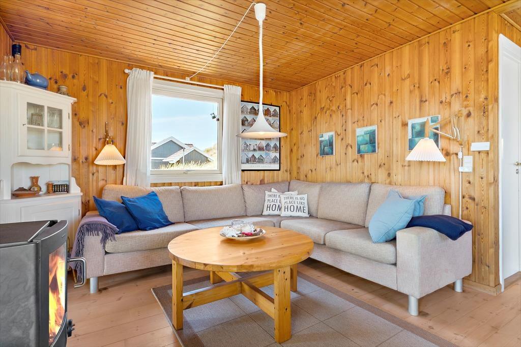Das 71 m² große Haus bietet ausreichend Platz für vier Erwachsene. Es präsentiert sich in klassischer Manier eines echten dänischen Ferienhauses und wird durch rustikale Holzvertäfelungen an den Wänden und Decken geprägt. Der im Wohnraum platzierte Kaminofen trägt ebenfalls zum gemütlichen Ambiente bei. Was kann es schon Schöneres geben, als es sich mit einem guten Buch oder einem spannenden Film auf dem Sofa nah am Kaminofen gemütlich zu machen? Die gut ausgestattete Küche fügt sich offen in den Wohnraum ein. Dieser umfasst auch den Essplatz, der an einem der großen Fenster aufgestellt ist. Wenn Sie hier nicht beisammen sitzen und die Aussicht genießen, halten Sie sich sicher gern im angrenzenden Wohnzimmer auf. Dieses beinhaltet ein 140 x 200 cm großes Schlafsofa (mit einer guten Matratze und einem Matratzentopper), das eine schöne Ergänzung zu den beiden Schlafzimmern darstellt, in denen Sie auf ein Doppelbett und auf ein Etagenbett treffen. Das modernisierte Badezimmer begrüßt Sie mit einer verglasten Duschnische und einer Fußbodenheizung.