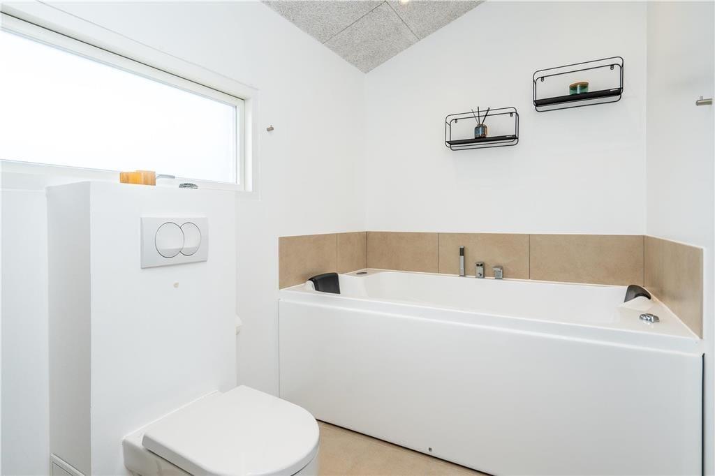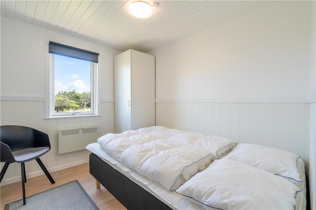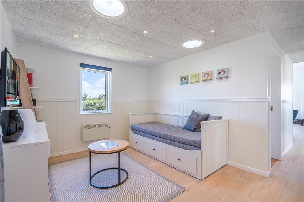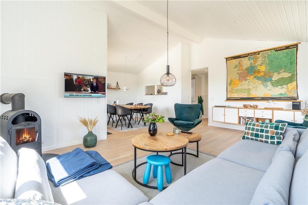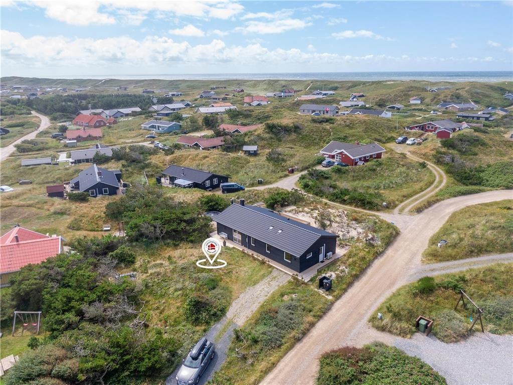 I det flotte landskab mellem Vesterhavet og Ringkøbing Fjord finder I dette store og flot moderniserede sommerhus til seks personer. Her kan I nyde solskinsvejret og fjordudsigten på den østvendte terrasse, og inden døre er stuen såvel som badeværelsets spabad skønne steder at koble af og samle ny energi.