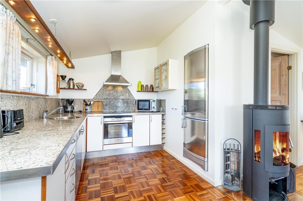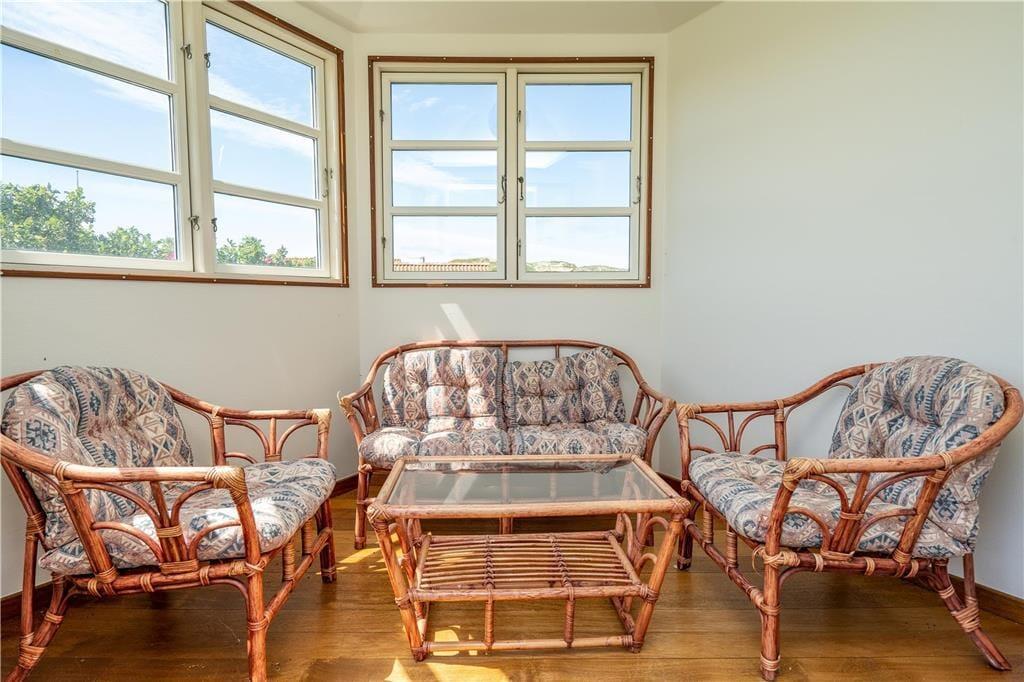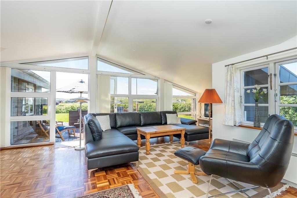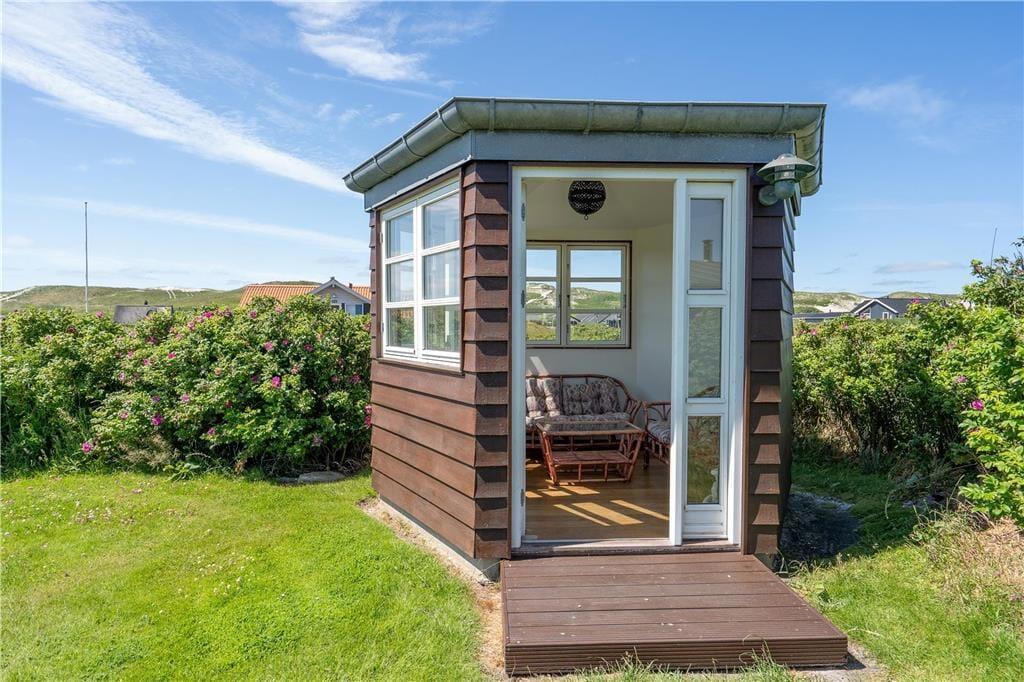 De udendørs rammer er pæne og velordnede som selve huset, og når vejret er sommerligt, er det oplagt at bruge det mest af tiden ude i det fri. Rundt om huset har I flere terrasser og solkroge at vælge imellem, så I kan lige tage bestik af solens placering på himlen, inden I slår jer ned i en havestol. Havens lille lysthus er også et hyggeligt sted at slappe af, og på græsplænen kan I spille havespil og boltre jer i læ af hybenbuskene. Et lille anneks kan aflåses, så her kan I trygt opbevare cykler, fiskegrej eller surf udstyr.