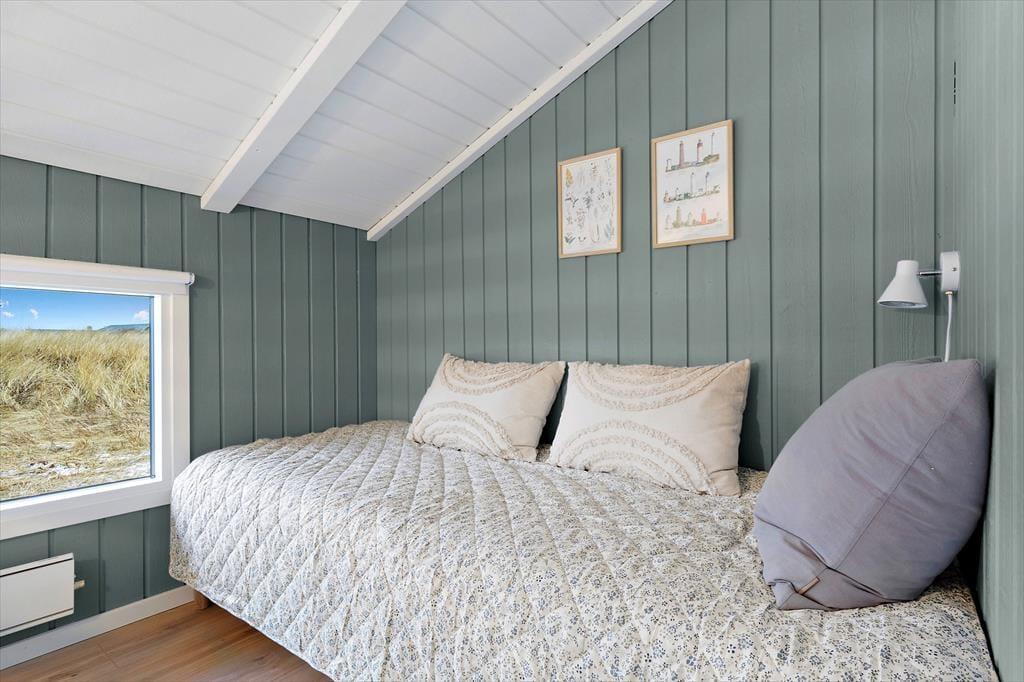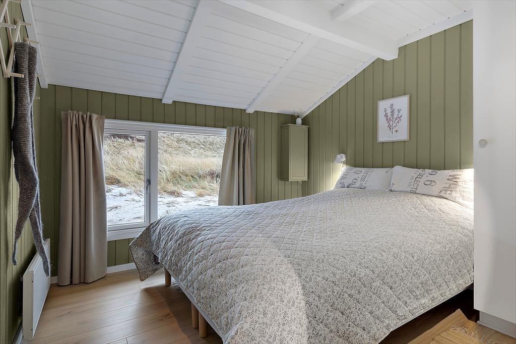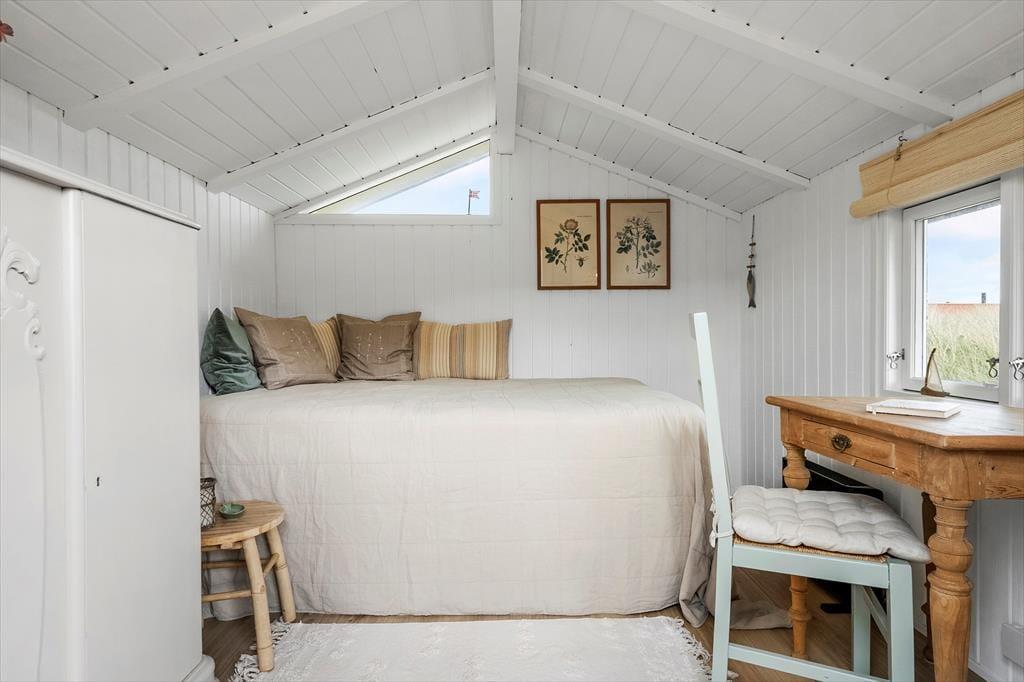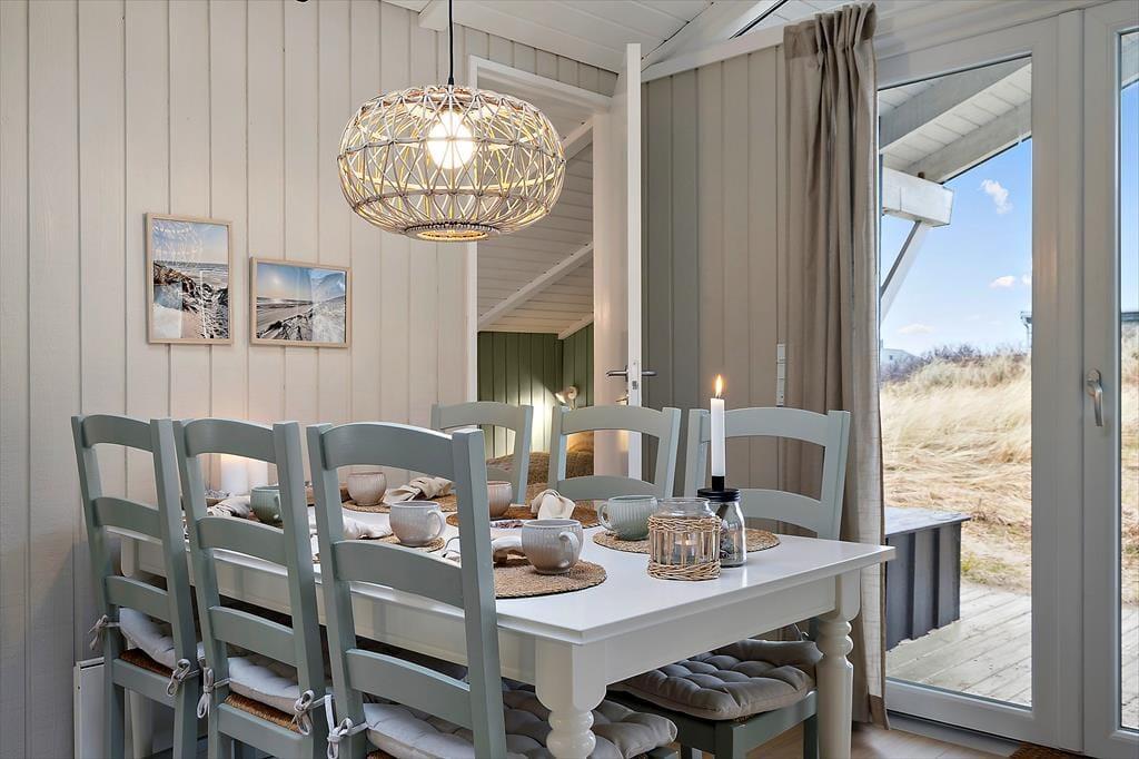 Kun en enkelt klitrække adskiller jer fra Aargab Strand, når I holder ferie i dette hyggelige træsommerhus på Strandkrogvejen 60. Det betyder, at I har særdeles kort afstand til Vesterhavet, hvis I vil bade eller gå tur i vandkanten, og fra huset kan I kigge lige ud på bølgende marehalm og hybenbuske.