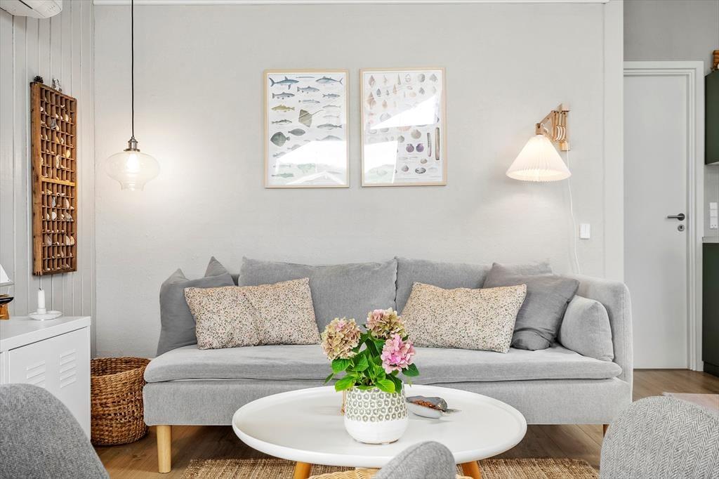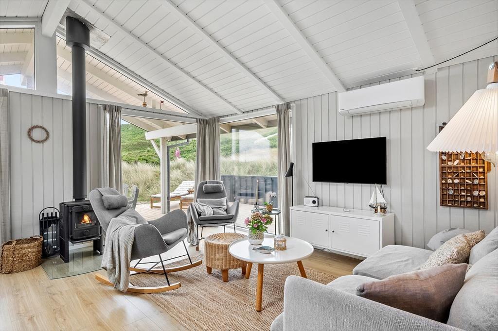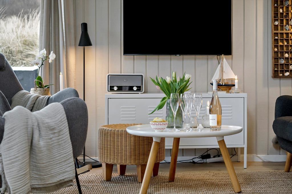 Med sådan en udsøgt beliggenhed er det selvfølgelig oplagt at bruge en stor del af ferien udenfor – men det er nu også skønt at tage en hjemmedag i sofaen nær brændeovnen. Med loft til kip og træbeklædte vægge emmer stuen af klassisk sommerhuscharme, så det er et skønt sted at slappe af. Der er selvfølgelig gratis internet i huset så I kan følge med i alle nyheder eller streame jeres yndlingsfilm på fjernsynet. En spændende bog eller tv er også god underholdning, hvis ikke I bruger tiden på yatzy og sudokuer og ellers vil hemsen hurtigt blive udpeget som børnenes foretrukne legeområde. Huset har i 2024 fået en gennemgående renovering, med bl.a.et nyt tag, nye vinduer, nyt gulv, nye møbler og et nyt køkken, som ligger i åben forbindelse med stuen. Soveværelser er der tre af med i alt fem sengepladser, og i forlængelse af det moderniserede badeværelse, finder I saunaen, hvor I kan nyde livet med lidt ekstra velvære.