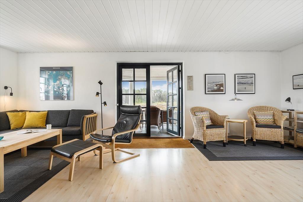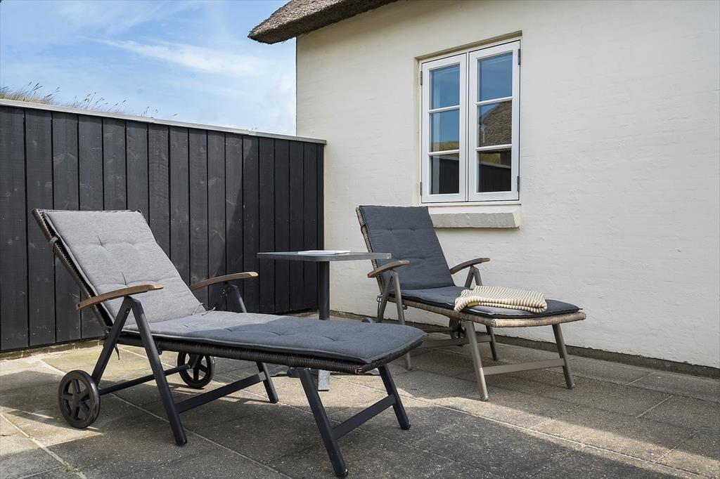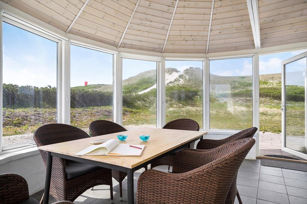 Udestuen er en god mellemstation, når solen skinner, men det alligevel er for køligt at sidde helt ude i det fri. Den er også god på lyse sommeraftener, når I har grillet ude på terrassen og ikke er klar til at rykke helt indenfor. I løbet af dagen er den vestvendte terrasse et herligt opholdssted, for den ligger smukt lige ud til klitterne og er en dejligt ugeneret solkrog.