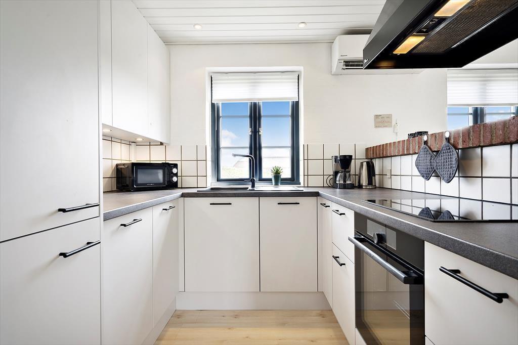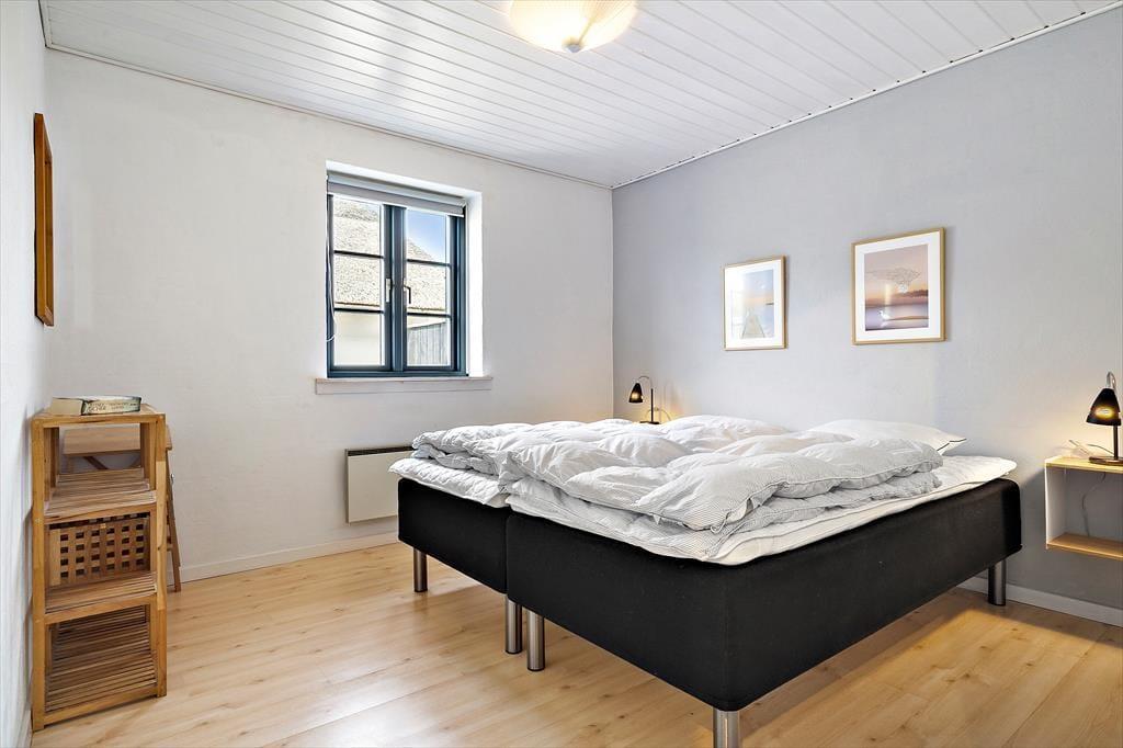 Det stråtækte sommerhus har ligget midt på Holmsland Klit siden 1995, og det er sidst blevet renoveret i 2021 og med nyt køkken i 2023, så det fremstår overalt pænt og velholdt. Inden døre er farvetonerne lyse, og plantegningen er fornuftigt udformet, så I nemt kan være seks personer samlet. Tre gode soveværelser ligger i den ene ende af huset sammen med et pænt badeværelse med gulvvarme, bruser og vaskemaskine. I den anden ende er stuen forenet med et veludstyret køkken, så det er her, I kan hygge jer i løbet af dagen med brætspil, leg og sofahygge – og hvis I ikke har fået nok, kan I fortsætte med præcis samme form for afslapning efter aftensmaden. Der er også tv med parabol i opholdsrummet, og brændeovnen og den energivenlige varmepumpe med køl giver jer mulighed for nemt at regulere temperaturen. Gennem sprossevinduerne kan I se lige ud på marehalm, hybenbuske og den høje klitrække, og udsigten bliver blot endnu mere imponerende, hvis I rykker ud i den tilstødende udestue.