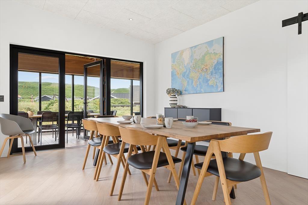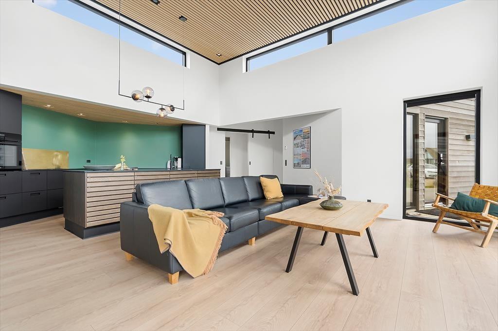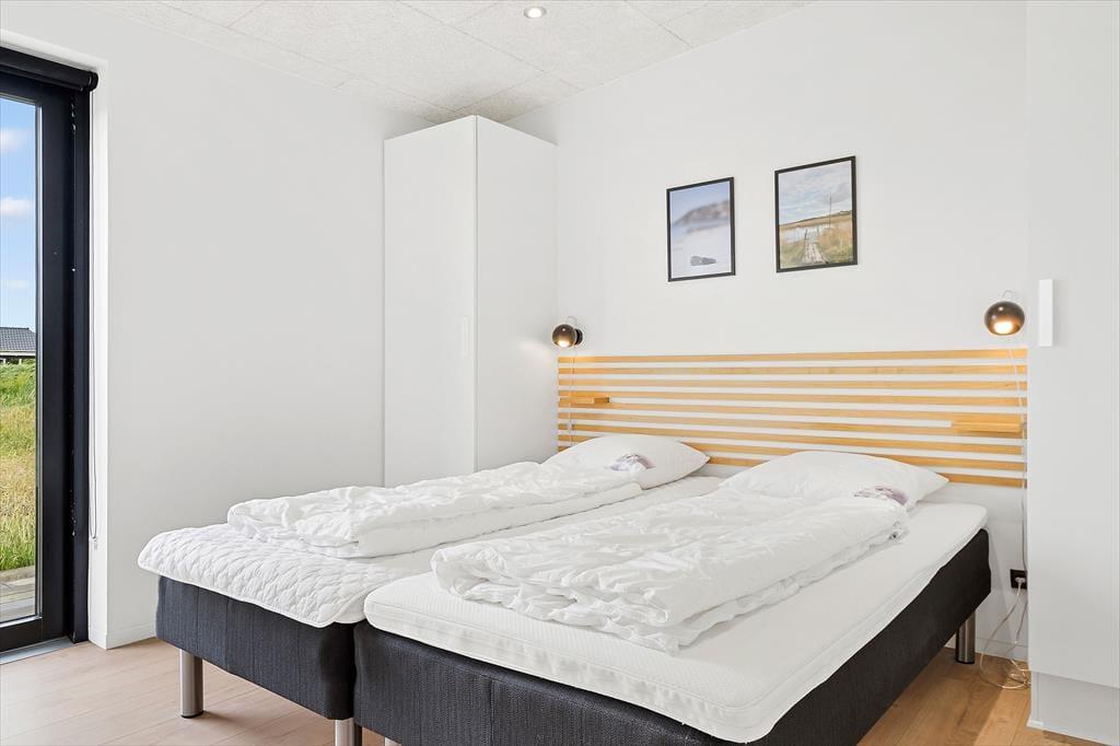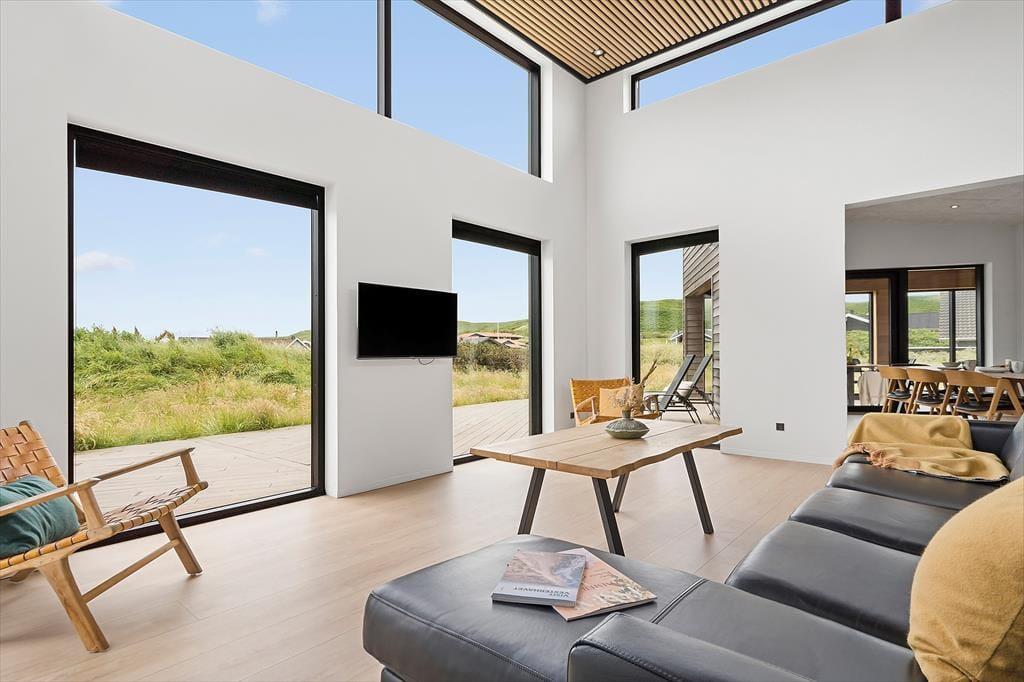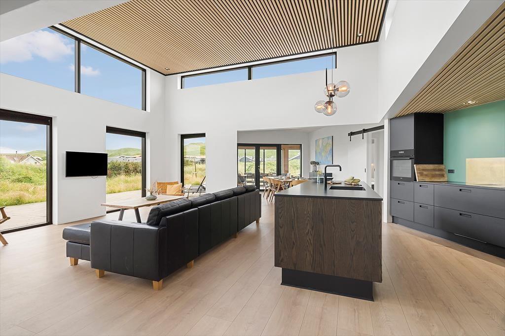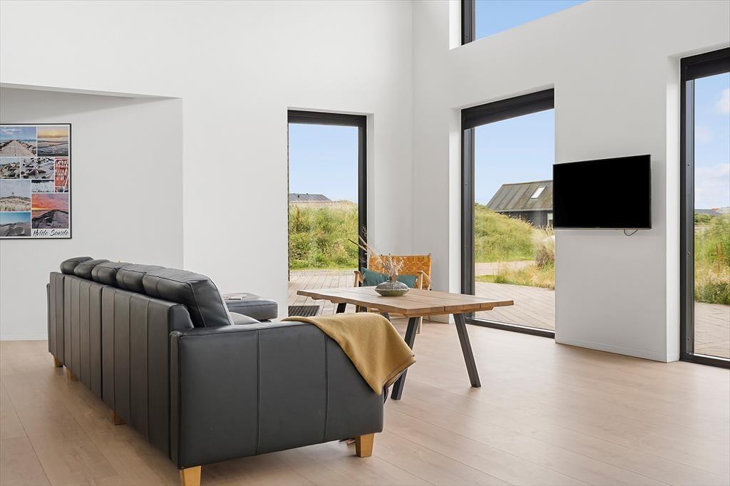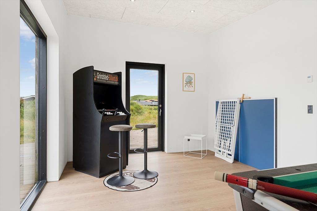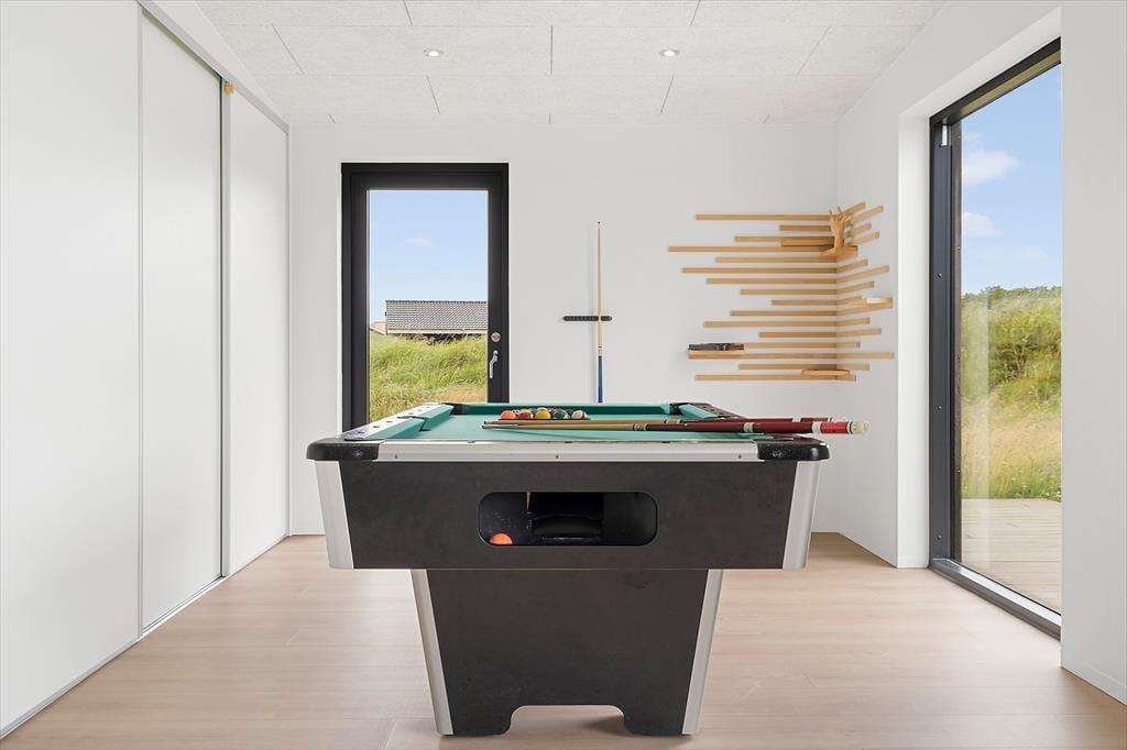 Inden døre i det moderne sommerhus er atmosfæren lys og indretningen stilfuld, og der er masser af plads, så det er muligt at være op til otte personer og to hunde. Hvis du elsker at lave mad, kan du se frem til at trylle lækkerier frem i det flotte, åbne køkken – eventuelt med hjælp fra nogle af de andre, mens resten af selskabet hygger sig omkring spisebordet eller i den komfortable sofaafdeling. Uanset om I er billardhajer eller mindre garvede, er det sjovt at tage et spil eller to i aktivitetsrummet. Måske kan I endda få en turnering i gang, der løber hen over hele ferien? I spabadet på det ene af de to badeværelser er der til gengæld ikke lagt op til konkurrencer, men blot total afslapning.
