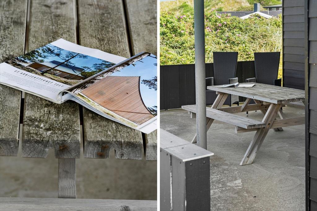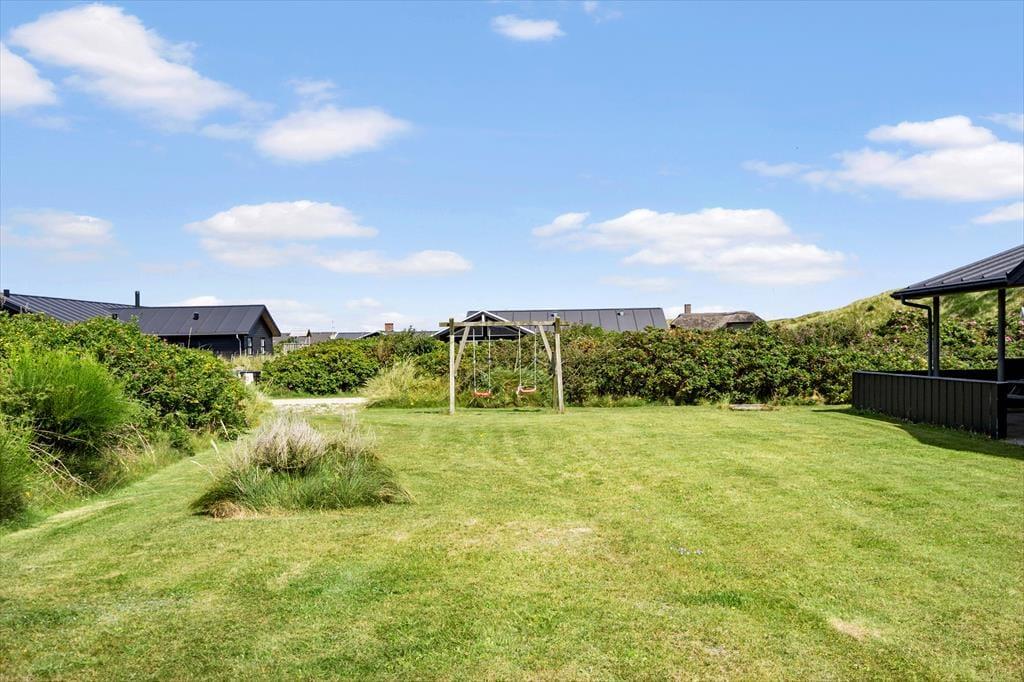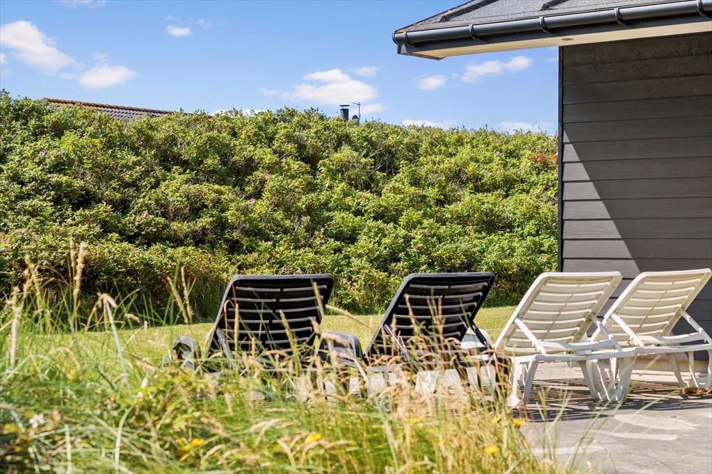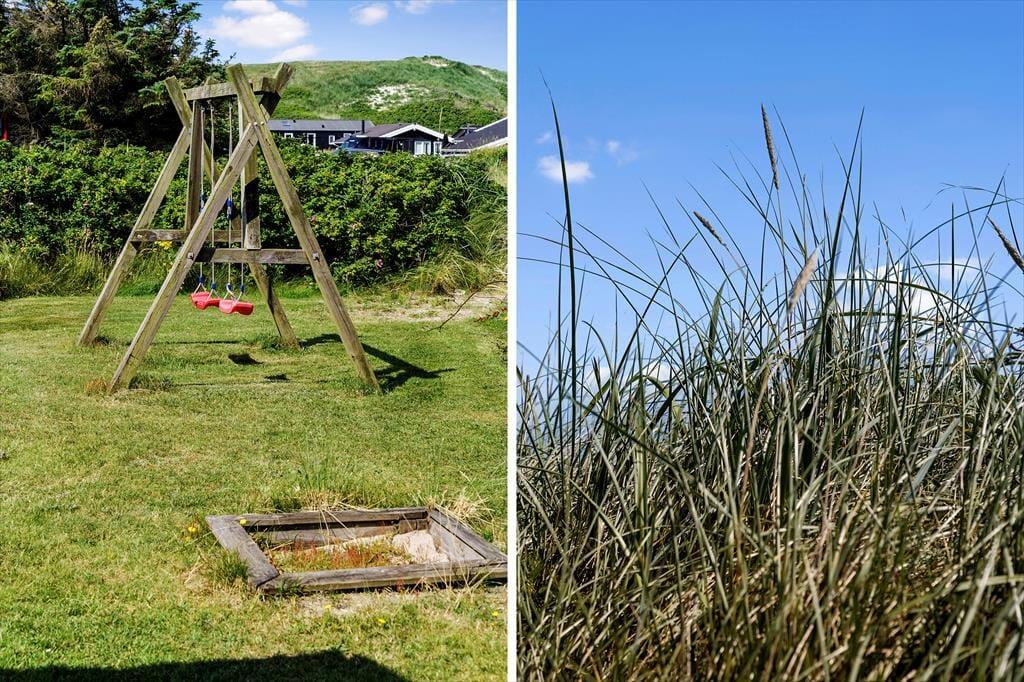 Hvis vejret indbyder til, at det meste af ferien foregår ude i det fri, vil du garanteret blive glad for de gode terrasser og den dejlige græsplæne, der breder sig på grunden. De yngste feriegæster kan hygge sig med at gynge og lege i sandkassen, og hvis I alle vil deltage i de fysiske udfoldelser, kan I spille bold eller havespil i det grønne. Foretrækker du at slappe af i en god havestol, er der både åbne og overdækkede terrasseområder at vælge imellem, så mon ikke du finder den perfekte krog at holde siesta i.